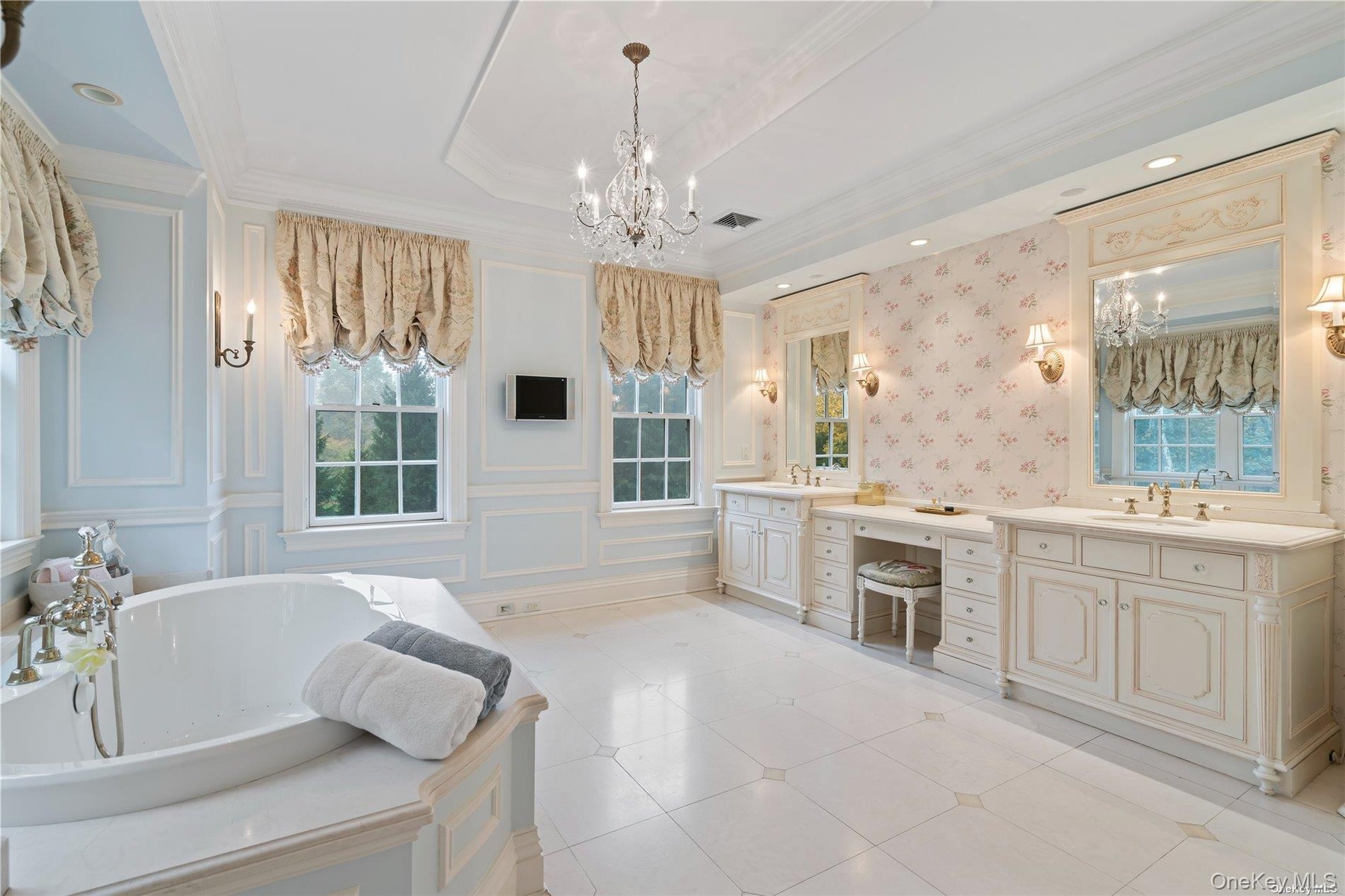 Vita Bella is a 6-bedroom Colonial estate set on 5 richly landscaped acres with luxurious amenities and an expansive floor plan for today's living. Principal rooms are generously sized with exquisitely crafted millwork. It boasts a double height foyer with radiant heat, a rotunda with a curved staircase, a music room, a well-appointed library/office, an elegant formal living room and grand dining room. A comfortable den has a wet bar, and the kitchen has top-of-the-line appliances and limestone flooring with radiant heat. Bedroom suite, mudroom and well-equipped laundry room. Primary suite features a serene sitting room, spacious bedroom and luxurious en suite bath with radiant heat. Enormous multi-purpose bonus room and bright home office. Lower level gym, billiard room, full bar, climate-controlled wine room, sitting room with fireplace and media room with theatre seating. Sonos sound system, pool house, heated saltwater swimming pool, all-weather hard surface tennis, pickleball and basketball courts. Bluestone terraces, tranquil gardens. Generator. HOA/dues. 3-bay attached garage. A Masterpiece Collection Listing., Additional information: Appearance:Mint+++,ExterioFeatures:Tennis,Interior Features:Marble Bath,Separate Hotwater Heater:Yes
