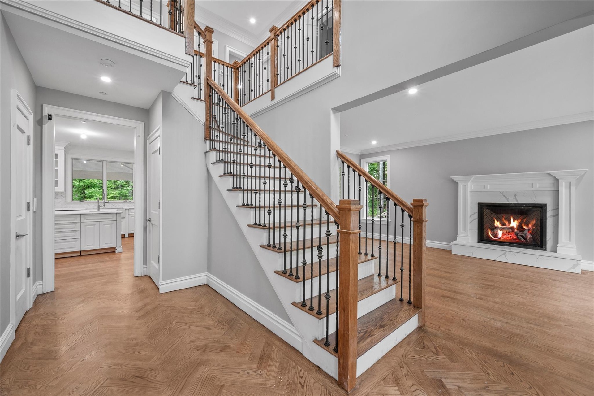 This homes offers many upgrades that can't be appreciated by eye such as 5/8 sheetrock throughout, all the wood flooring on the 2nd floor has sound matts below, sound proofing between floors and walls, radiant tubes have been run for future use in primary bath, entry way and hall bathroom, closed cell insulation was sprayed prior to cavities being filled with open cell. This list of upgrades is endless from the leaded coated copper valleys and heavier architectural shingles on the roof, to UV lights and humidifiers on the HVAC equipment. If more space is required an additional 900+ sf can be finished in the walkout basement that has been roughed-in for a full bathroom and inspected by the town. The home has also been roughed-in with a sprinkler system and inspected by the town so the finished storage on the 3rd floor can be easily converted to finished space. These are just a few of the many upgrades. Some of these photos have been digitally enhanced and staged.
