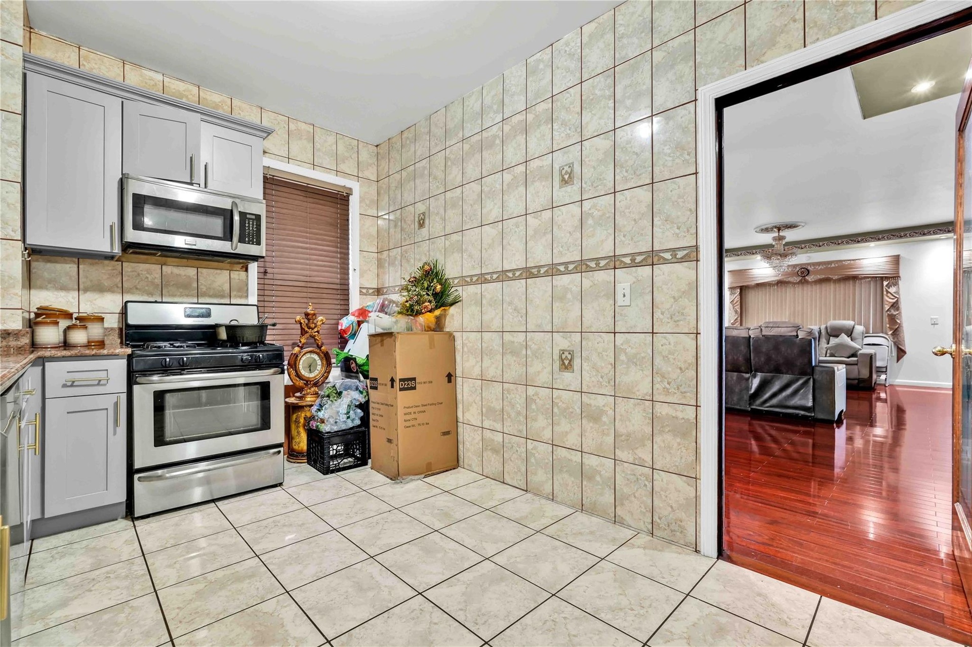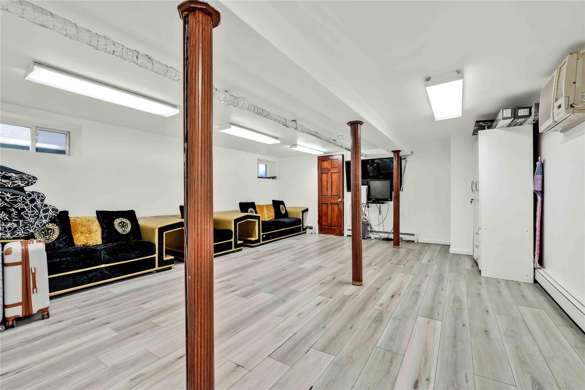 Welcome to this beautifully updated detached brick and stucco two-family home, currently used as a spacious one-family residence! On the first floor, you'll find a bright living room, a formal dining room, and a stylish eat-in kitchen renovated in 2025 with sleek granite countertops—plus a handy half bathroom. The second floor includes three comfortable bedrooms and a full bath, while the top level adds two more bedrooms—perfect for a growing family or home office needs. The home has been fully renovated and sits on a 30x90 lot (2,700 sq ft) with a 20x38 footprint (2,090 sq ft). You'll love the brand-new wood floors, modern kitchen, and updated bathrooms. Comfort is guaranteed with seven ductless AC units, a gas boiler, and a two-year-old separate hot water heater. There's plenty of room for parking with a private driveway and garage, plus a lovely backyard for outdoor relaxation. Bonus: the house has two gas and two electric meters—ideal for future flexibility.