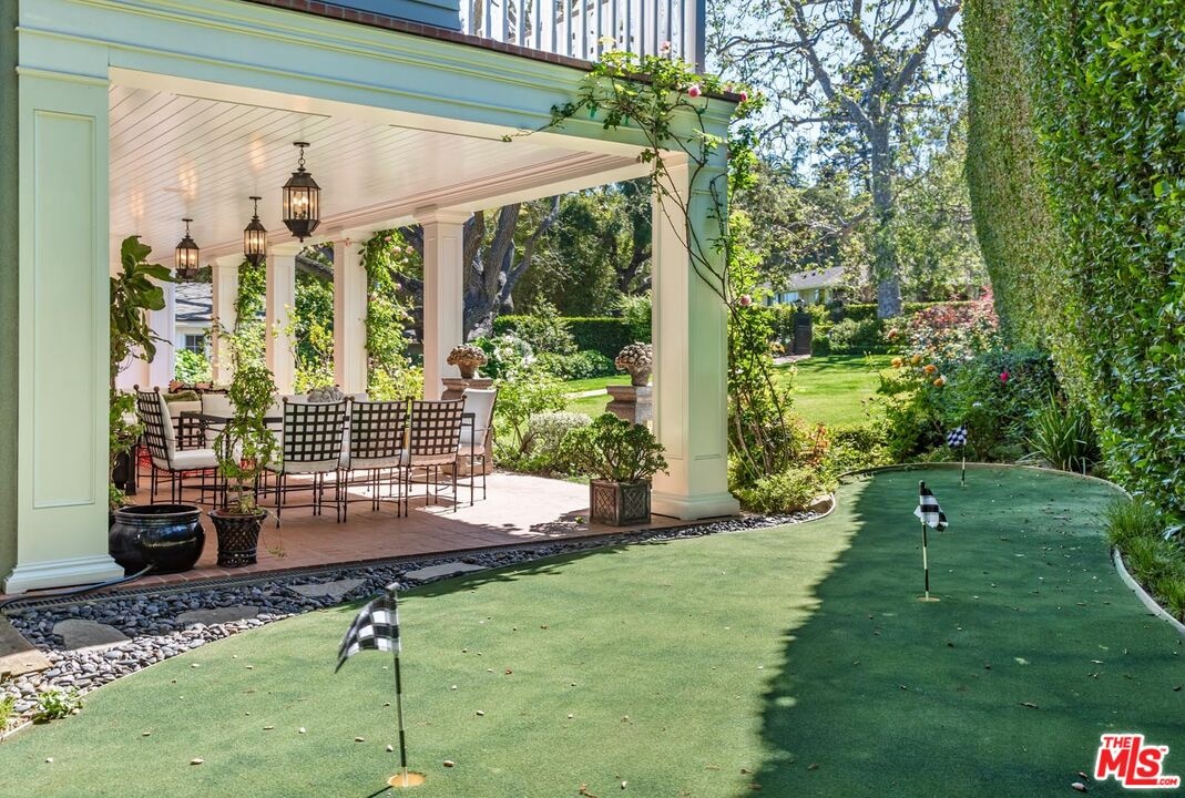 Step beyond the private gates into a world where cinematic legacy meets refined contemporary luxury. Originally constructed in the late 1930s, this Georgian-inspired estate has been extensively and thoughtfully renovated, seamlessly marrying its historic roots with elevated modern refinement. Once home to silver-screen icons Audrey Hepburn and Deborah Kerr, the residence rests on an exceptionally rare ~31,163 sq ft (~0.72-acre) lot in the heart of Brentwood, serene and secluded yet just moments from the city's vibrant pulse. Gracious symmetry, soaring ceilings, and impeccable architectural details anchor a luxurious yet welcoming space. A covered lanai featuring a fireplace and built-in heaters invites guests to explore rose-bordered pathways that balance formal elegance with tranquil ease. Enjoy effortless indoor-outdoor flow throughout the living room, while the wood-paneled conservatory, with its custom millwork, offers the perfect space for conversation or quiet retreat. The formal dining room, embellished with hand-painted Gracie wallpaper, exudes timeless sophistication, ideal for elegant gatherings or intimate celebrations. The sun-kissed chef's kitchen overlooks the pool and is appointed with premium stainless-steel appliances, a walk-in pantry, and adjoining guest or staff quarters. A refined library and flexible living spaces make the main level both functional and graceful. This home offers five bedrooms and six and a half bathrooms, designed with both privacy and luxury in mind. The upstairs primary suite is an ideal escape, complete with dual spa-like bathrooms, walk-in dressing rooms, and a private balcony with sweeping garden views. Two additional en-suite bedrooms upstairs, one with a fireplace and the other framed by verdant panoramas, offer serene overnight sanctuaries. A fourth en-suite bedroom is located on the main level, while a fifth bedroom, ideal for guests, staff, or a gym, is privately tucked away on the lower level. Outdoors, enjoy resort-style amenities including a heated pool, private putting green, expansive lawns, and a tree-lined hillside with winding garden trails, a rare and enchanting natural feature in Brentwood. Mature landscaping and thoughtful design make every corner of this estate feel secluded and serene. Located just steps from Kenter Canyon Elementary, one of L.A.'s highest-ranked public charter schools, this estate also offers access to a top-tier academic community. Historic charm meets modern reliability with a multi-zone HVAC system, whole-home gas generator, hot water recirculation, and an oversized two-car garage. Offered for the first time in over 30 years, this is more than a home; it is a narrative of elegance, history, and timeless allure.