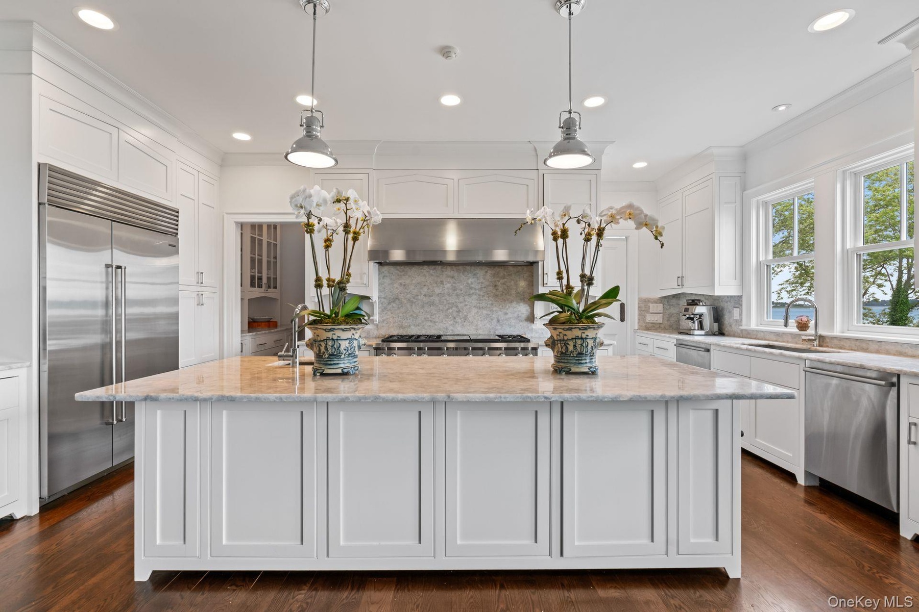 - Kitchen with walls of windows enjoying the everchanging water activity.