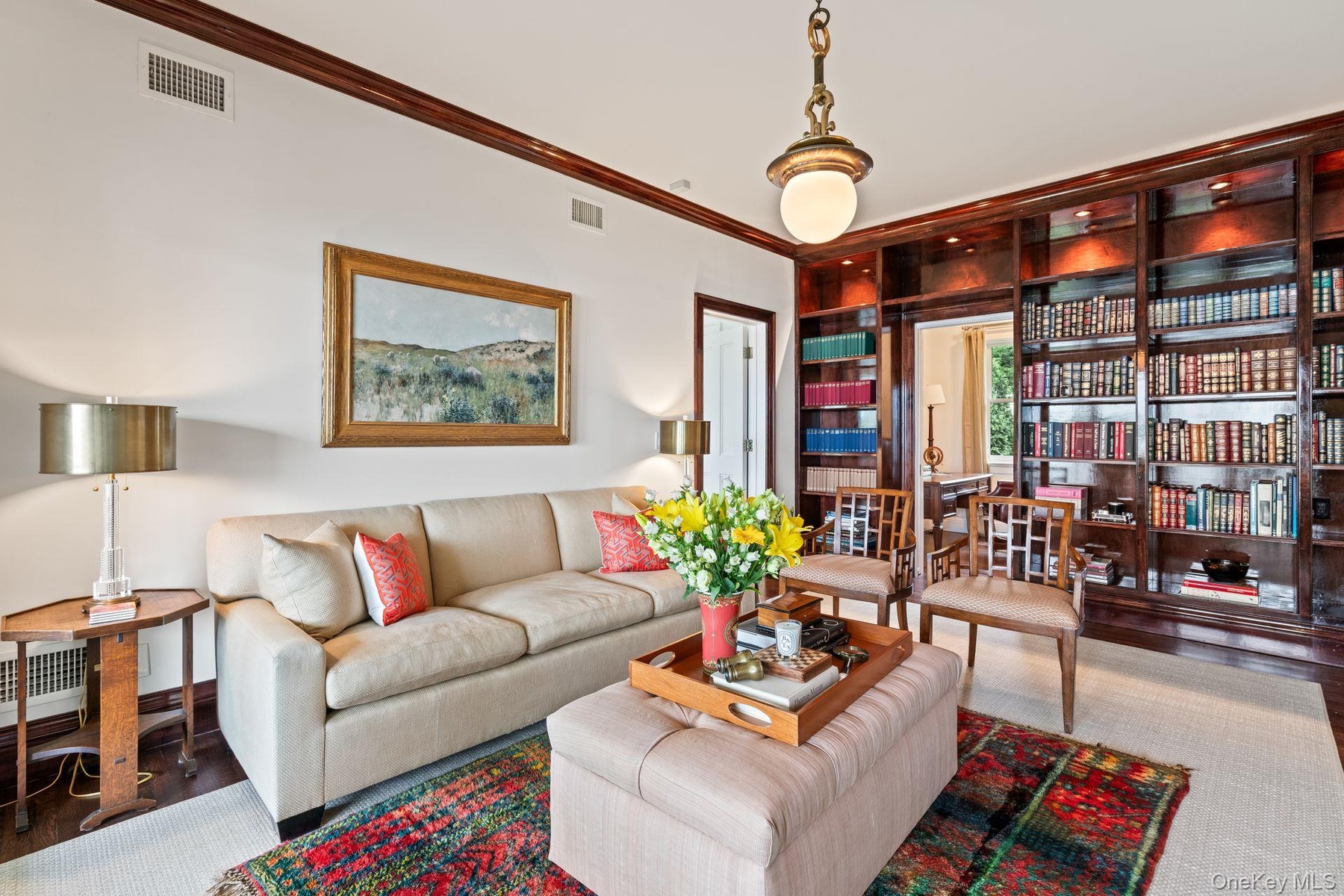 - Living Room with views of the Harbor and pocket Mahogany doors to the Dining Room.