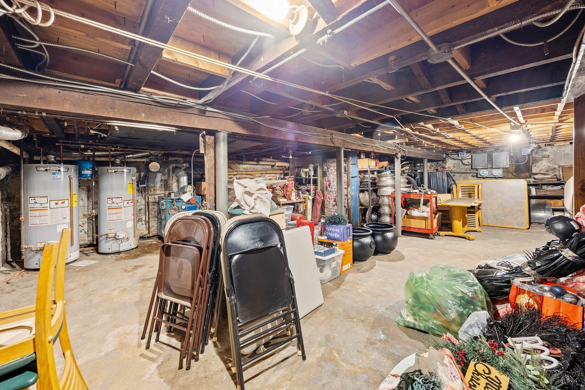 - Unfinished basement featuring gas water heater