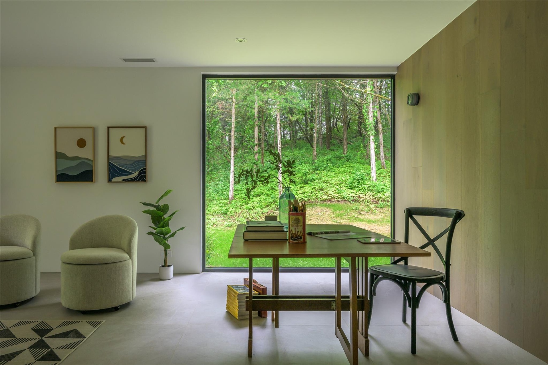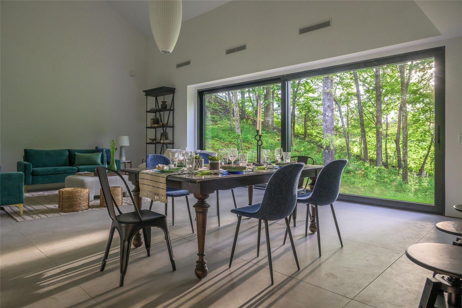 - Dining room with a wall of windows