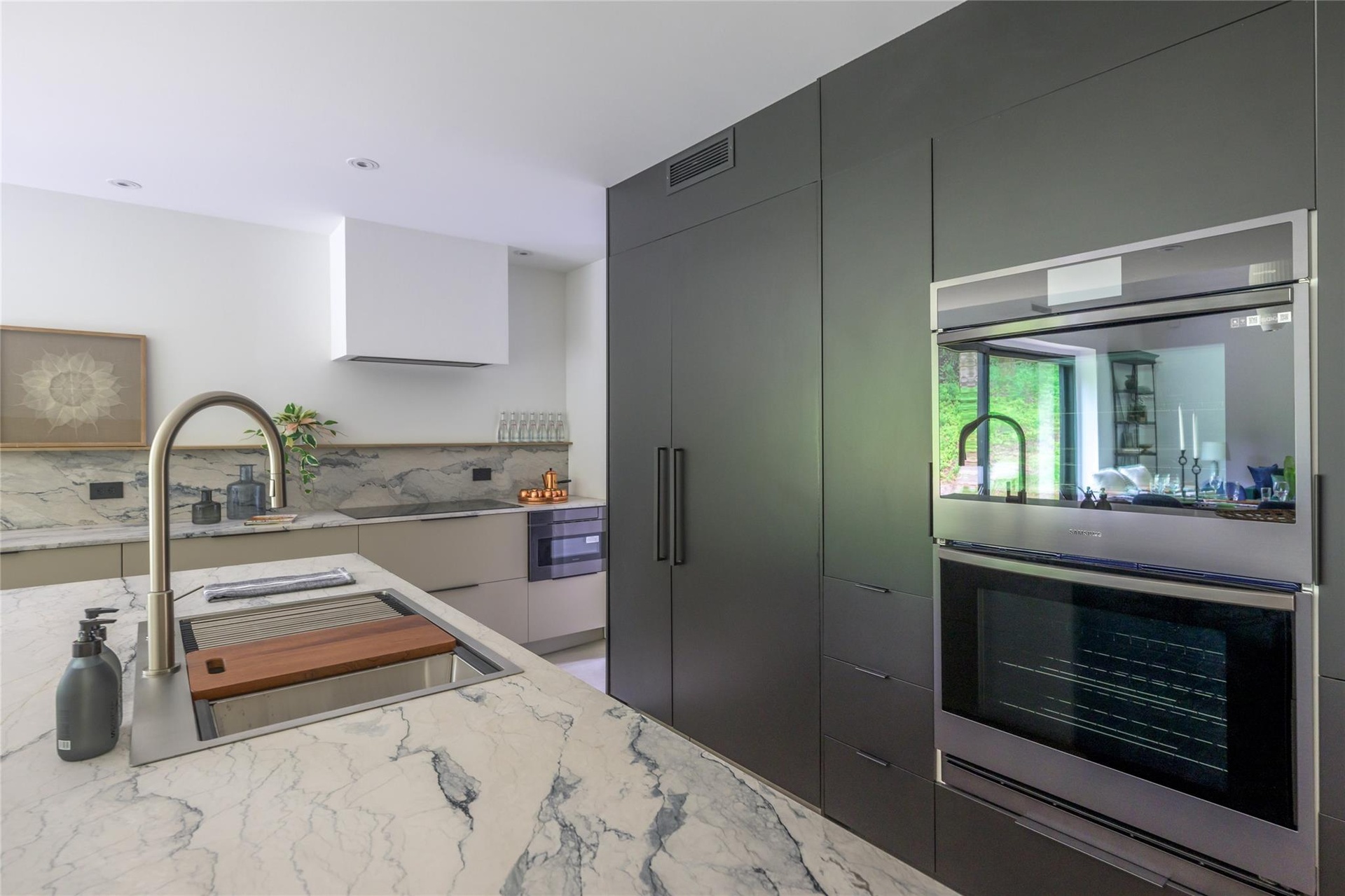 Culinary enthusiasts will revel in the large open kitchen, anchored by premium brand appliances and complemented by a discreet butler's pantry.