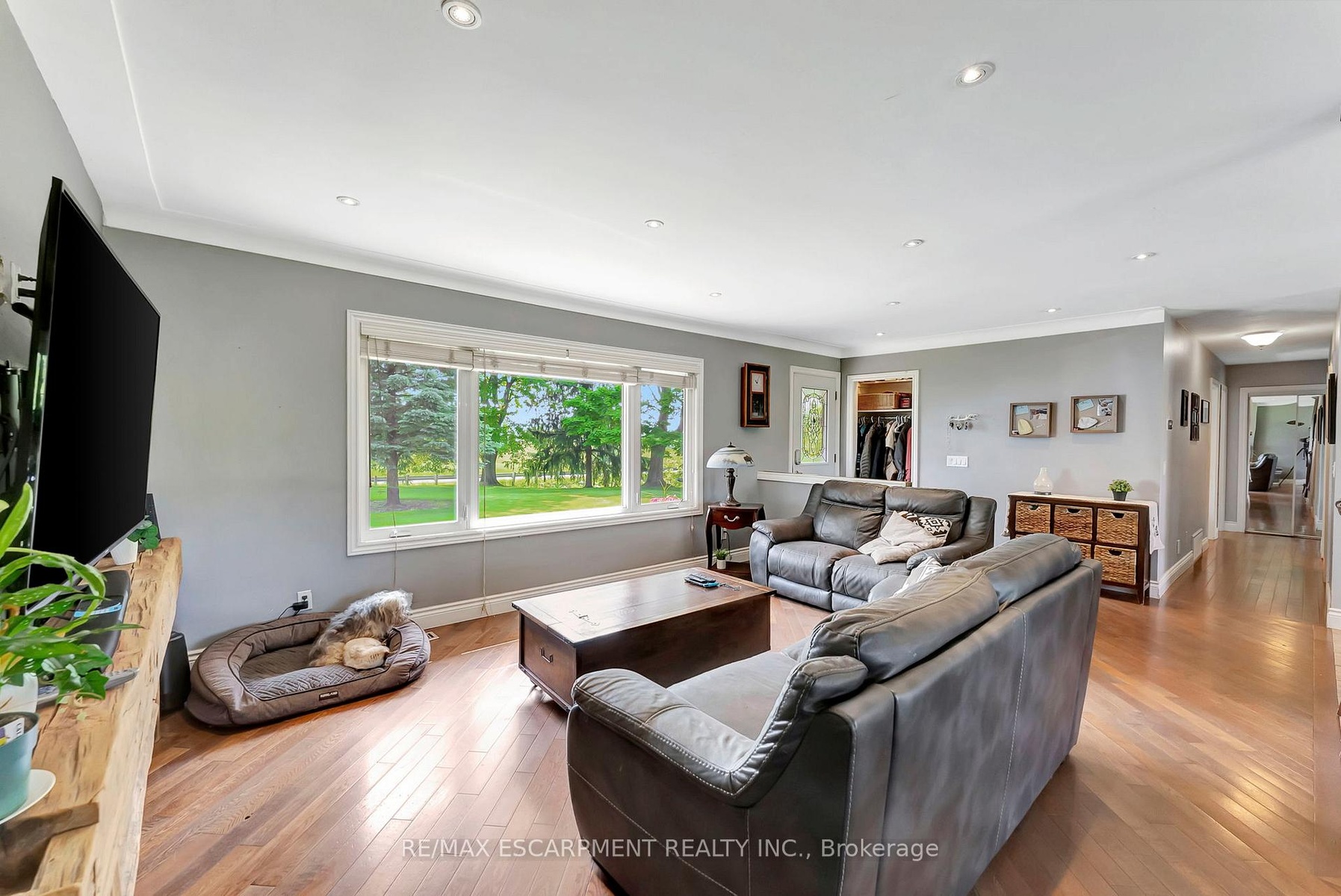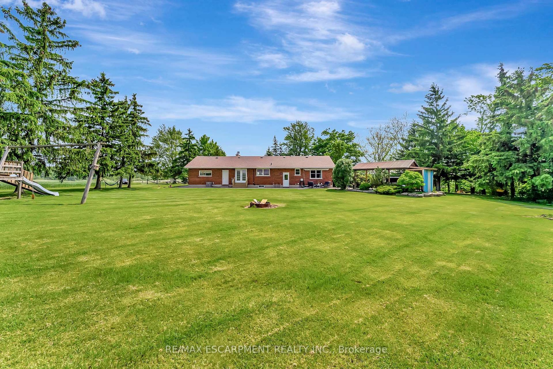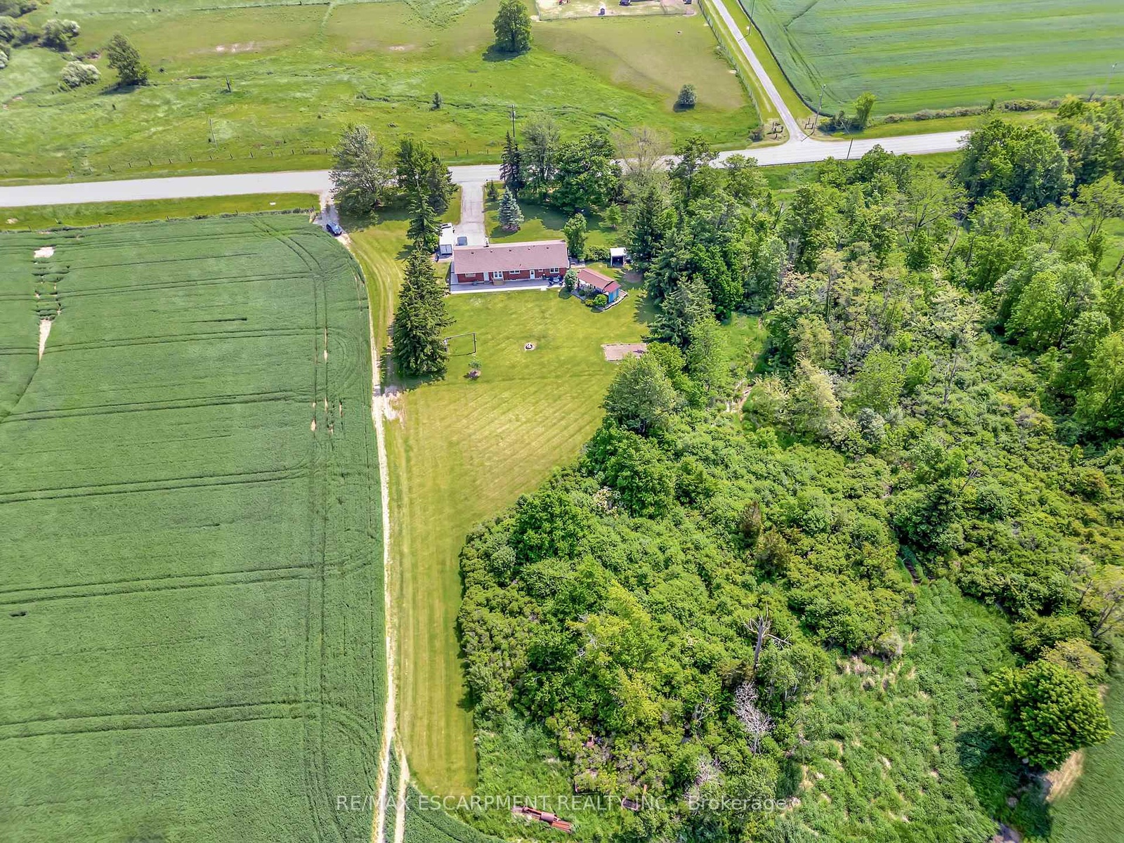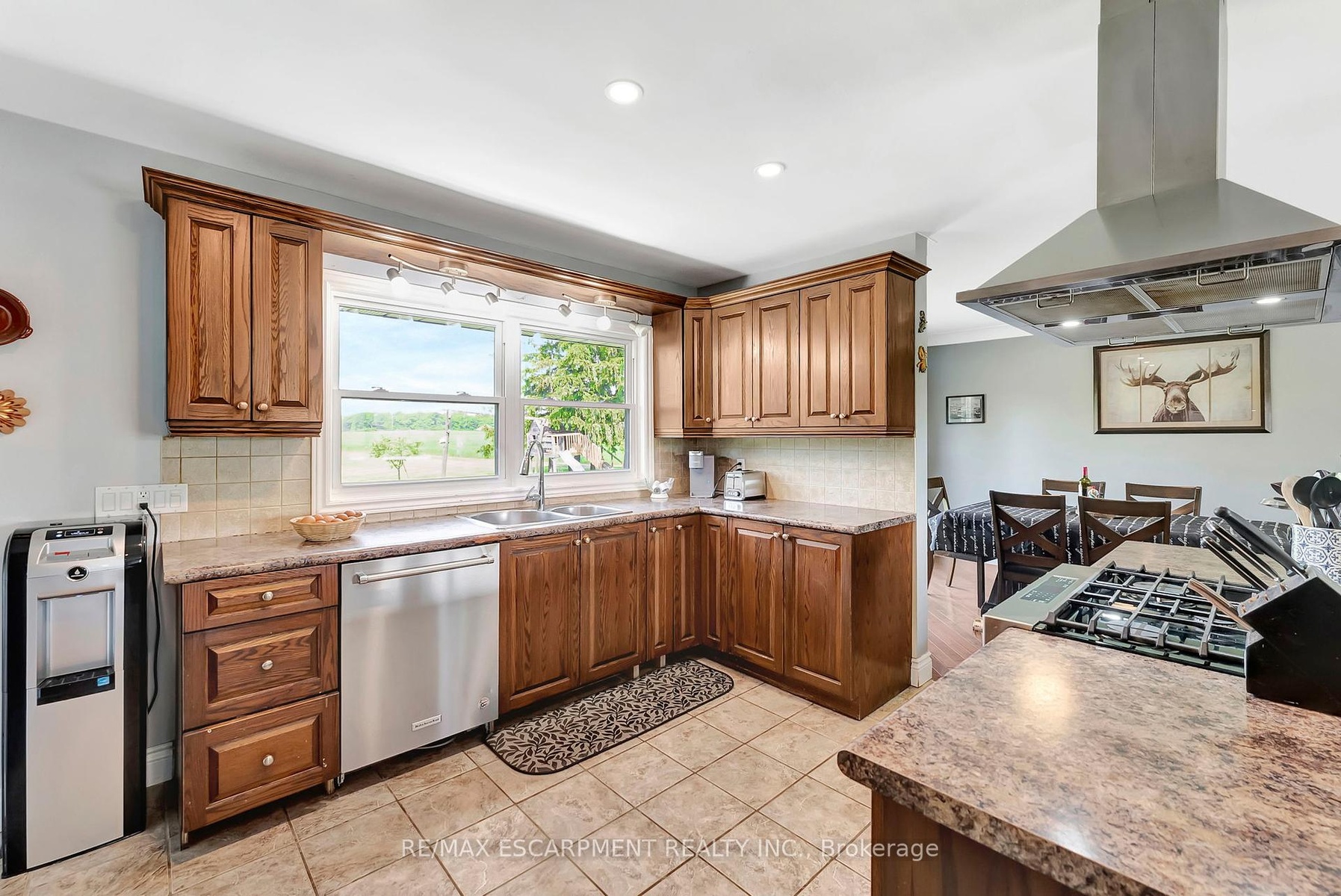 Stunning all-brick bungalow nestled on a high elevation lot with beautiful views. Set on a 150 x 200 ft property, its surrounded by farm fields to the west and a mature forest with ravine to the south, offering peace and privacy. Inside, the open-concept kitchen features oak cabinetry, a custom island with built-in cooktop, stainless steel hood vent, built-in oven, recessed lighting, and a garden door walkout to the backyard. The main floor offers hardwood floors throughout, a bright living room with picture window, dining area, and 3 spacious bedrooms with ample closets. The primary suite includes a private 1.5 bath, plus a 4pc main bath down the hall. The full basement features a cold room perfect for a wine cellar and a large space ready for a family room, games area, office, or home gym. Extras include a wood stove, roof (2023), central vacuum, double garage, large cistern, working septic, natural gas furnace, and central air. A rare opportunity to enjoy peaceful country living with modern comfort, just 30 minutes from Hamilton and 10 minutes to Cayuga.