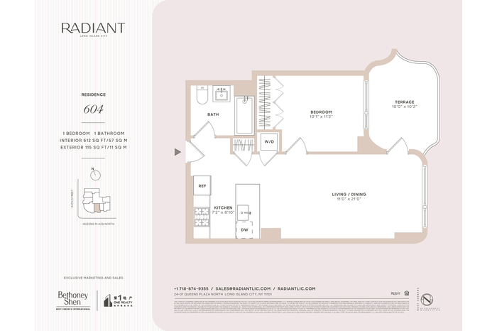 Situated in an emerging residential enclave in Long Island City, Radiant is moments from numerous restaurants, bars, cafes, and shops. MoMA PS1, Brooklyn Boulders, Queensbridge Park, Target, and Murray Playground are all a few blocks away. Accessible subway lines include the 7/E/R/N/W/M/F. Pets are allowed.
