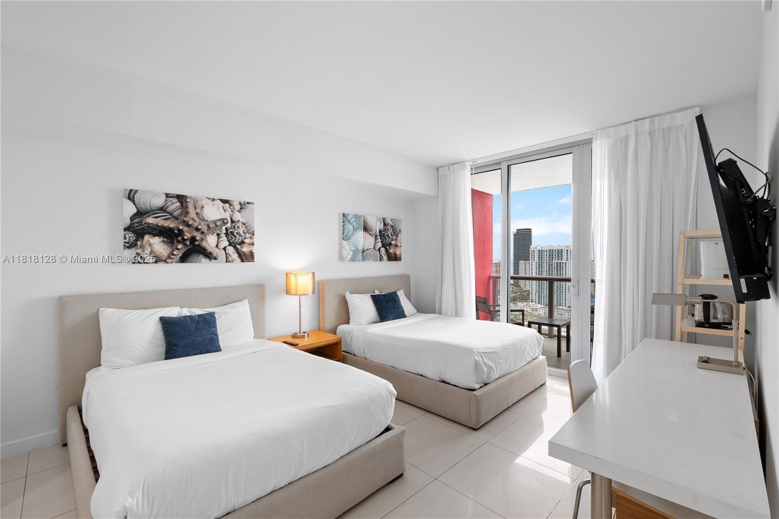 LINE 05 BEST VIEWS!!! PRICED TO SELL!! Upgraded turnkey 2-bed unit at Beachwalk Resort with spectacular south-facing views of the Intracoastal, ocean, and Sunny Isles skyline. Fully furnished, tile floors throughout, renovated master bathroom, and tiled balcony. Features 2 separate entrances: Side A (1/1 with kitchen and balcony) and Side B (studio with balcony), ideal for short-term rentals—no restrictions. Rent together or separately via Airbnb, VRBO, or Booking. Resort amenities include rooftop for owners, garage parking, beach shuttle, pool, gym, and waterfront restaurant.