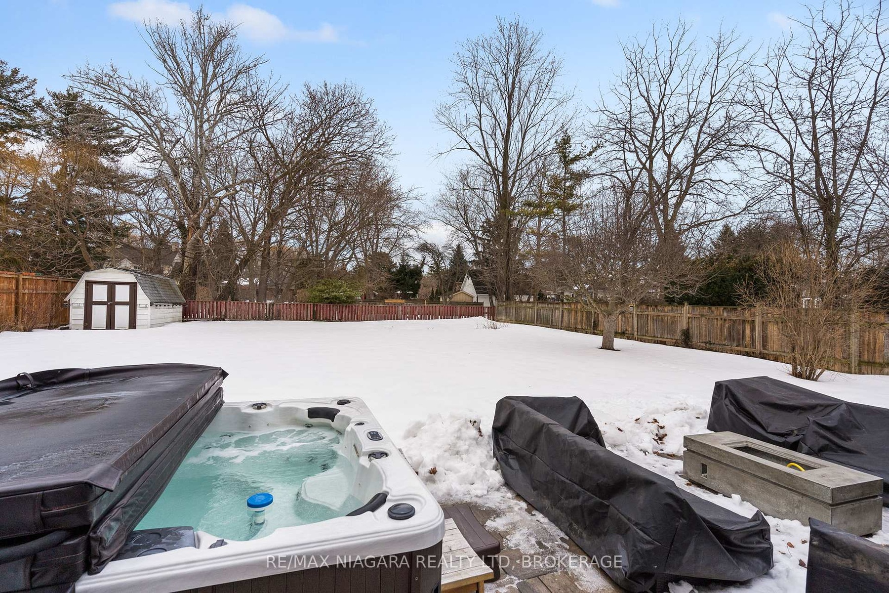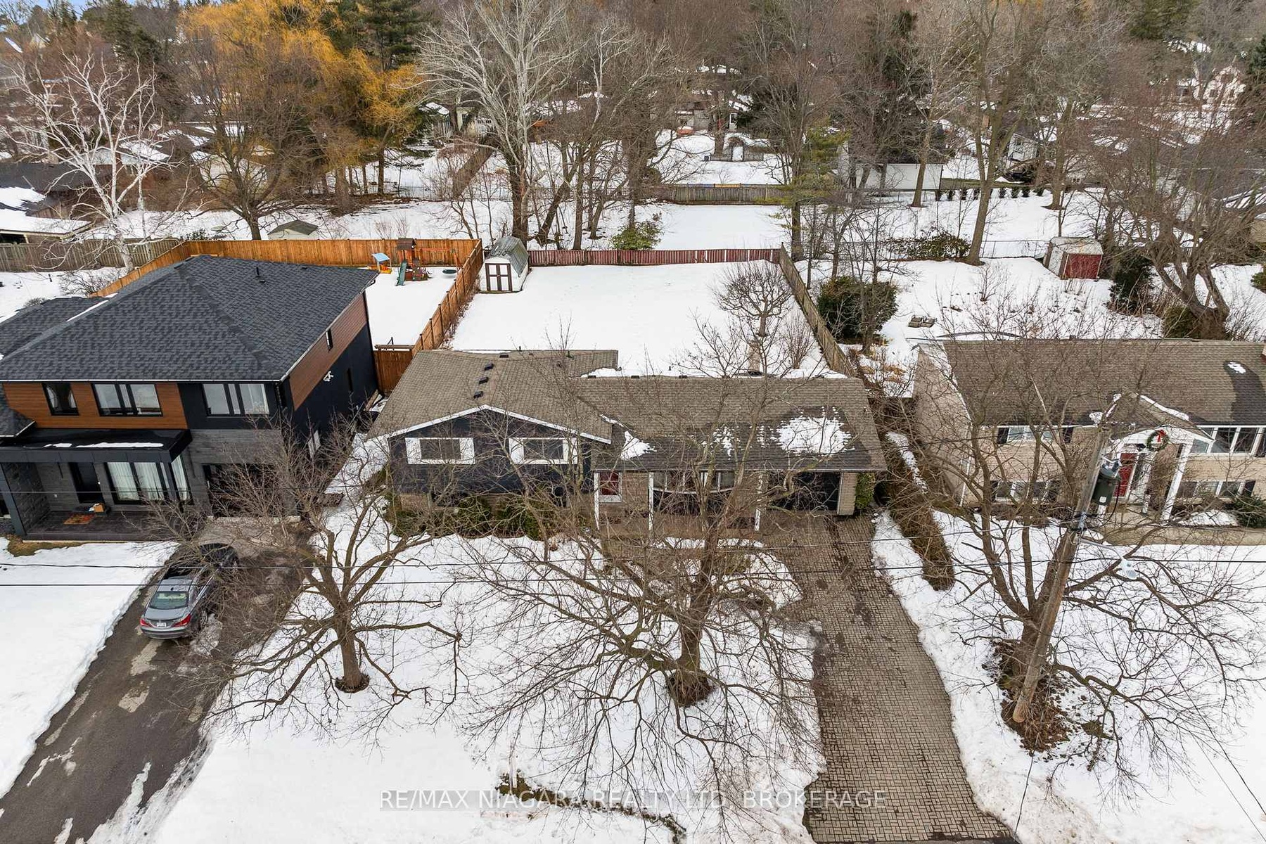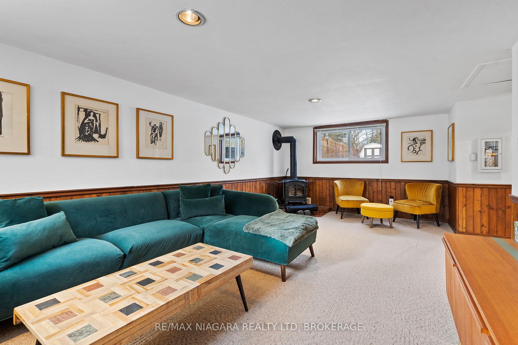 Step into The Cellar House, a beautiful mid-century modern residence in the heart of Old Town Niagara-on-the-Lake that blends classic character with comfortable living. Situated on a generous 70' x 140' lot that is walking distance to town, this property offers a rare opportunity for investors, developers, or end users. This four-bedroom, two-bathroom home with a garage sits on a well-kept lot, offering potential for future expansion under the Town's heritage bylaws. As well, a short-term rental permit - no longer being issued by the Town - with transferable assets & equity for savvy investors looking to cover costs. Inside, every floor of this side-split is fully-finished, maximizing living and entertainment space. Original wood floors run throughout the main floor of the home, while a gas fireplace adds warmth and character to the downstairs living area, and a speakeasy-themed room adds an inviting retreat on the lowest level. Outside, enjoy a private yard with a 7-person hot tub and extensive stone patio for outdoor seating or dining, alongside a spacious, standalone shed for storage. This multi-generational home offers exceptional flexibility and income potential, ideal for full-time living, a weekend retreat, or a rental opportunity. This is a rare opportunity to own a piece of Niagara-on-the-Lake's history, with timeless character and modern convenience just steps from the shops, dining, and charm of Old Town.