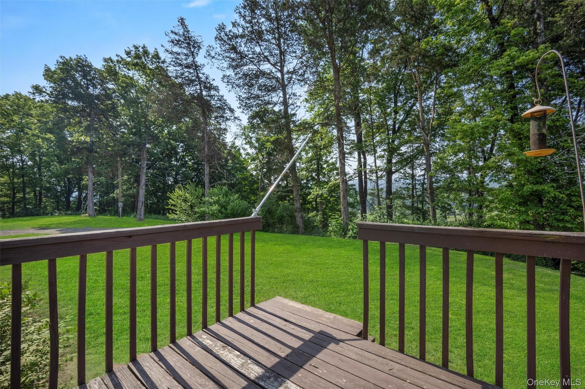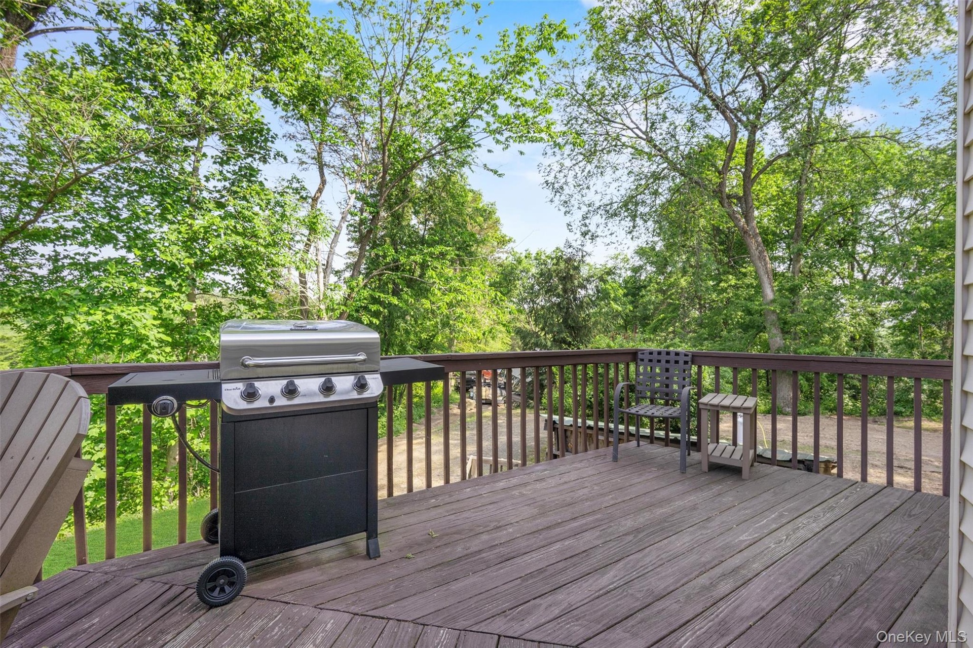 The spacious kitchen and dining area overlook the lush yard, creating many options for outdoor enhancements. Step outside onto the deck -- ideal for al fresco dining or simply enjoying the peace and privacy of the surrounding woods.