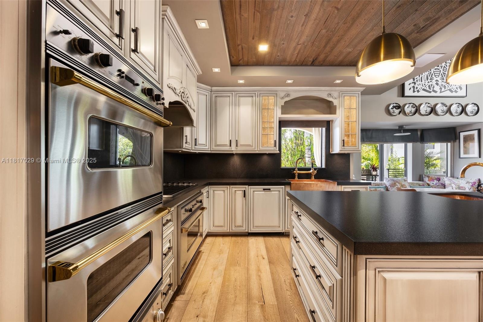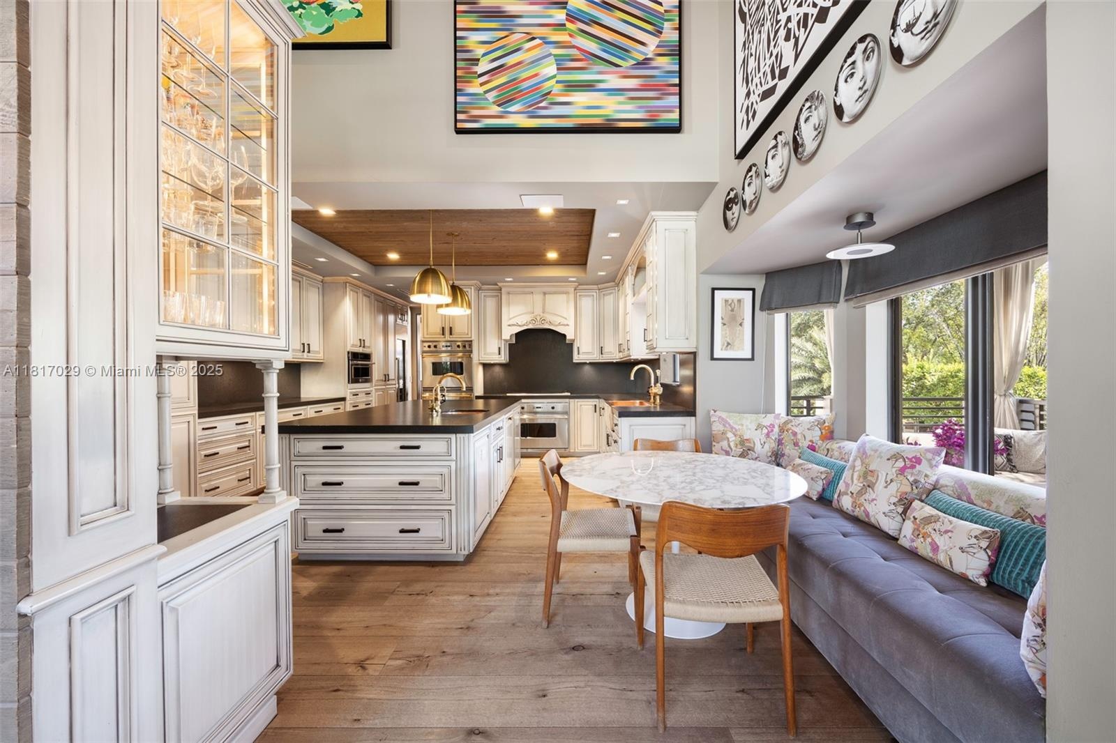Refined elegance in exclusive guard-gated Cocoplum. Located on a quiet cul-de-sac. Fully Remodeled 6-bed, 4.5-bath residence for grand entertaining & serene family living. Formal living & dining rooms, office/den, spacious bedrooms, marble bathrooms, and a warm family room with dramatic cathedral-ceiling and French doors opening to cozy terrace. Ground-level bonuses: staff quarters with en-suite bath, cabana bath & music studio. Pool, impact glass throughout, new roof (2024). Every detail has been carefully curated. Gourmet kitchen boasts 3 Viking ovens, 2 Miele dishwashers, Thermador wine cellar, and bright breakfast area. Defining feature is elegant custom woodwork—from oak floors to office’s exotic rosewood wall paneling. A luxurious, private sanctuary in one of Coral Gables’ most desirable neighborhoods.