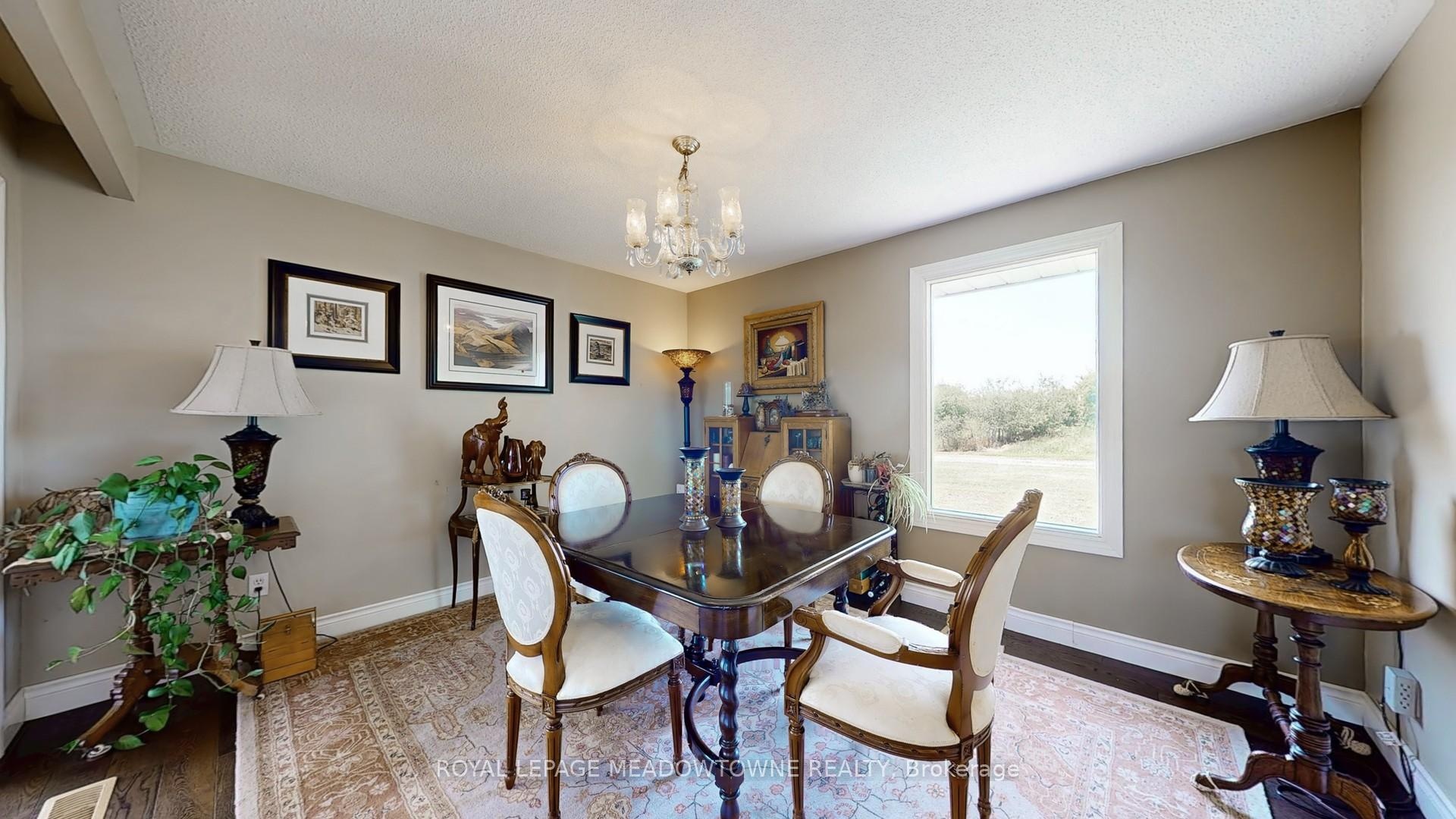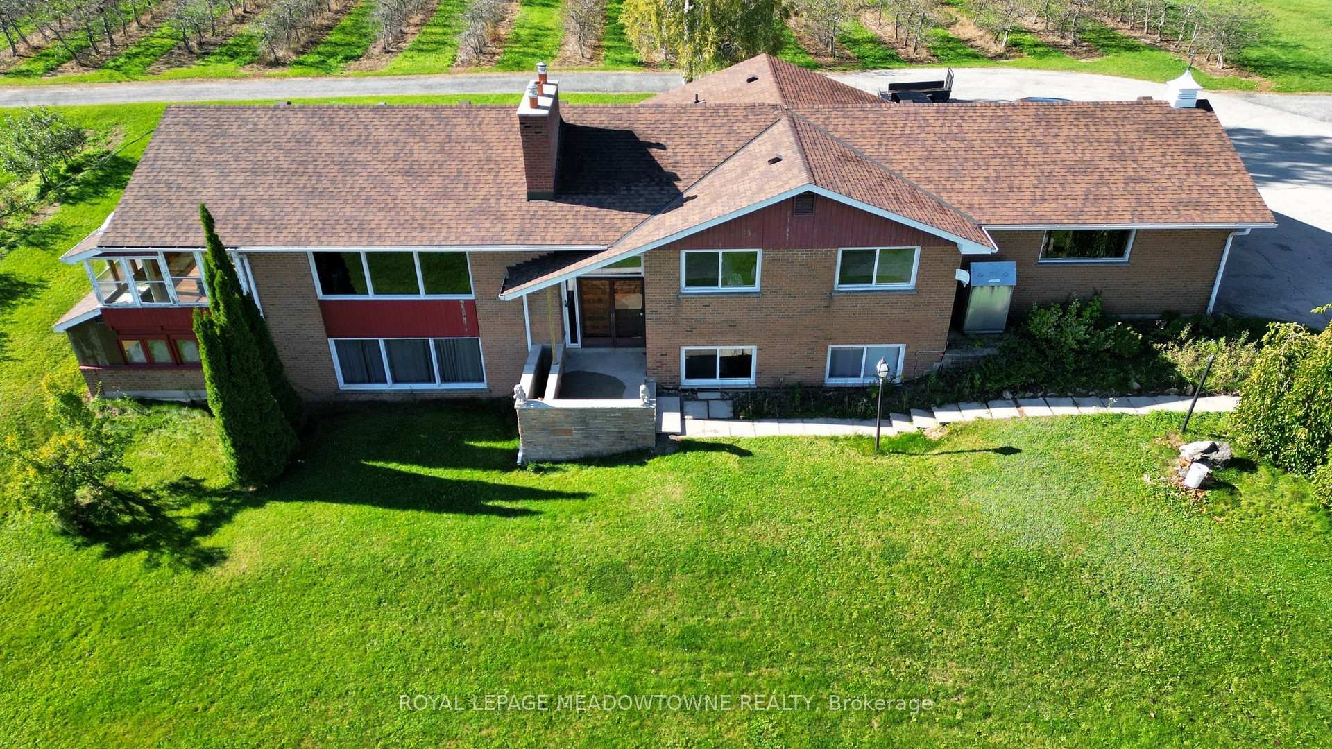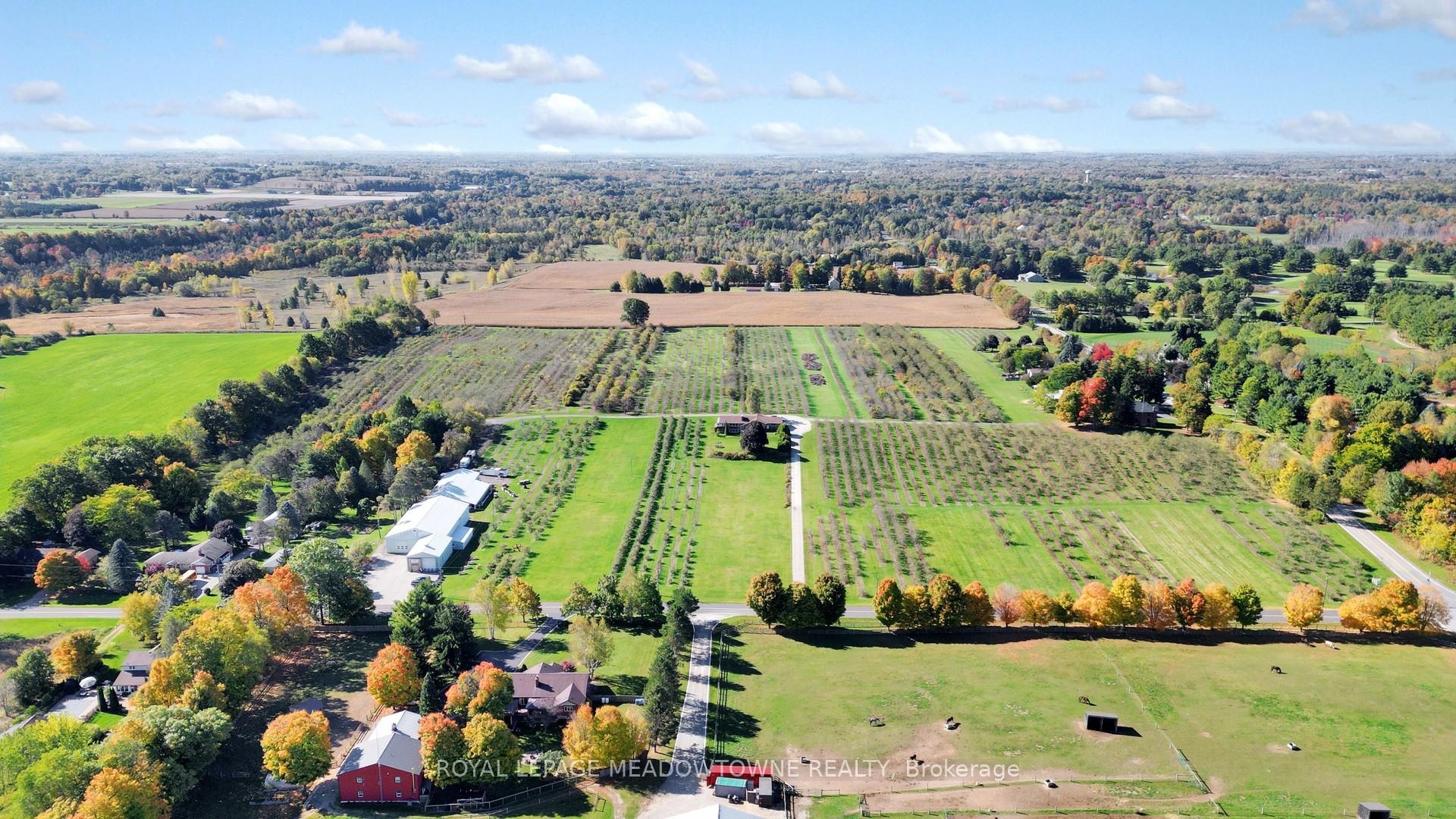 This extraordinary countryside estate set on 37.68 gently rolling acres in one of Carlisle's most desirable and emerging rural communities. Located on a quiet paved dead-end road, this Apple Orchard and Licenced Cidery property offers exceptional exposure and access to the vibrant agri-tourism activity of the area. A destination for cyclists, tourists, and day-trippers from Toronto and U.S. border, this scenic setting supports both lifestyle and income-generating uses. 28 +/- acres planted apple orchard with 8+/- acres for vegetables, sunflowers, lavender, hops or other specialty crops. The fully licensed cidery, distillery & retail space, plus a sprawling 3+2 bedroom raised bungalow perched on a hill with panoramic views of the countryside and orchard. Ideal for multigenerational living, staff housing, or as a rental income opportunity, the residence offers 3,700+ SF of finished space. The main level is carpet-free with hardwood and tile flooring, and features a spacious eat-in kitchen with walk-out, formal dining & living rooms with a wood-burning fireplace. The principal includes a private 3-pc ensuite. Updated windows, pot lights, central air, central vacuum, and a forced air furnace (2021) provide modern comfort. The finished basement offers 2 additional bedrooms & bathroom with above-grade windows, an office, and a walkout to an enclosed hot tub room perfect for extended family or guest/farm help accommodation. The attached 2 car garage adds to the convenience, while recent shingles (2023) enhance peace of mind. The fully licensed cidery, distillery, retail & storage with 15-ft ceilings, shipping, washrooms & ample paved parking. The distillery has cold storage plus more insulated, heated space with drive-in doors for a wide range of permitted uses. Bell Fibre, liquor licenses, wholesale & retail network, make this a multi-purpose investment. Live, work and grow all in one place while also having the flexibility to support income or farming-related uses.