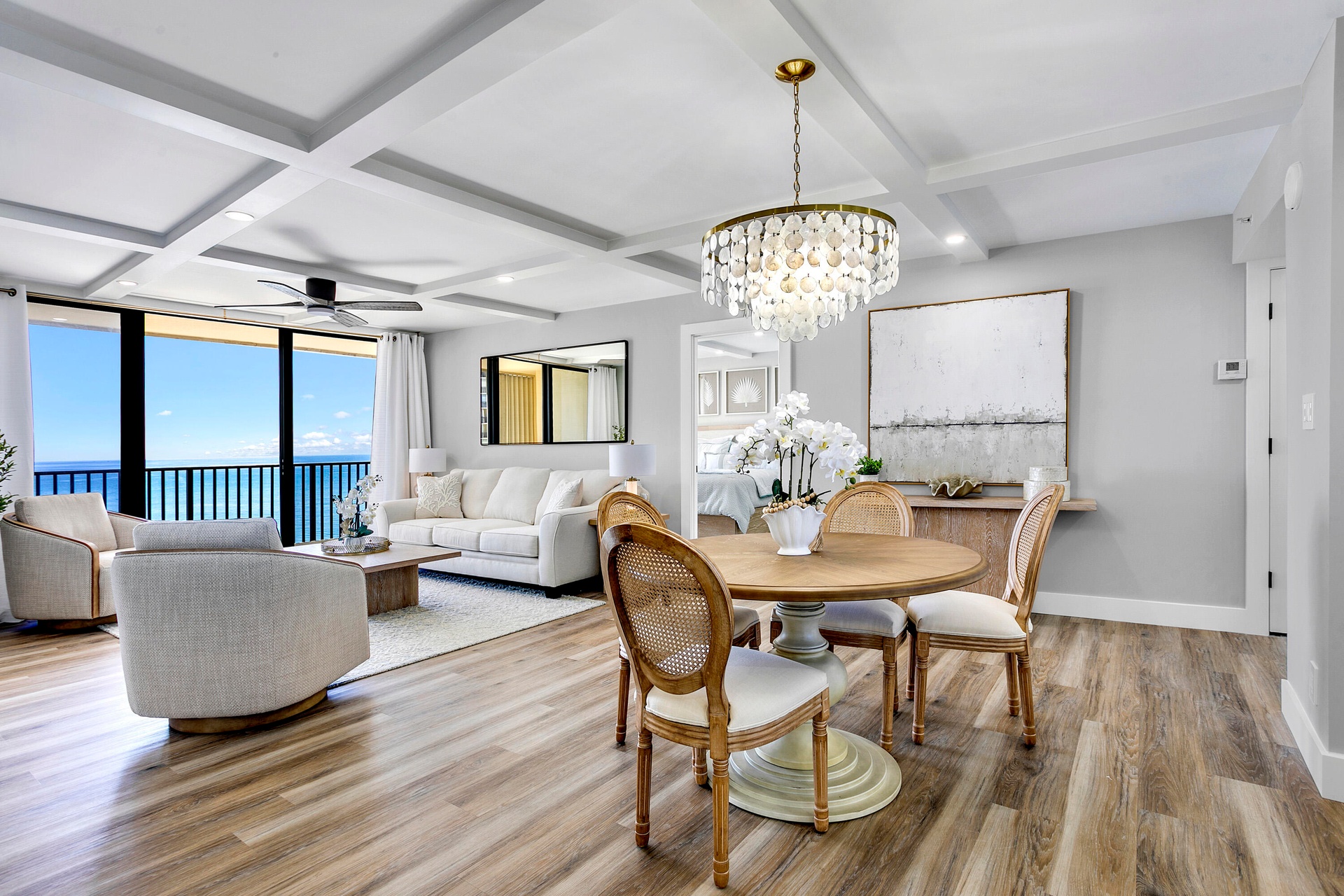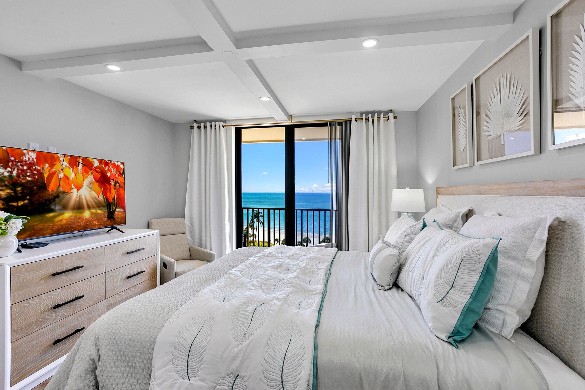 Directly on the beach in Jupiter with a stunning 9th floor, due east ocean view. This 2 bedroom / 2 bath condo is completely renovated top to bottom with all new furnishings (2024). If you have high expectations, you will appreciate the $300k+ interior renovation + the brand new decor selected and styled by a local designer. Offered seasonally @ $11,500 / month with a 4 month minimum lease, or $7000 / month annually turnkey. Extensive building renovations are complete! Ocean Trail is directly on the beach and offers heated pools, spa, sauna, fitness room, social activities, tennis, gated entry, and secure under building parking.