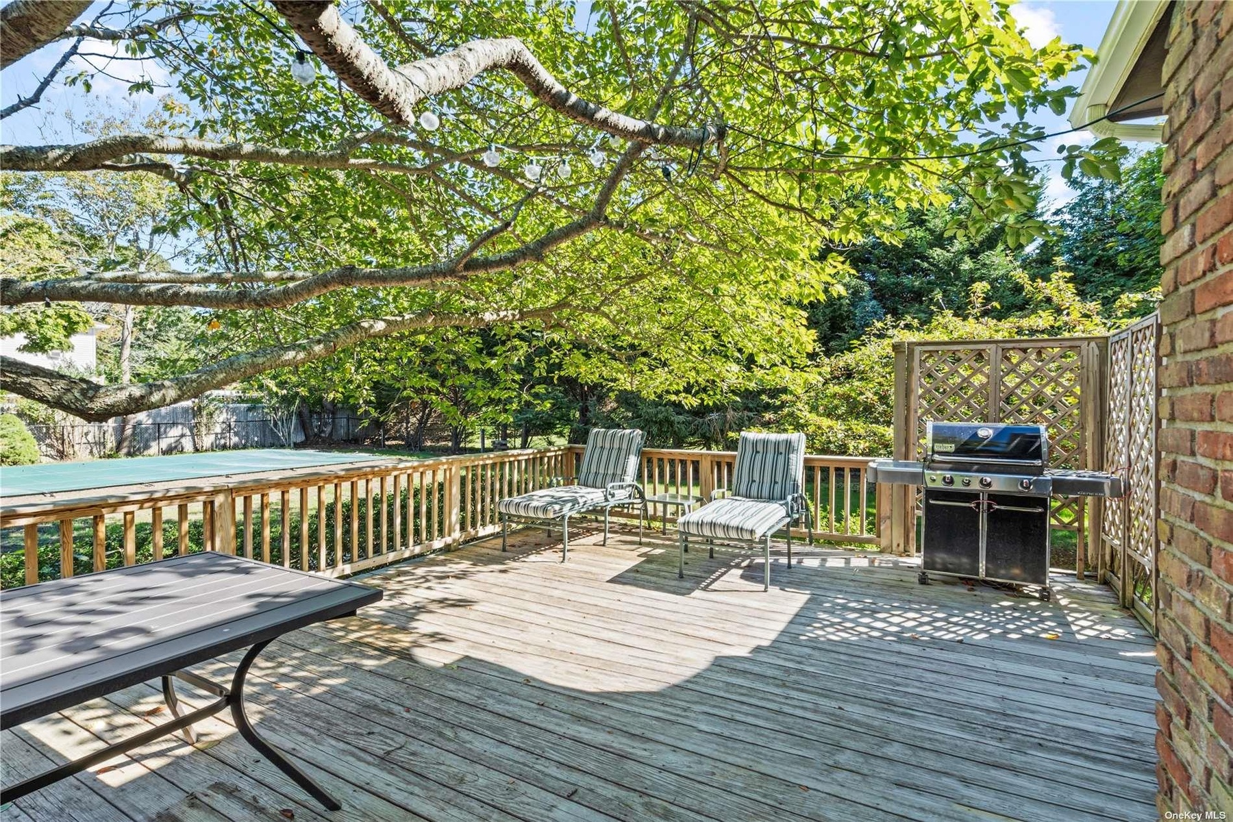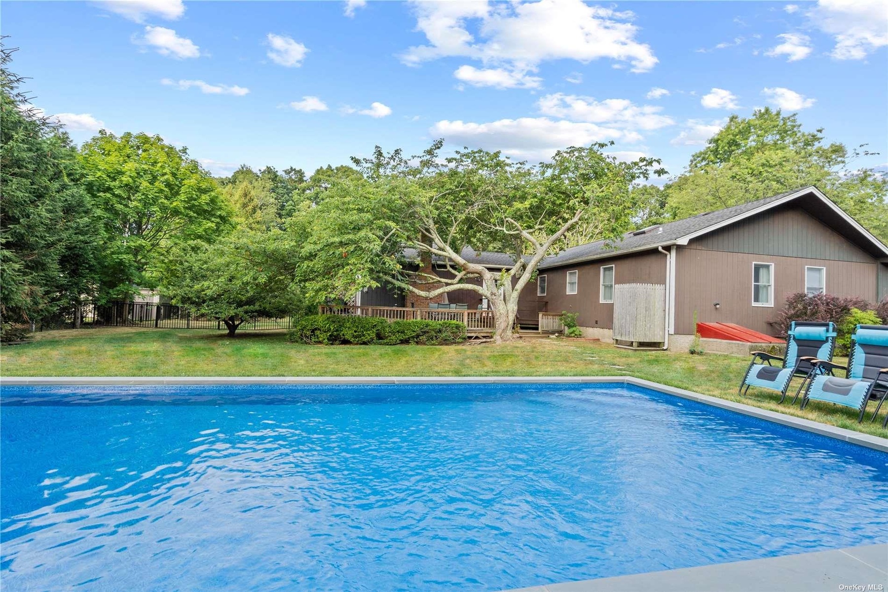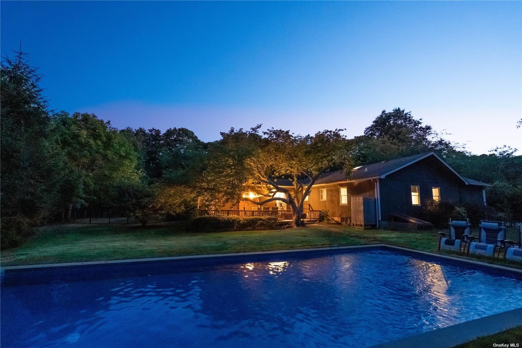 Private, peaceful home on a serene acre of property with mature plantings and wonderful landscaped greenery. Just renovated, featuring open modern Kitchen/Dining combo for modern entertaining. Separate family room across open foyer with fireplace and loads of puzzles & games. Charming covered front porch looks out onto expansive front yard. Back deck with grill overlooks pool and backyard. (Pool Dimensions: 16' x 36' - 3ft in shallow end