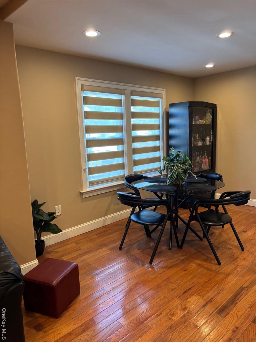 - Dining space with baseboards, recessed lighting, and wood finished floors