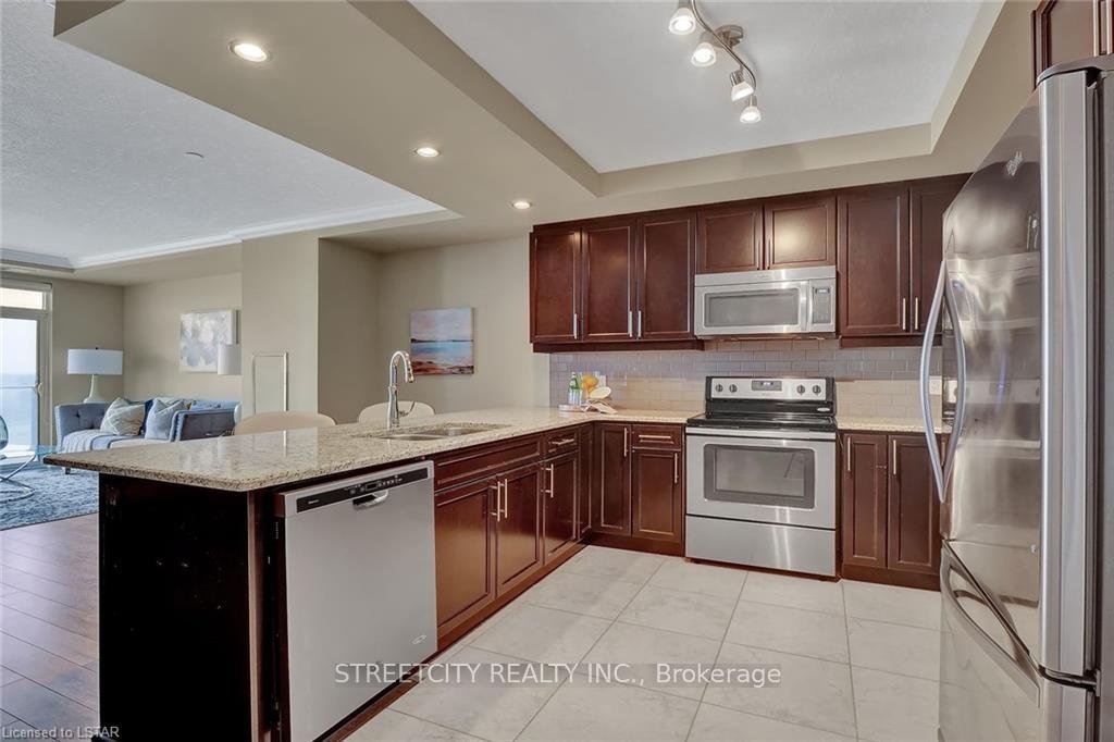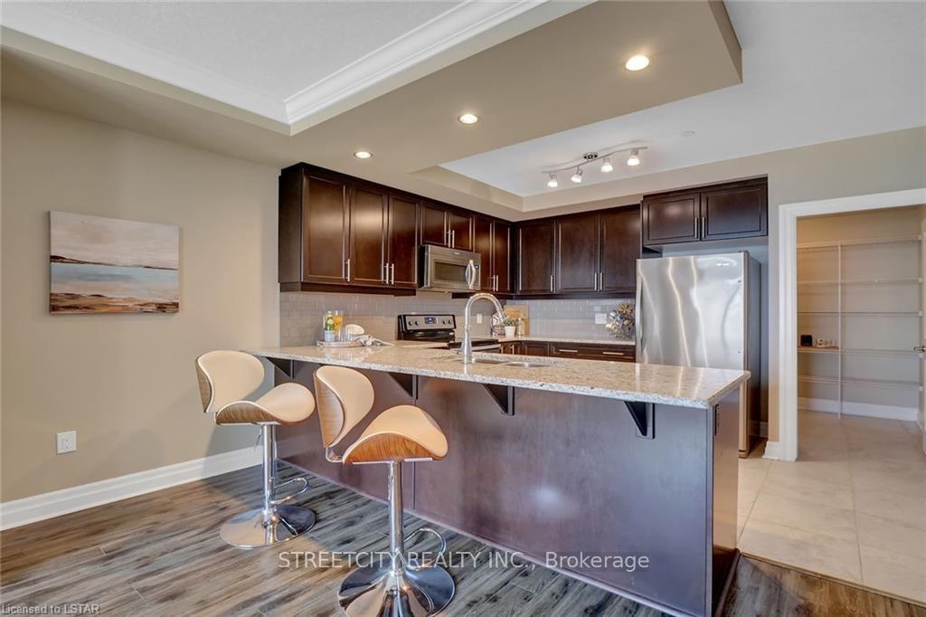 Welcome to this stunning condo located in Prime North London. Located on the 9th floor. Over1500square feet of living space with views to the North and beautiful sunsets to the West. This Unit has 2 Bedrooms plus a Den and 2 full Baths. Huge Kitchen with breakfast bar, granite countertop, and stainless-steel appliances. Separate laundry room, Walk-in pantry. Open concept Living and Dining room overlooking balcony. Hardwood floors and ceramic flooring throughout. Primary bedroom includes 3-piece ensuite as well as huge walk-in closet. Spacious and Bright Bedrooms. 2Underground Parking space come with the unit. The Amenities in this building are incredible! Indoor Pool, Golf Simulation Room, Billiards room, Theatre Room, Guest Suite available (for fee) and an incredible gym! Condo Fee Includes everything except Hydro. Minutes to Western University. The Amenities in this building are incredible! Indoor Pool, Golf Simulation Room, Billiards room, Theatre Room, Guest Suite available (for fee) and an incredible gym! Condo Fee Includes everything except Hydro.