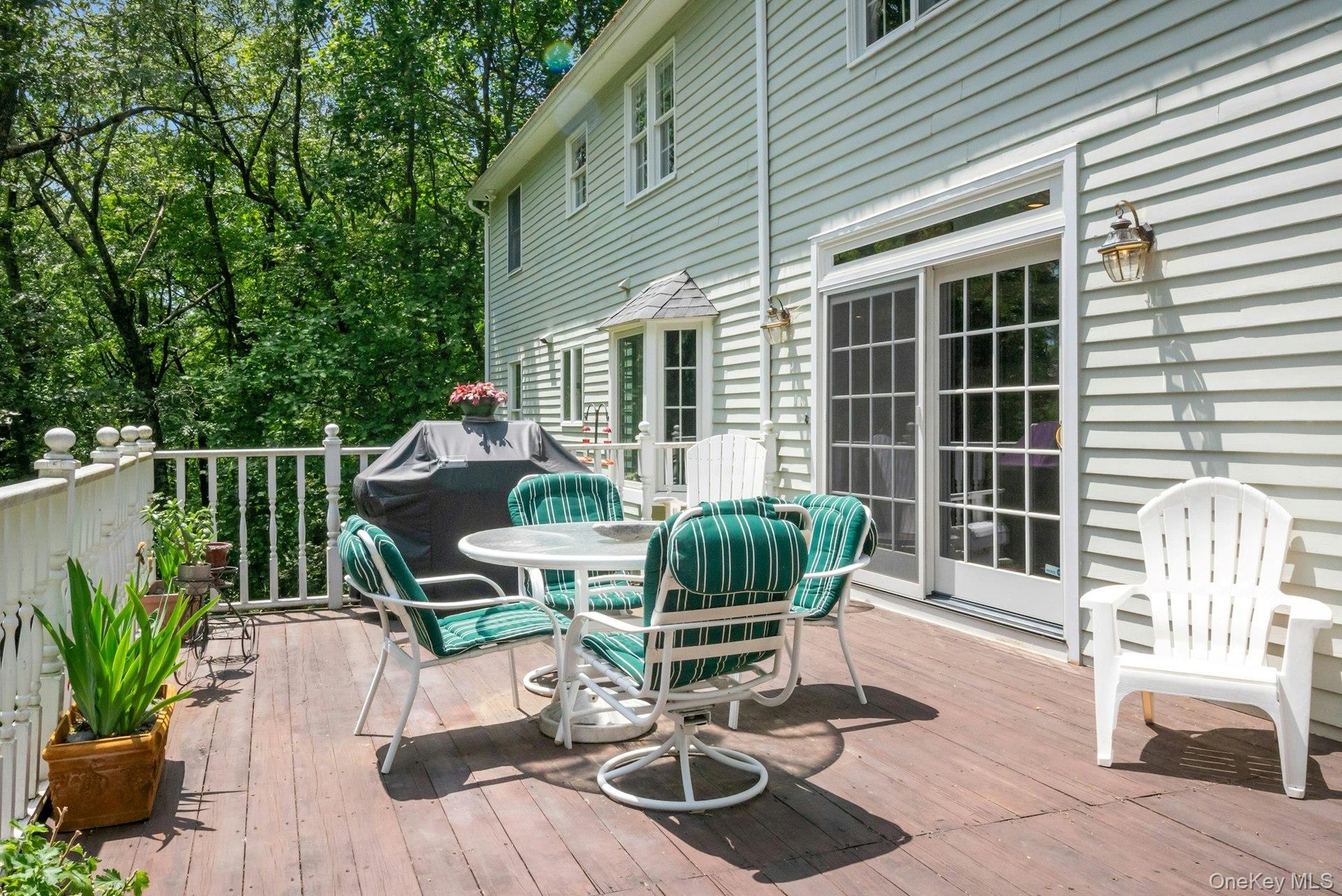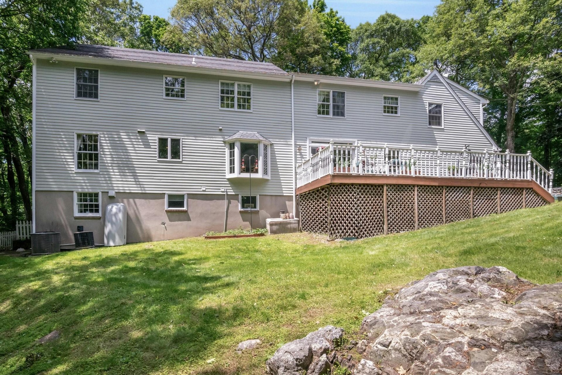 Sprawling colonial where tranquility meets sophistication. Imagine spending the summer relaxing or entertaining poolside on this stone patio, set on over 2 acres of rolling landscape with mature gardens, all surrounded by protected land. The interior opens to a generous foyer, a formal living room w/fireplace, formal dining room and large sunken family room with custom woodworking, a fireplace and wet bar. The kitchen is equipped with high end appliances, granite countertops, a breakfast nook, and includes sliders to a large deck. 4 bedrooms are located on the second floor. The primary suite has a fireplace, ensuite bath, and generous closet space; w/d conveniently located down the upstairs hall. Vaulted ceilings and lots of windows fill the game room with abundant natural light, and add architectural interest to the space. A total of 3700 square ft of living space completes the main living quarters. The lower level features an additional 1100 square foot of living space with a legal kitchen, playroom, full bath and separate washer/dryer. Located at the end of a cul-de-sac, convenient access to highways, parks, trains and shopping in multiple neighboring towns. Bedford Schools. A must see to truly appreciate all that this listing has to offer!