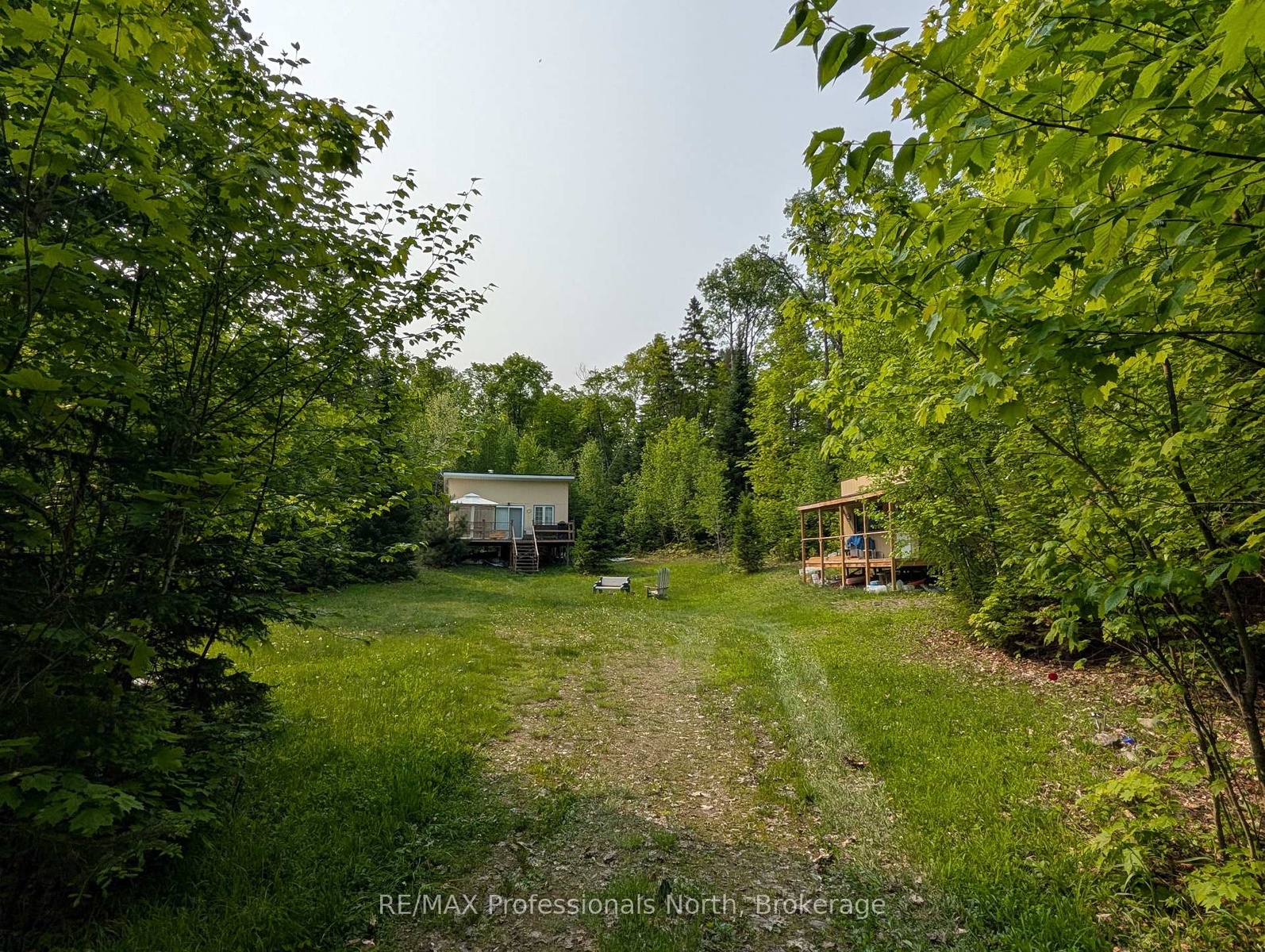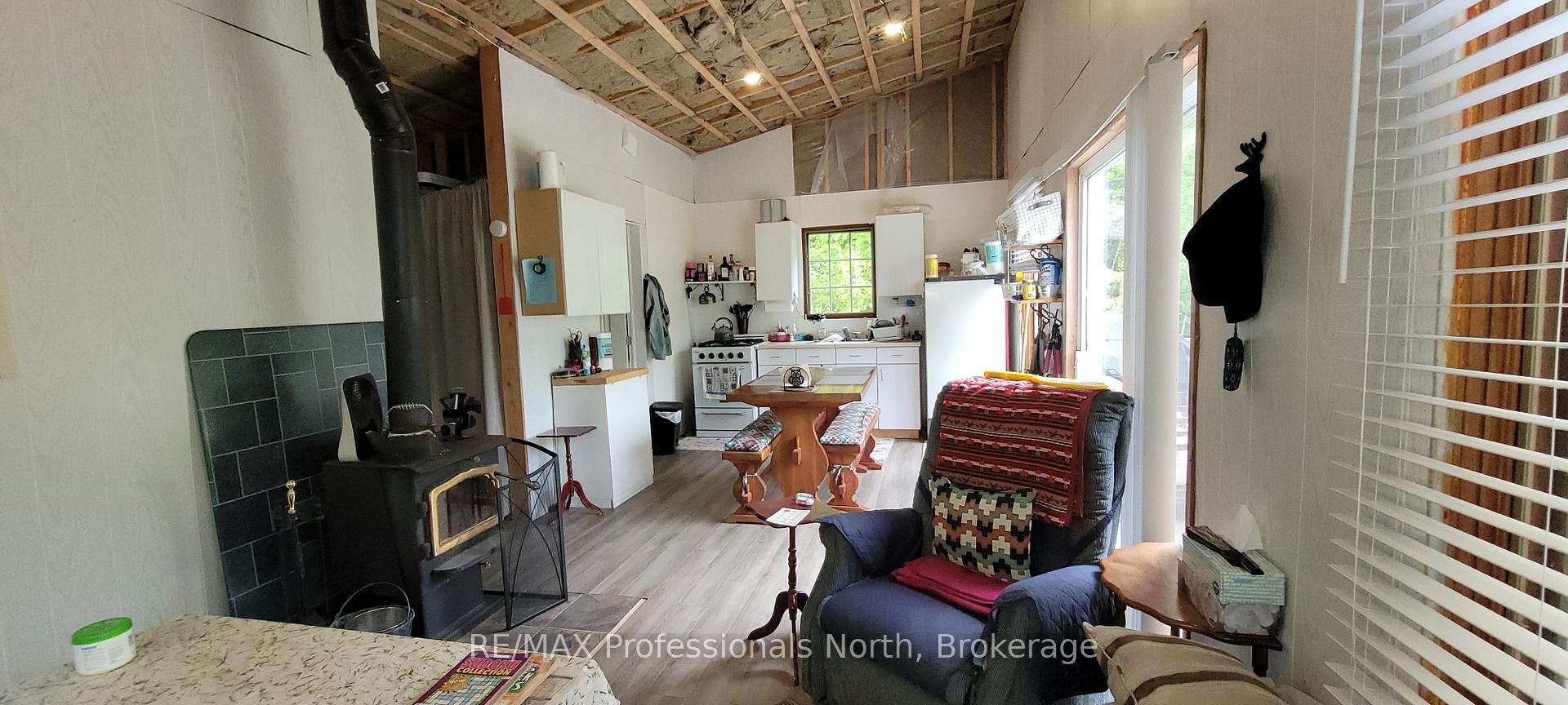 Private, waterfront getaway in unorganized township on Maeck Lake in the heart of the Almaguin Highlands. Enjoy this 16 acre waterfront property on Maeck Lake with easy access from the main road and 2 secluded cabins built in 2019. The main cabin has 2 bedrooms, a living area which includes an eat-in kitchen and living room with woodstove and sliding doors leading to a 10' x 28' deck w/gazebo. Outdoor 120 gal cistern supplies water to the cabin, hot water available, all leading to a grey water drain. The cabin is fully insulated with 2" x 6" construction and R24 insulated floor, double pane vinyl clad windows, low maintenance Lifetime Smartside tongue and groove panels, propane fridge and stove, small solar system with RV batteries, led lighting, including jacks for cell phones and other devices. The 2nd cabin is a modified trailer with screened-in deck and open space to make your own. Ideal for Airbnb rental or build your own home/cottage with a number of potential building sites. Build to Ontario Code with no building permits required, other than septic & hydro. Hydro available at the property line. Private laneway leads to waterfront with turnaround, boat launch, and newer dock. Maeck Lake Association has a 9.9 HP motor restriction, and no public access to the lake. Property is adjacent to acres of crown land.. Great opportunity... much to appreciate here!