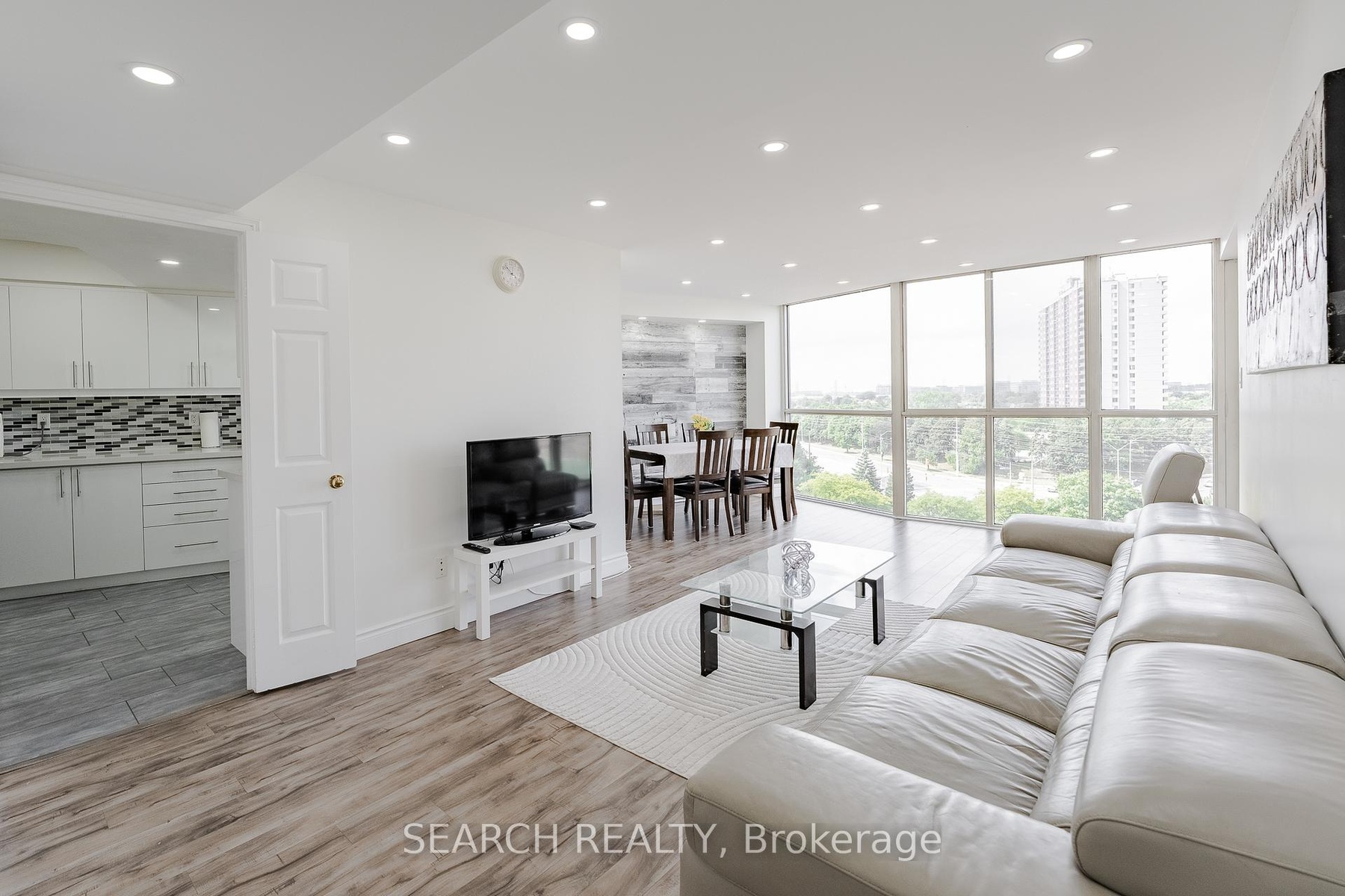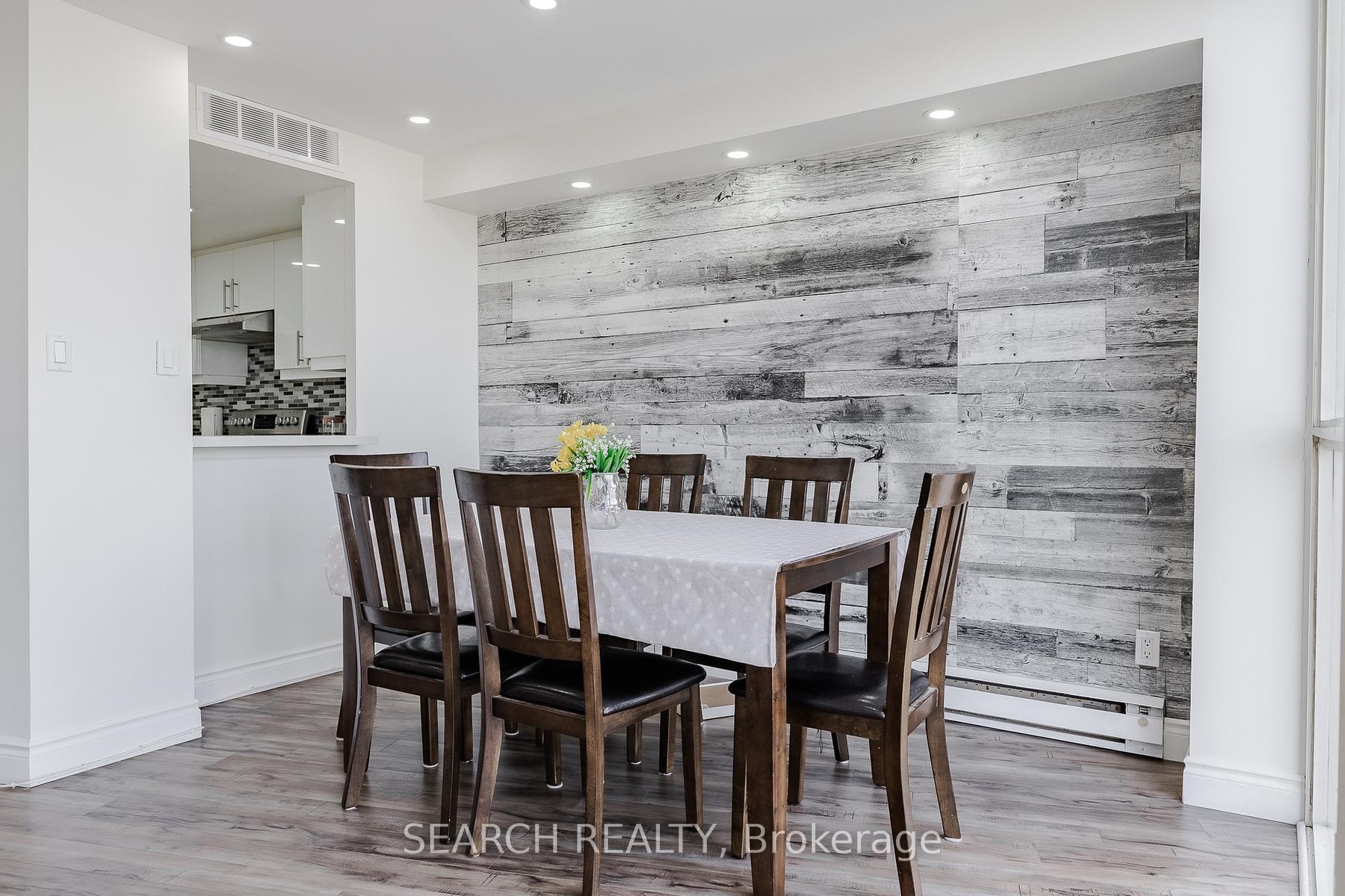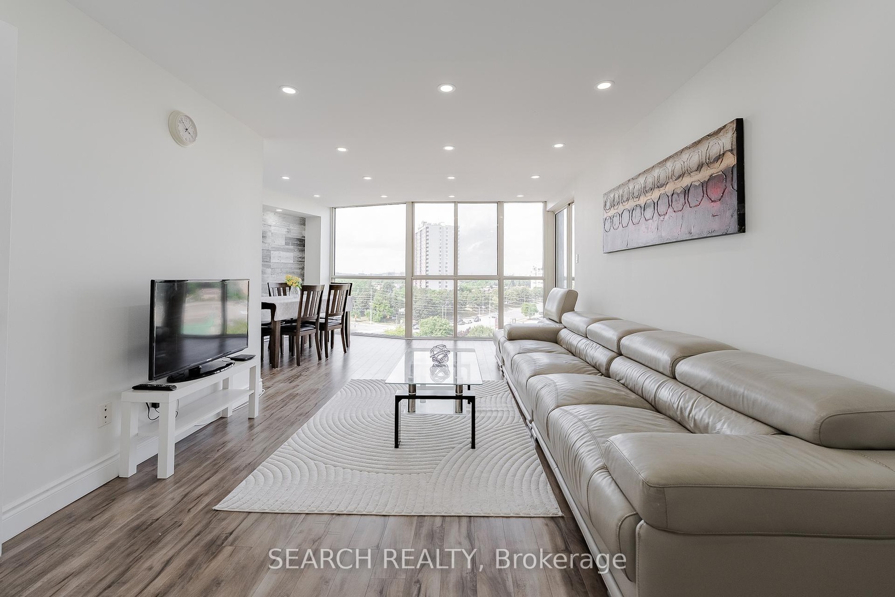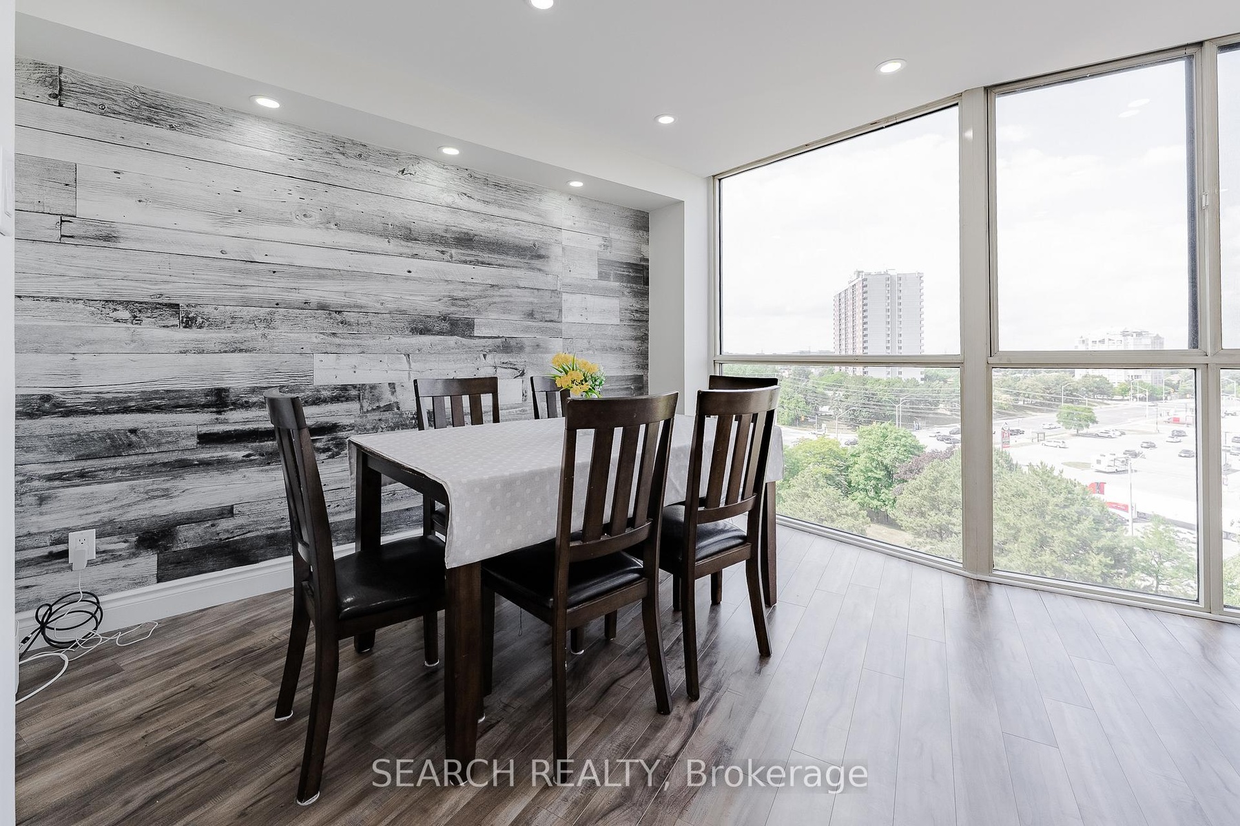 Modernized With Care, Fully Renovated, East-Facing 2-Bedroom + Den, 2-Bath Condo With High-End Upgrades! Bright And Spacious, Approx. 1200 SQFT Unit. $$$$$ Spent On Upgrades. Large Kitchen , Quartz Countertops, Ceiling Pot Lights, Stainless Steel Appliances, a Double Sink With a Pull-Out Faucet, a Service Window, and a Separate Laundry Room.Huge Living & Dining area Features Floor-to-Ceiling Windows, an Accent Wall, No Carpet Throughout. Primary Bedroom Easily Accommodates a King-Sized Bed, Has Big Glass Windows, and a Spacious Walk-in Closet. Second Bedroom is Next to the Den/Solarium with Floor-to-Ceiling Windows. Both Bathrooms are Upgraded Tastefully. CONDO FEES Covers ALL UTILITIES, Including HEAT, HYDRO, WATER, AC, (XFINITY TV & 1 GB INTERNET-$60 per month remaining for one year) And Building Amenities - HOT TUB/SWIMMING POOL, SAUNA, GYM, PARTY ROOM, LIBRARY and TENNIS COURT. Located in Top School District, Perfect for Families, Young Professionals, Retirees, and Investors. Prime Location: Steps to Rockwood Mall & Transit, Minutes to Square One, Sherway Gardens, Dixie GO, Major Highways (QEW, 427, 401), Hospitals, Restaurants, and More! Includes Exclusive Parking & Locker, Ample Additional Parking Available at Reasonable Cost.