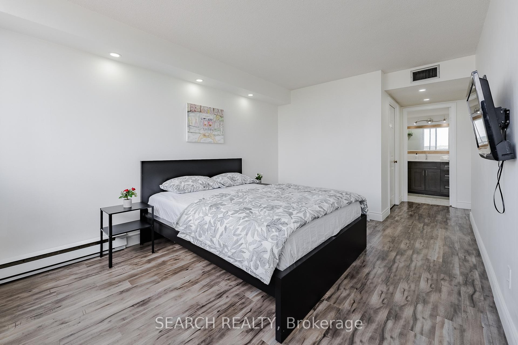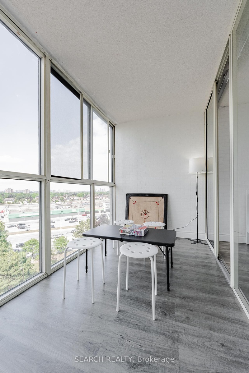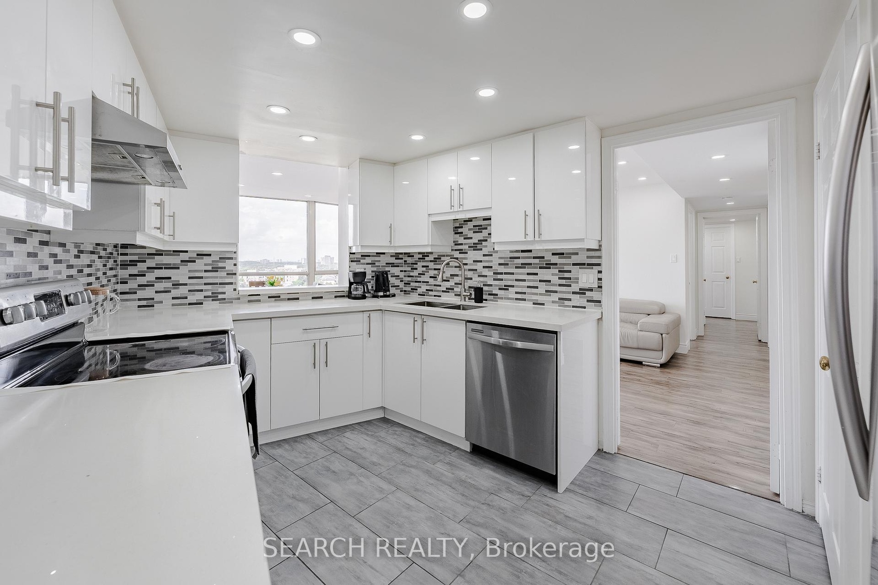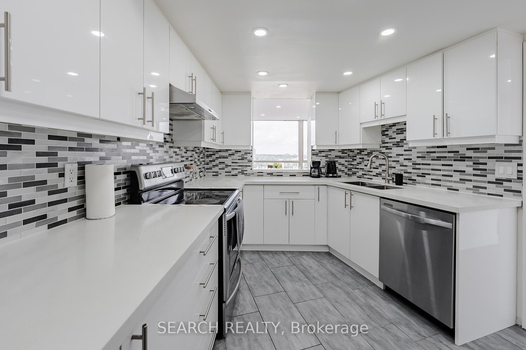 Modernized With Care, Fully Renovated, East-Facing 2-Bedroom + Den, 2-Bath Condo With High-End Upgrades! Bright And Spacious, Approx. 1200 SQFT Unit. $$$$$ Spent On Upgrades. Large Kitchen , Quartz Countertops, Ceiling Pot Lights, Stainless Steel Appliances, a Double Sink With a Pull-Out Faucet, a Service Window, and a Separate Laundry Room.Huge Living & Dining area Features Floor-to-Ceiling Windows, an Accent Wall, No Carpet Throughout. Primary Bedroom Easily Accommodates a King-Sized Bed, Has Big Glass Windows, and a Spacious Walk-in Closet. Second Bedroom is Next to the Den/Solarium with Floor-to-Ceiling Windows. Both Bathrooms are Upgraded Tastefully. CONDO FEES Covers ALL UTILITIES, Including HEAT, HYDRO, WATER, AC, (XFINITY TV & 1 GB INTERNET-$60 per month remaining for one year) And Building Amenities - HOT TUB/SWIMMING POOL, SAUNA, GYM, PARTY ROOM, LIBRARY and TENNIS COURT. Located in Top School District, Perfect for Families, Young Professionals, Retirees, and Investors. Prime Location: Steps to Rockwood Mall & Transit, Minutes to Square One, Sherway Gardens, Dixie GO, Major Highways (QEW, 427, 401), Hospitals, Restaurants, and More! Includes Exclusive Parking & Locker, Ample Additional Parking Available at Reasonable Cost.