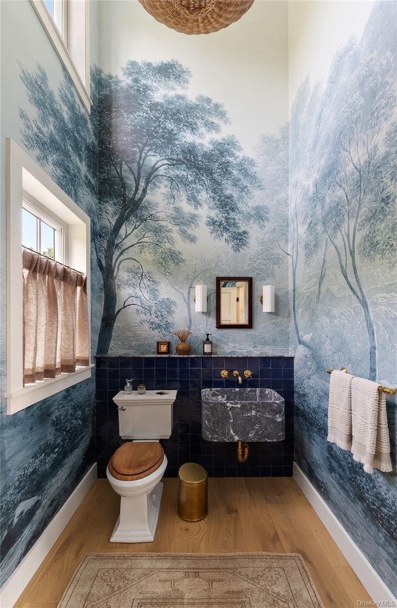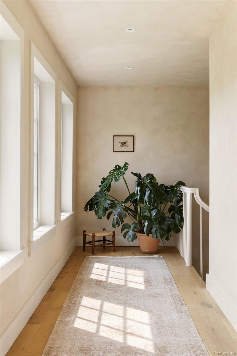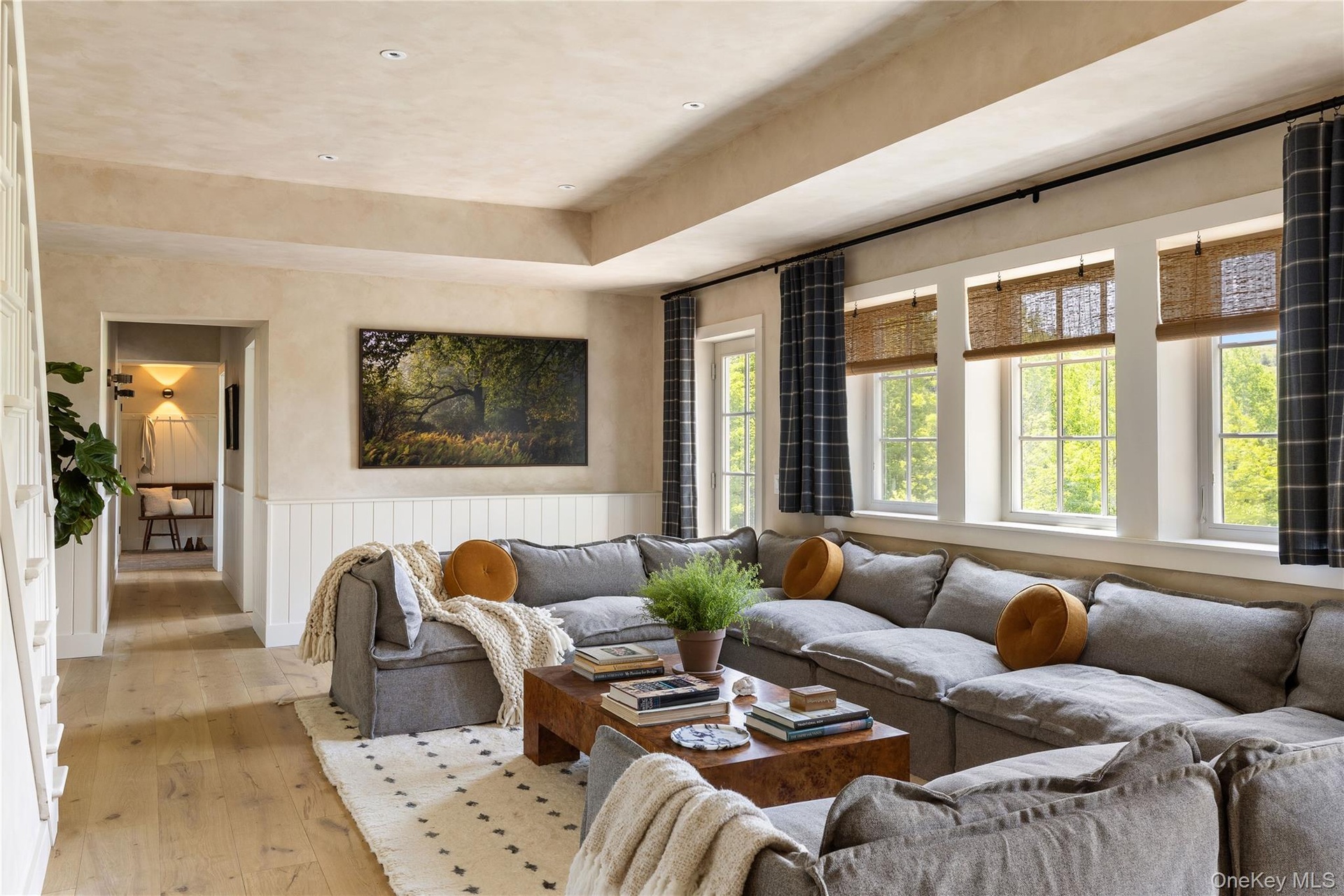 - Living area with light wood finished floors, a wainscoted wall, plenty of natural light, and recessed lighting
