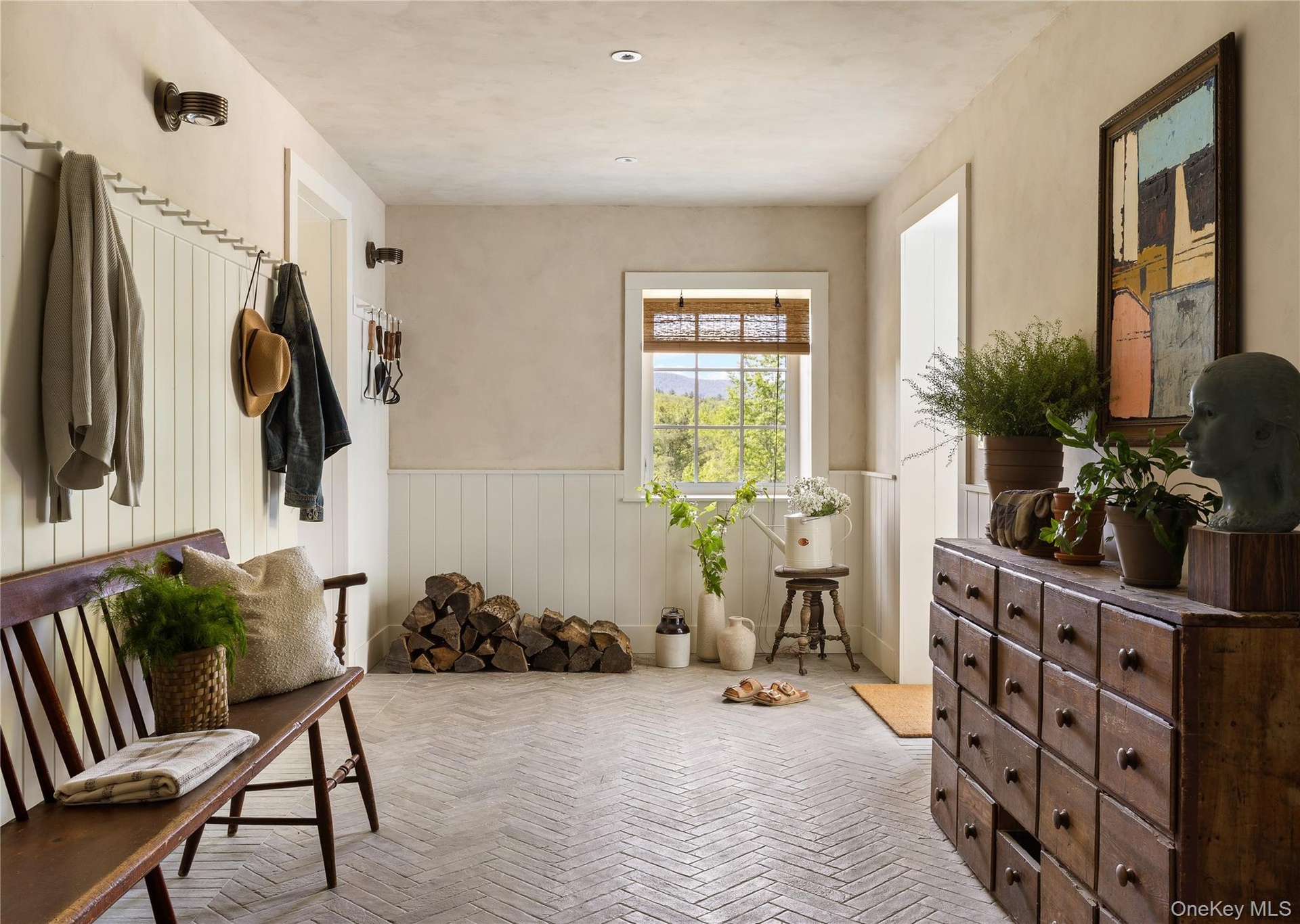 Outside, multiple entertaining terraces and an expansive rear deck take full advantage of the natural surroundings, while a stream and seasonal waterfalls enhance the sense of tranquility. Additional features include an attached, heated, two-car garage, all-purpose mudroom, and a backyard master plan already prepared with plans for a future pool. Just 20 minutes from Windham Mountain Club, under an hour to Hudson and Albany, and a little over two hours from NYC, Potter Mountain House offers sanctuary, scale, and elevated design. A fully furnished option is also available, providing a true turnkey experience for effortless move-in. Unlike anything else on the market—distinctive, historic, and telling a story entirely its own.