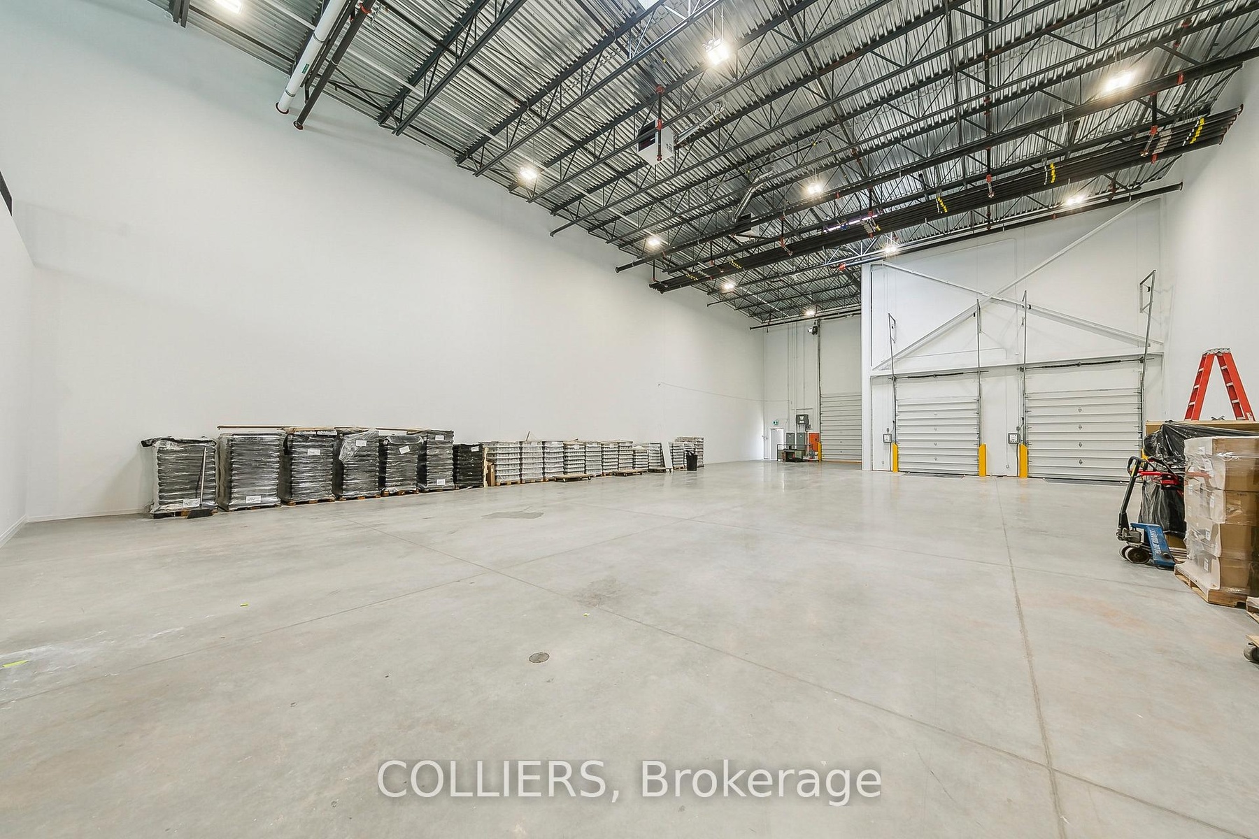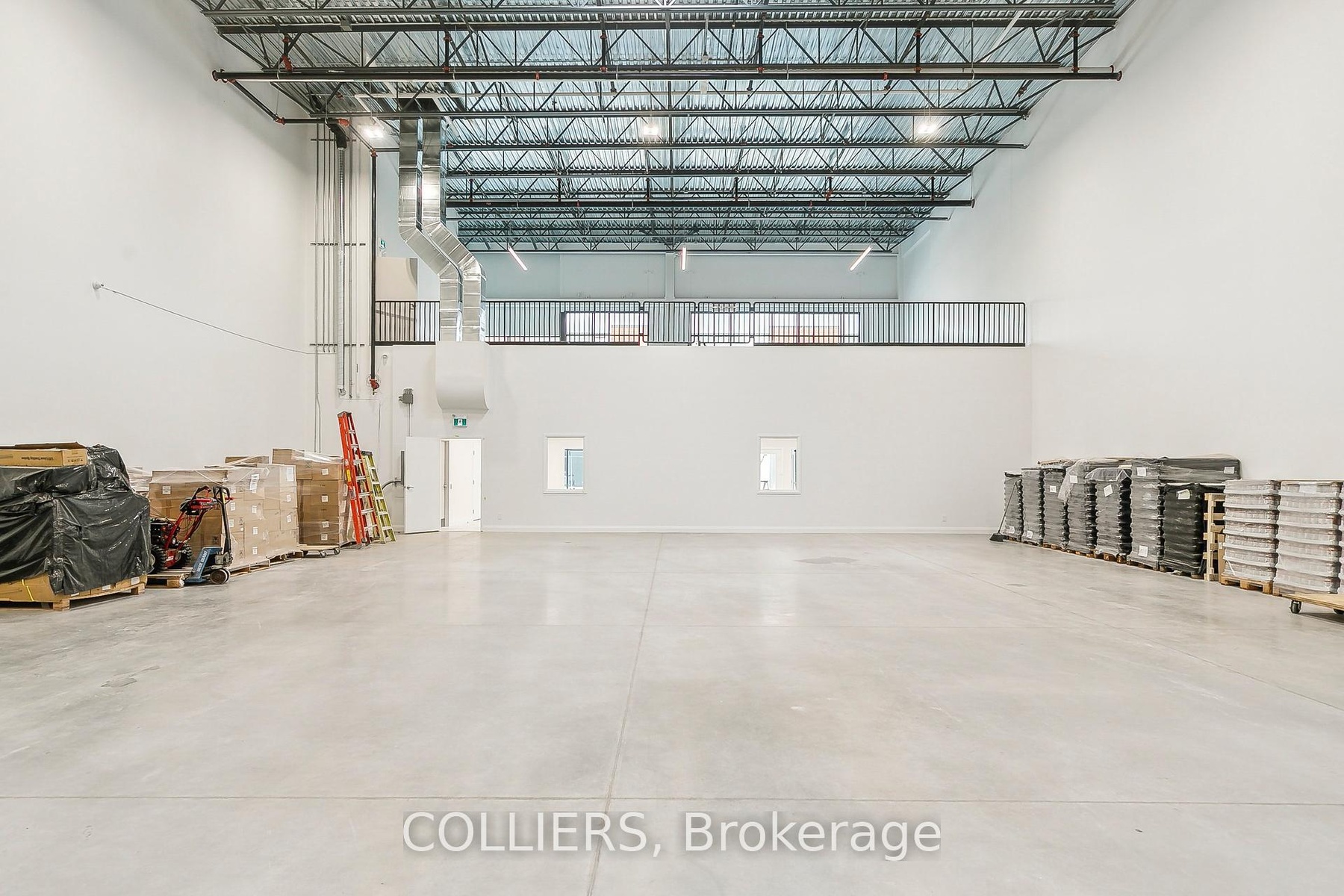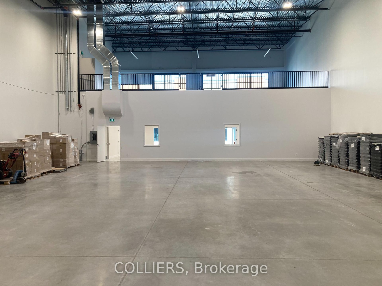 DescriptionBrand new 8,930 SF industrial unit with 28 ft clear height under joist in warehouse (6,984 SF ground floor & 2,036 SF mezzanine - mezzanine can be self-contained having a separate access from entry porch with floor load of 100 LB of live load capacity with 10 ft clear. Unit has two full size TL doors with automatic levelers, bollards and full weather stripping plus 1 oversized 11x16 FT automatic DI door. Warehouse has 2 large skylights with LED lighting with motion sensors. Two gas heaters with thermostats and 2-way ceiling fans. Unit is all finished and painted white with baseboards. Unit has fully operational handicap washroom. Office space is MOVE IN READY. Fully occupiable with big open concept office space (with see-through windows to the warehouse portion) + 4 individual offices + board room + lunch room/kitchenette + server room + handicap washroom. Fully functioning office heating and cooling system (HVAC). This features unit is the only unit with finished office space for lease in that complex. The unit has 200-amp service with EV Charging Station conduit pre-installed. Security system/cameras installed and working. Roger Fibre internet connected and working. Mezzanine can be used for office or storage space having a live load capacity of 100 LB/SF & ground floor 500 LB/SF. Exterior waterspout with shutoff valve. Unit is column free and built with insulated concrete panels and ESFR sprinklers.Amenities- Major Highway