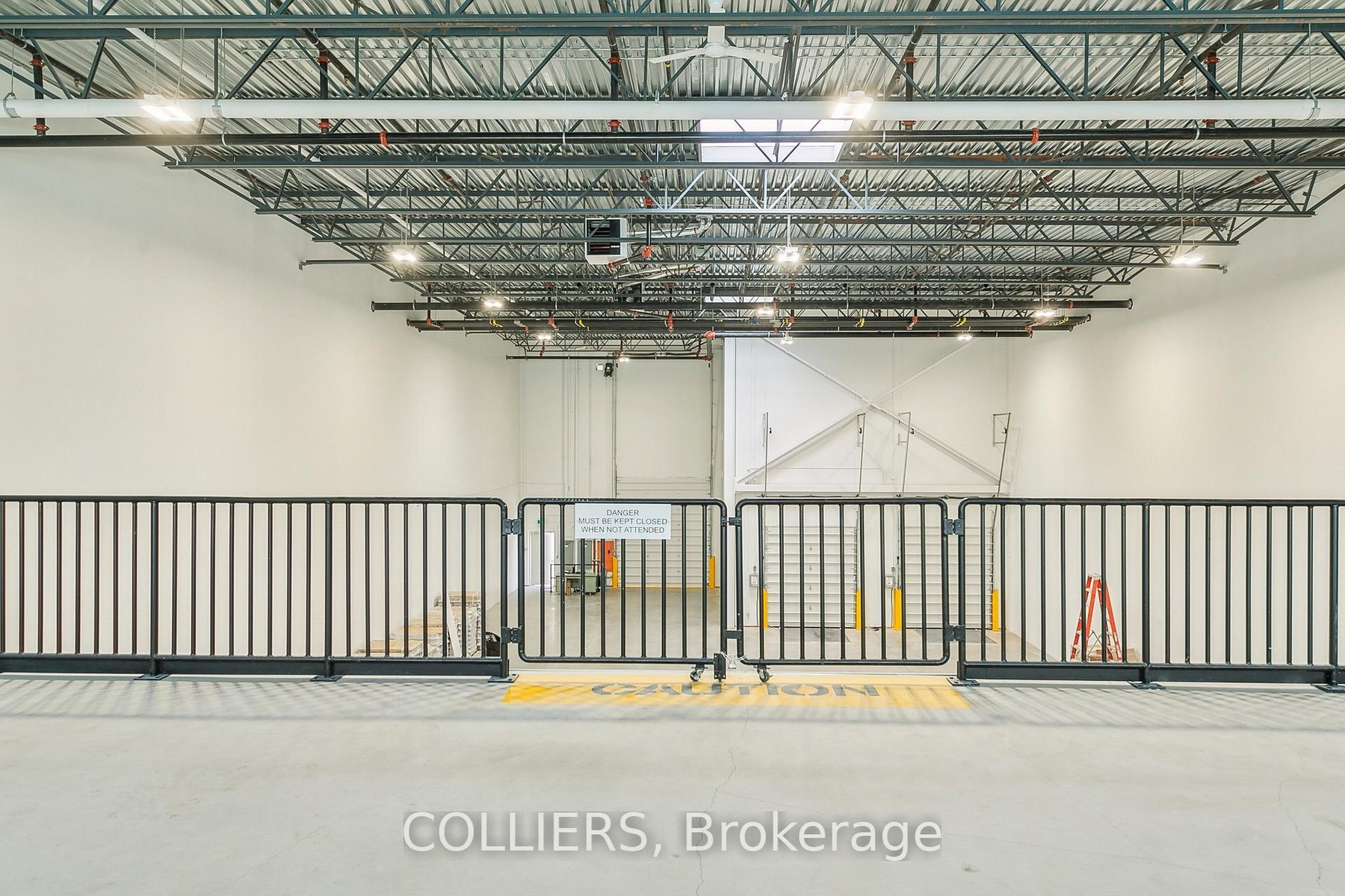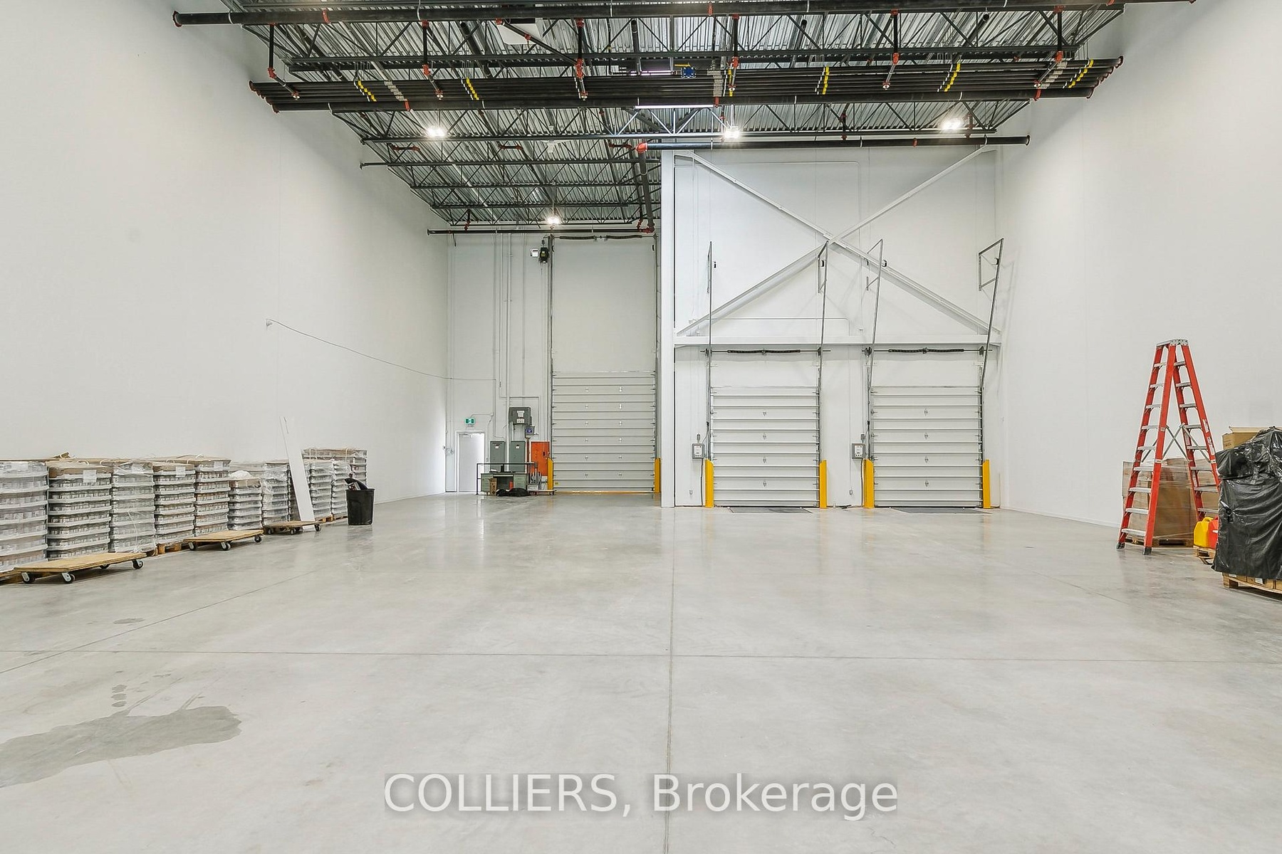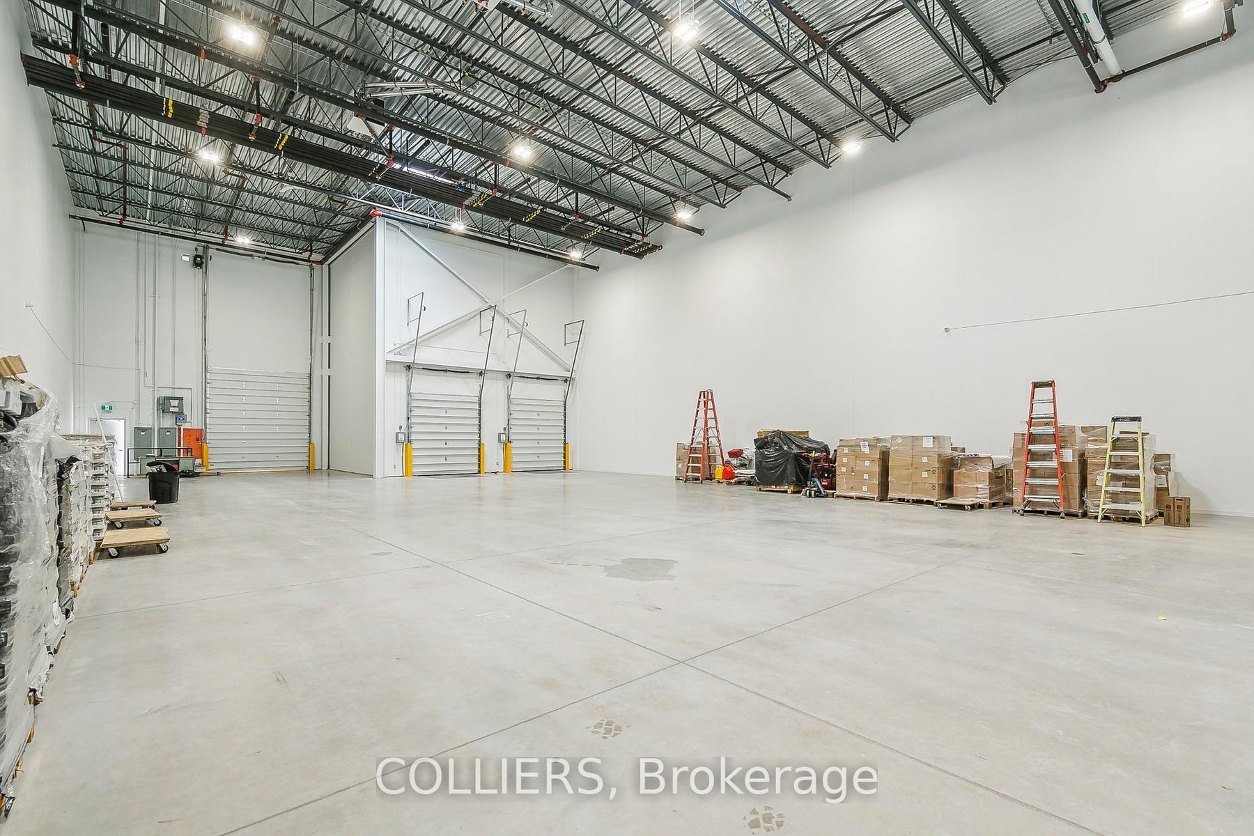 DescriptionBrand new 8,930 SF industrial unit with 28 ft clear height under joist in warehouse (6,984 SF ground floor & 2,036 SF mezzanine - mezzanine can be self-contained having a separate access from entry porch with floor load of 100 LB of live load capacity with 10 ft clear. Unit has two full size TL doors with automatic levelers, bollards and full weather stripping plus 1 oversized 11x16 FT automatic DI door. Warehouse has 2 large skylights with LED lighting with motion sensors. Two gas heaters with thermostats and 2-way ceiling fans. Unit is all finished and painted white with baseboards. Unit has fully operational handicap washroom. Office space is MOVE IN READY. Fully occupiable with big open concept office space (with see-through windows to the warehouse portion) + 4 individual offices + board room + lunch room/kitchenette + server room + handicap washroom. Fully functioning office heating and cooling system (HVAC). This features unit is the only unit with finished office space for lease in that complex. The unit has 200-amp service with EV Charging Station conduit pre-installed. Security system/cameras installed and working. Roger Fibre internet connected and working. Mezzanine can be used for office or storage space having a live load capacity of 100 LB/SF & ground floor 500 LB/SF. Exterior waterspout with shutoff valve. Unit is column free and built with insulated concrete panels and ESFR sprinklers.Amenities- Major Highway
