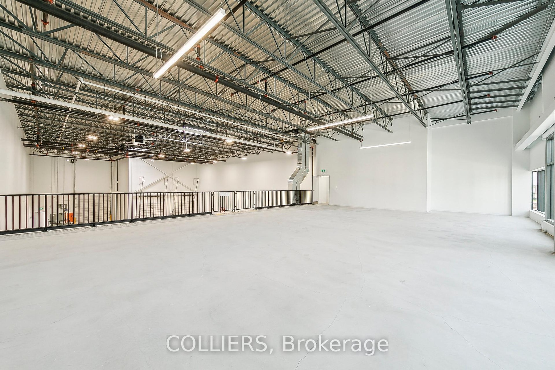 Brand new 8,930 SF industrial unit with 28 ft clear height under joist in warehouse (6,984 SF ground floor & 2,036 SF mezzanine - mezzanine can be self-contained having a separate access from entry porch with floor load of 100 LB of live load capacity with 10 ft clear. Unit has two full size TL doors with automatic levelers, bollards and full weather stripping plus 1 oversized 11x16 FT automatic DI door. Warehouse has 2 large skylights with LED lighting with motion sensors. Two gas heaters with thermostats and 2-way ceiling fans. Unit is all finished and painted white with baseboards. Unit has fully operational handicap washroom. Office space is MOVE IN READY. Fully occupiable with big open concept office space (with see-through windows to the warehouse portion) + 4 individual offices + board room + lunch room/kitchenette + server room + handicap washroom. Fully functioning office heating and cooling system (HVAC). This features unit is the only unit with finished office space for lease in that complex. The unit has 200-amp service with EV Charging Station conduit pre-installed. Security system/cameras installed and working. Roger Fibre internet connected and working. Mezzanine can be used for office or storage space having a live load capacity of 100 LB/SF & ground floor 500 LB/SF. Exterior waterspout with shutoff valve. Unit is column free and built with insulated concrete panels and ESFR sprinklers.