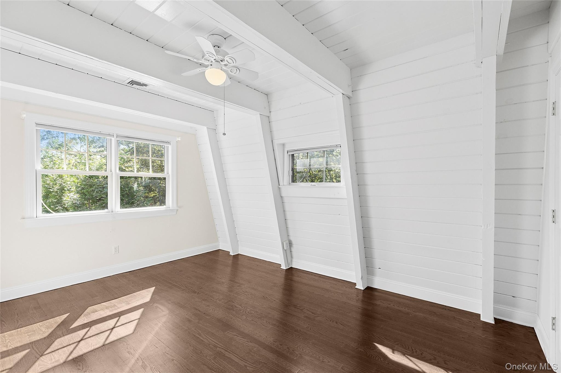 - Empty room featuring healthy amount of natural light, light wood-style flooring, and ceiling fan