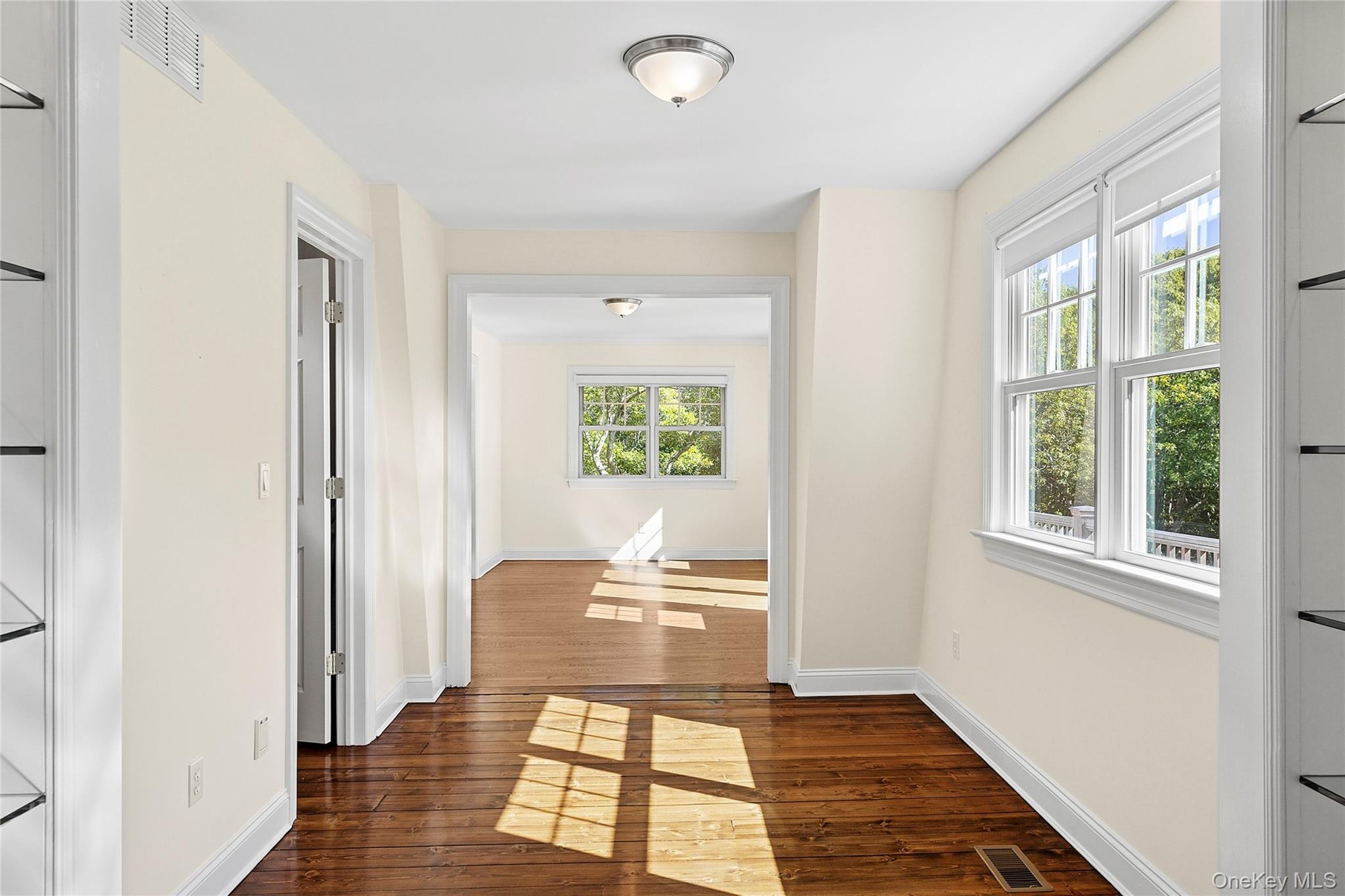 - Foyer featuring plenty of natural light, dark wood-type flooring, and stairway