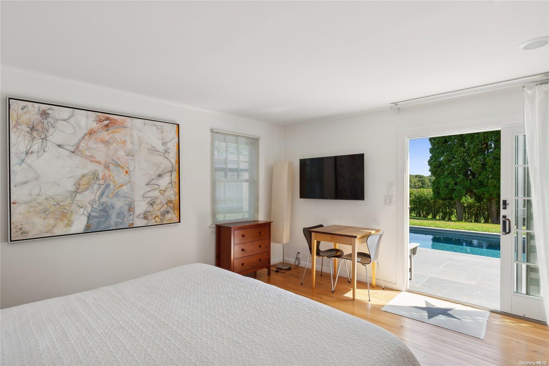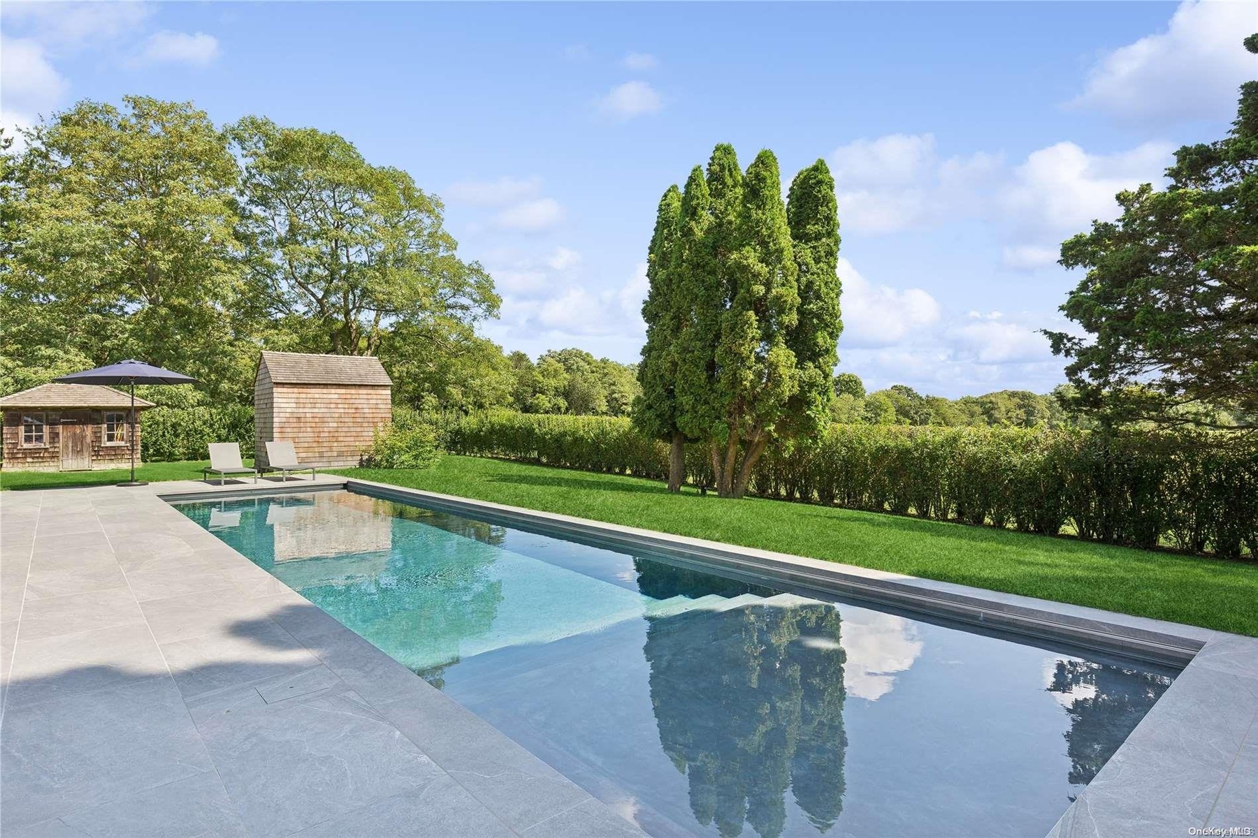 Chic Bridgehampton Farm House With Poolside Guest Cottage In the heart of Bridgehampton, this fabulous architect-owned and renovated three bedroom, two and one half-bath home has been designed to make the most of its farm field views and bucolic property. Set way back off the main road, the impressive grounds hold expansive vistas, charming interiors, and lots of privacy. The light-filled home features three well-appointed bedrooms, a primary bedroom with its own private bath, home office, eat -in kitchen with a lovely patio, formal dining room, and home office. The wrap around porch is delightful, the separate poolside guest cottage hosts a bed, bath and kitchenette, ideal for an escape or a special guest. The infinity pool is heated, and overlooks the expanse of farm views. Situated less than three miles from Gibson beach and just east of Main Street with all of the shops and fabulous restaurants Bridgehampton has to offer. Make memories this summer on the East End., Additional information: August availability $70,000. Features:Guest Quarters/charming pool house with bath.