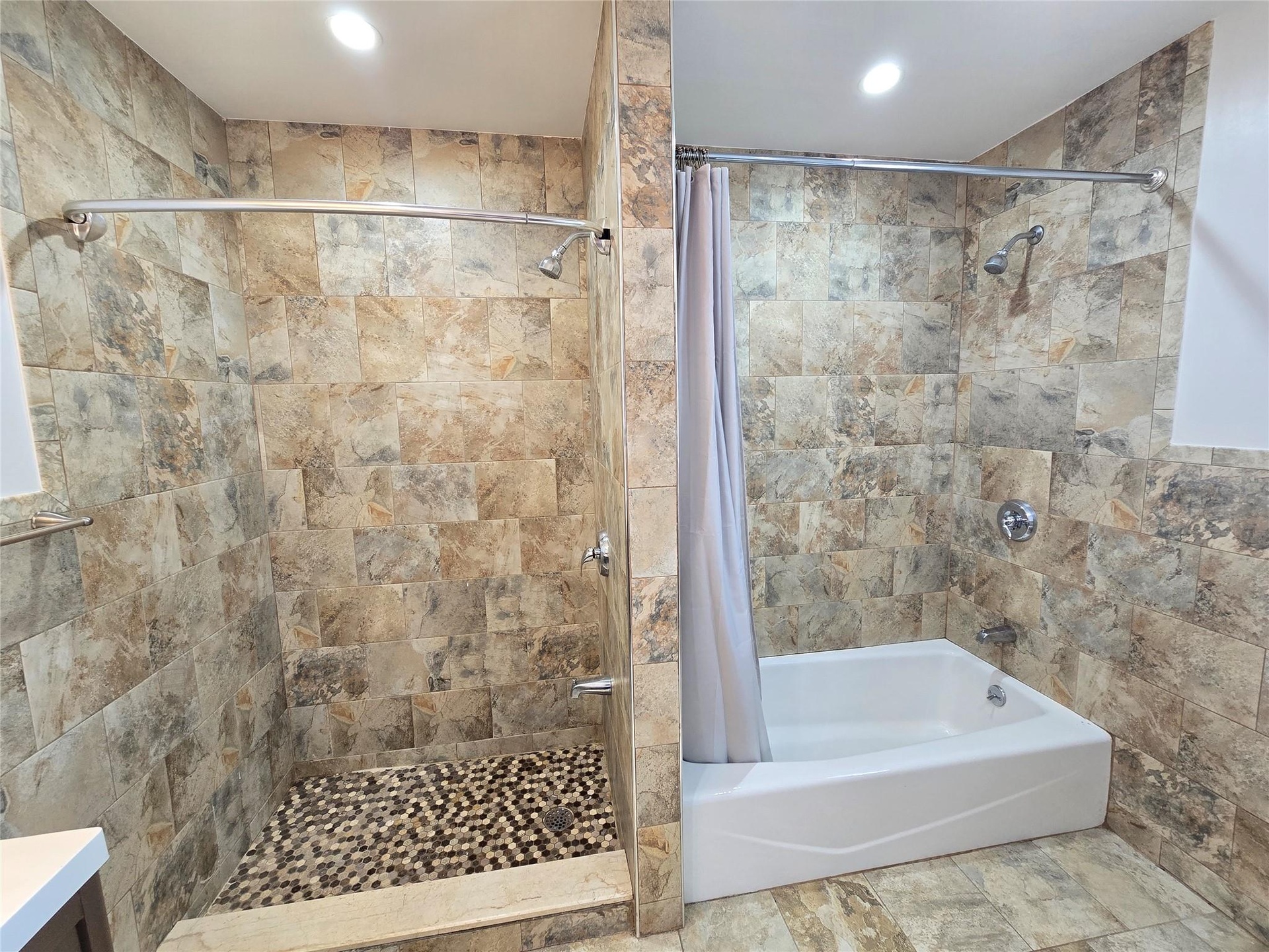 - Full bath with shower / tub combo with curtain and recessed lighting