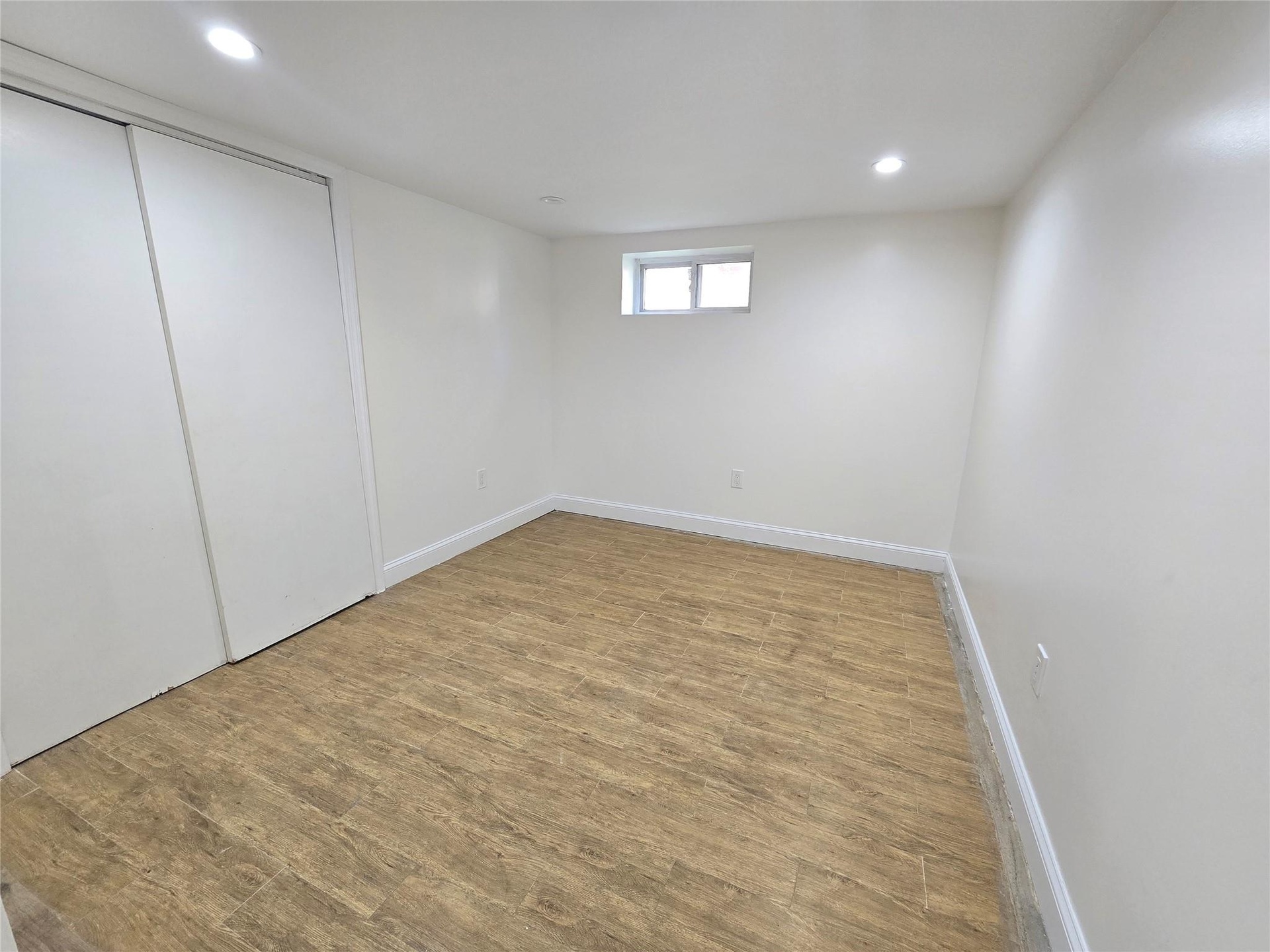 - Finished below grade area featuring recessed lighting, washing machine and clothes dryer, stairs, and light wood-type flooring