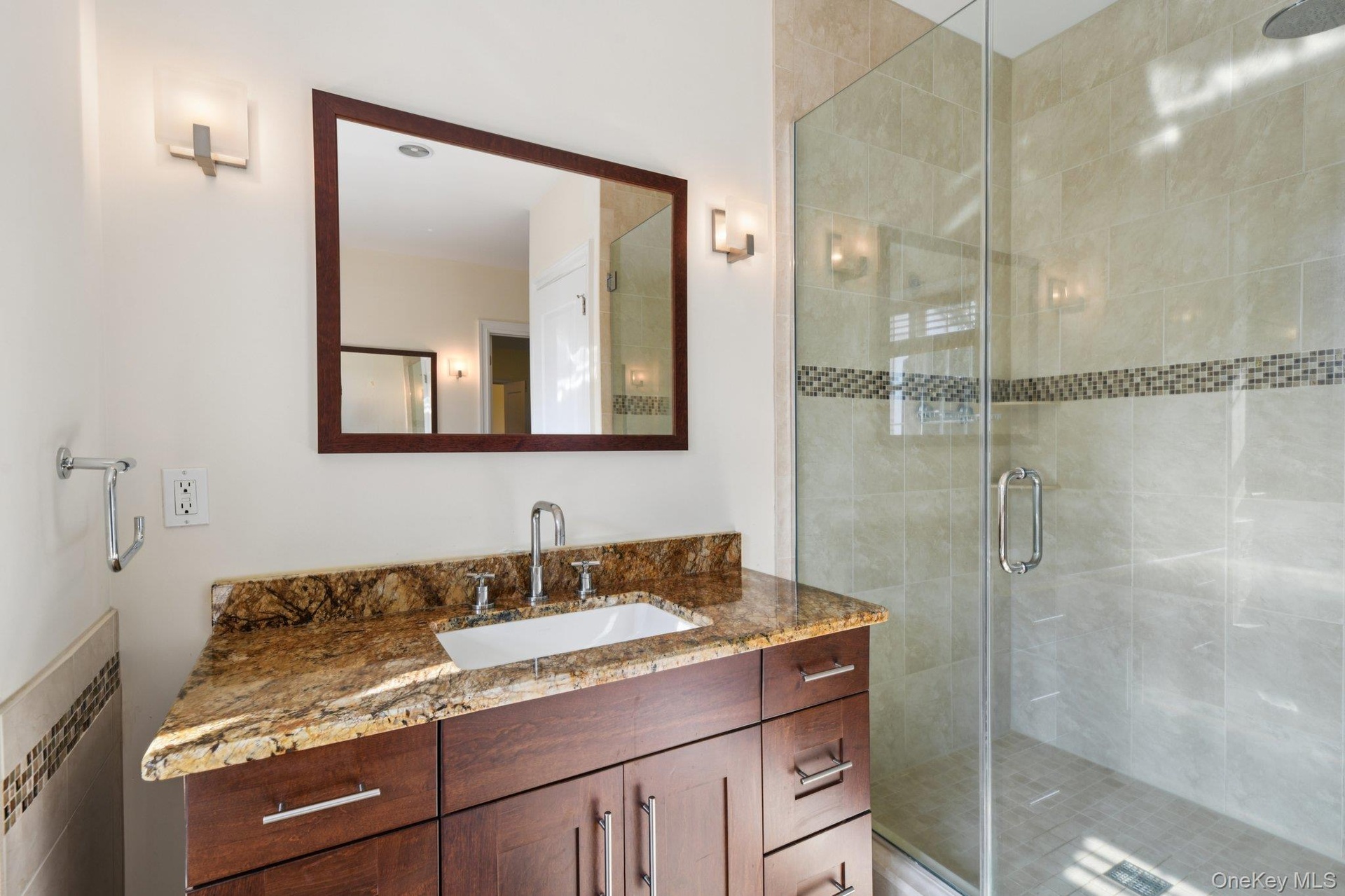 - Full bathroom with a stall shower and Custom Wood Vanity