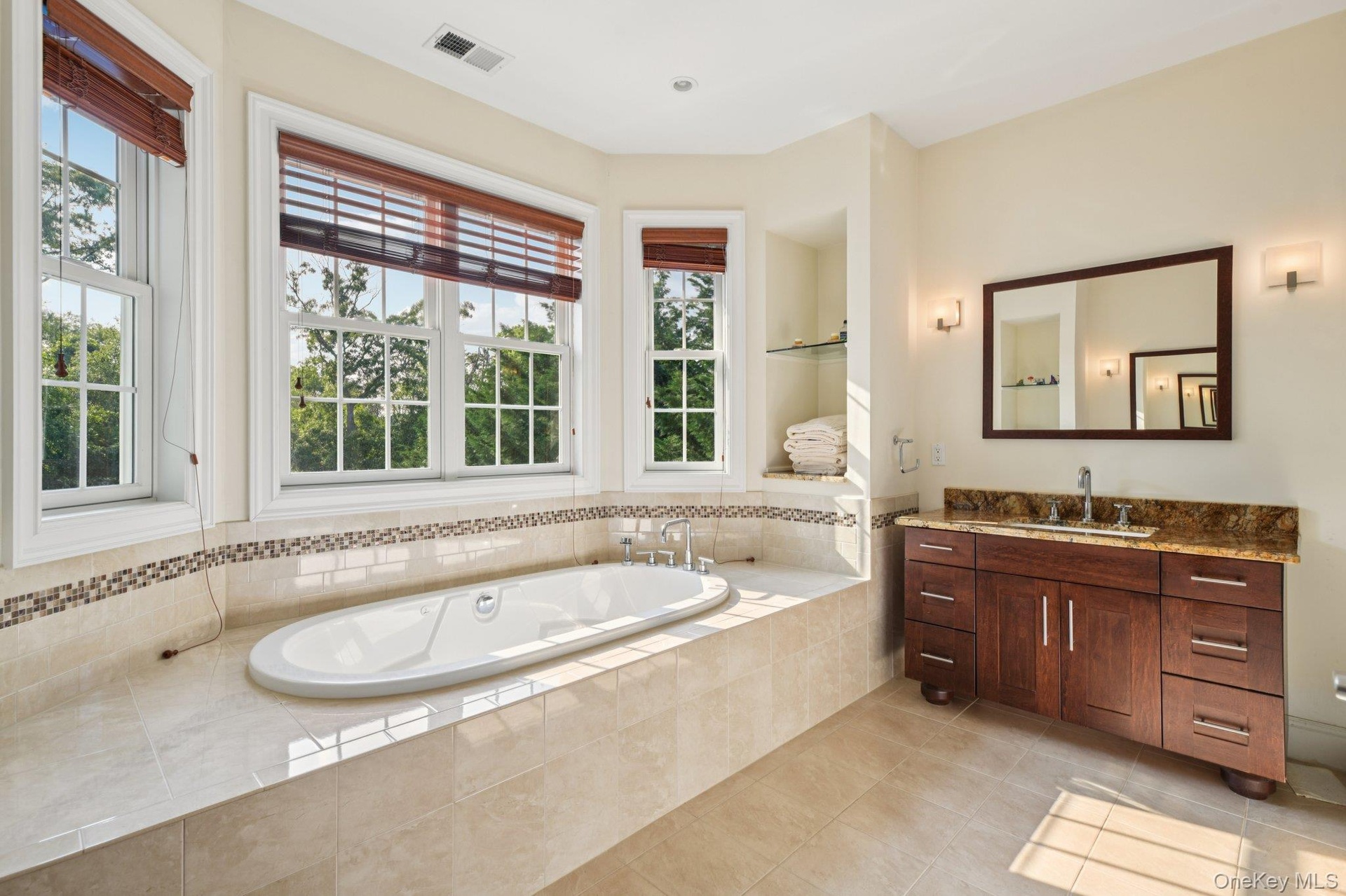 - Primary Custom Bath with Whirlpool Tub and Custom Flooring, and Large Shower