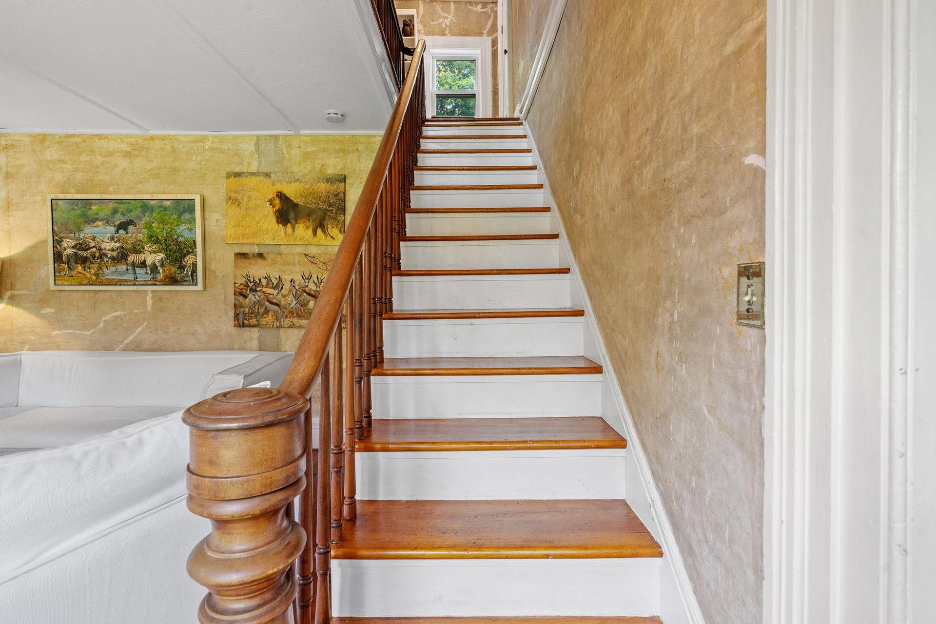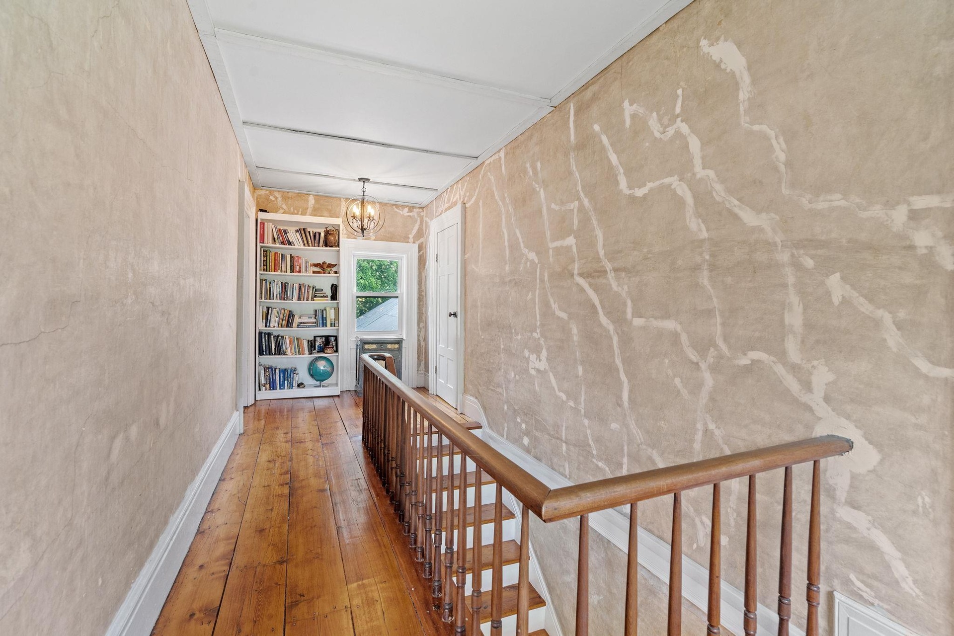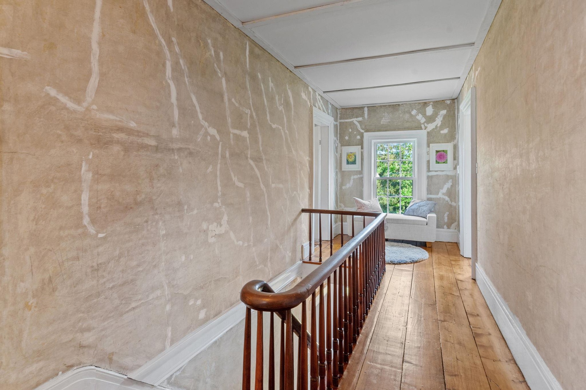 - Hall featuring an upstairs landing and hardwood / wood-style floors