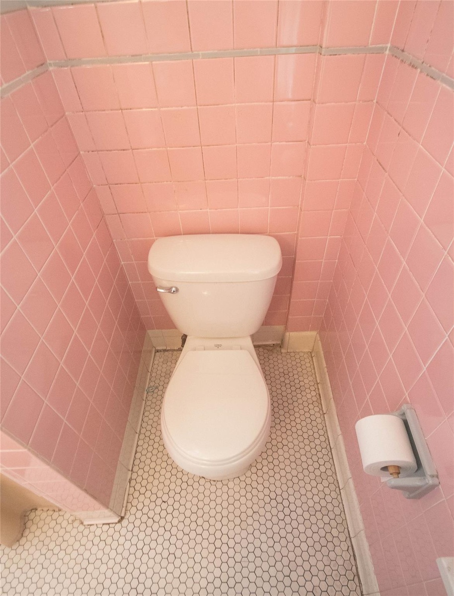 - Bathroom with tile walls and tile patterned floors