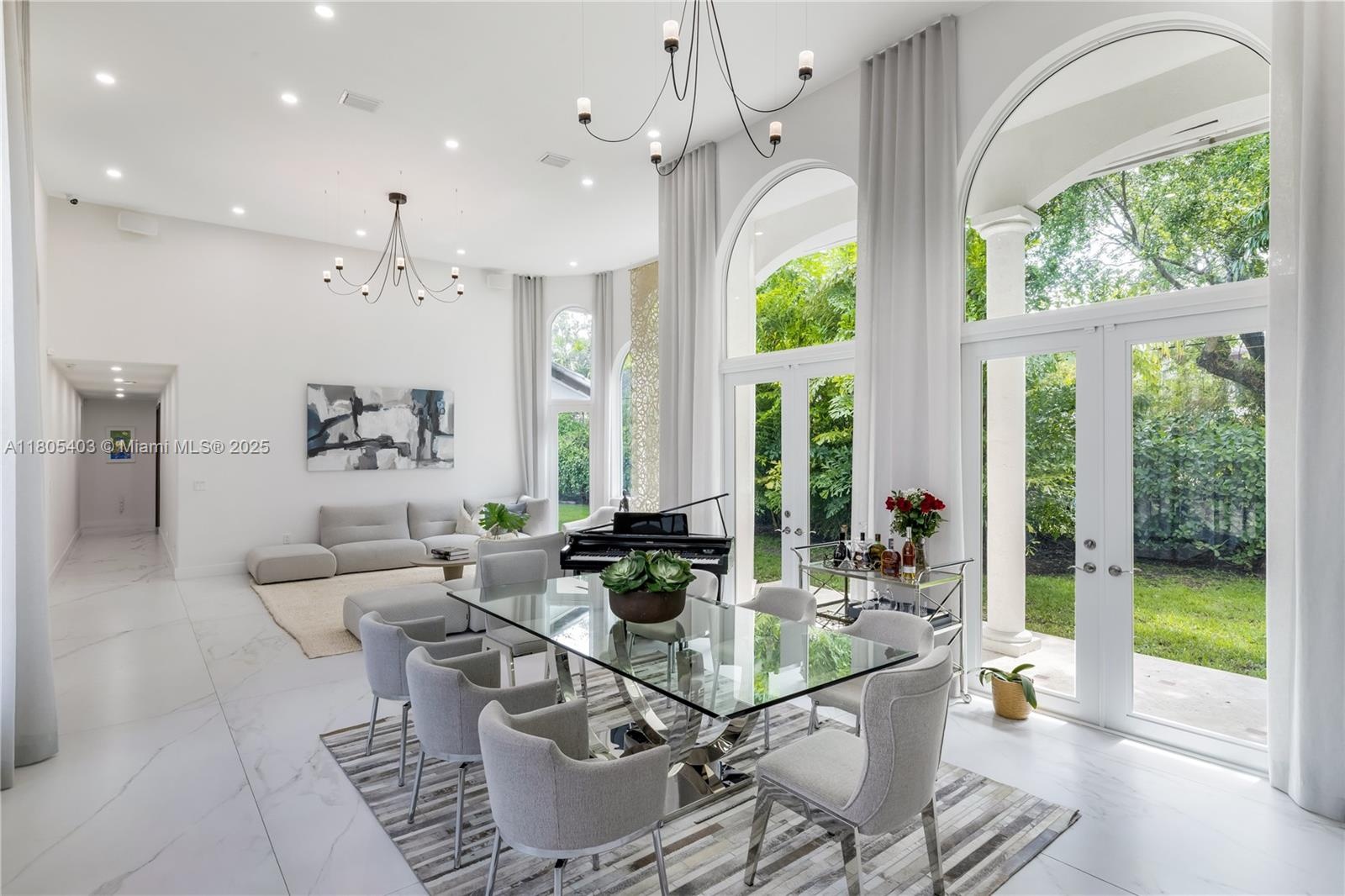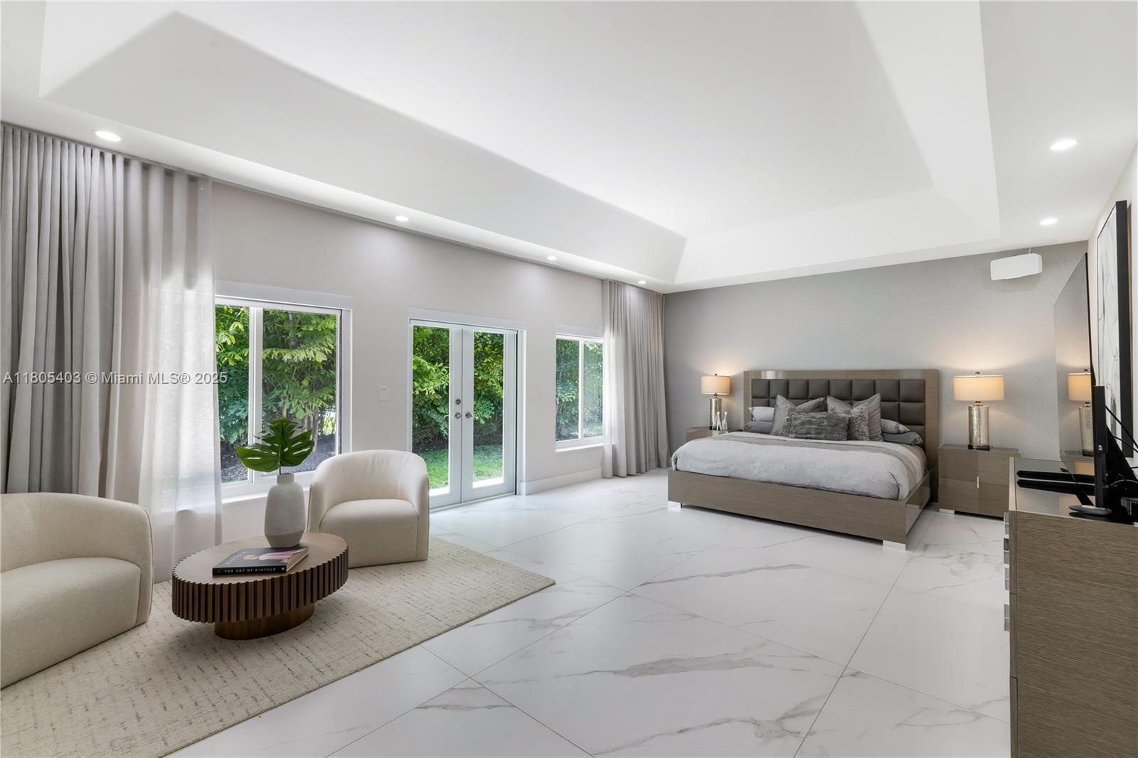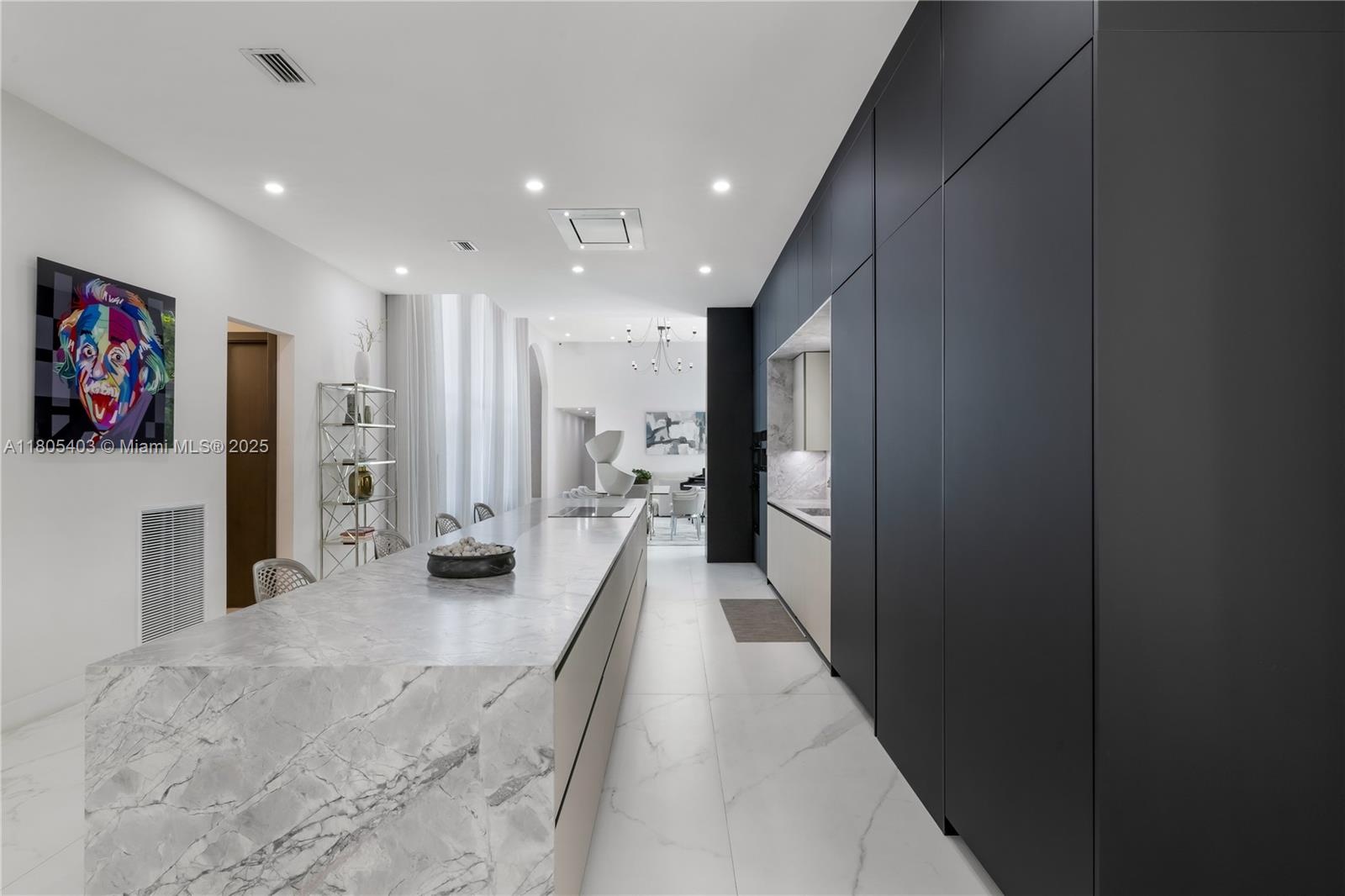 Set behind gates on a peaceful cul-de-sac in North Pinecrest, this refined single-story estate presents a rare opportunity to own a private compound steps from the newly completed Gary Matzner Park, & moments from Gulliver Prep School & Temple Beth Am. On 1.1 acres of mature, manicured grounds, the property offers privacy, scale, & timeless appeal. The residence encompasses 6,318 square feet of living space with 6 bedrooms & 5-and-a-half baths, designed with an emphasis on flow, light, & understated luxury. Firenze Carrara marble floors extend throughout & new wood floors in bedrooms/closets are complemented by new impact glass that frames tranquil garden views & fills the interiors with natural light. The kitchen is architectural & functional, with Veneta Cucine Italian cabinetry, a sculptural leather-textured marble island, & Miele professional-grade appliances—ideal for intimate dining or sophisticated entertaining. The primary suite is conceived as a serene retreat, offering dual walk-in wardrobes & a spa-level bath finished in full-height, single-slab Italian stone. The Kohler DTV+ digital wellness system delivers steam, chromotherapy, integrated audio, & lighting. A 2 story guesthouse with new wood floors & a large bedroom on the ground floor & office on the 2nd floor provides exceptional comfort for extended family or long-term guests. A second driveway will fit a boat or large vehicle with ease. Outdoor living with a pool, new summer kitchen, & expansive garden await.