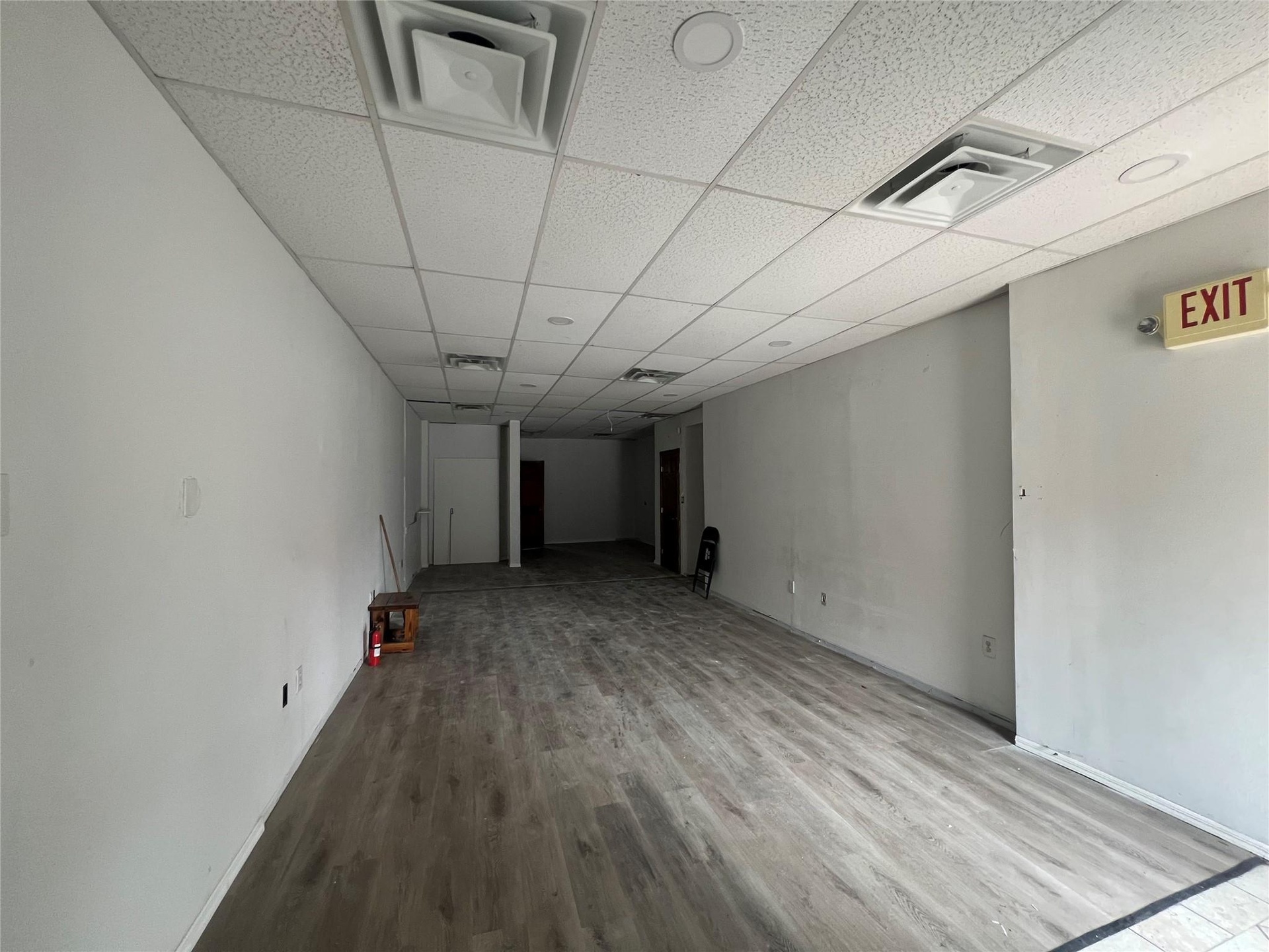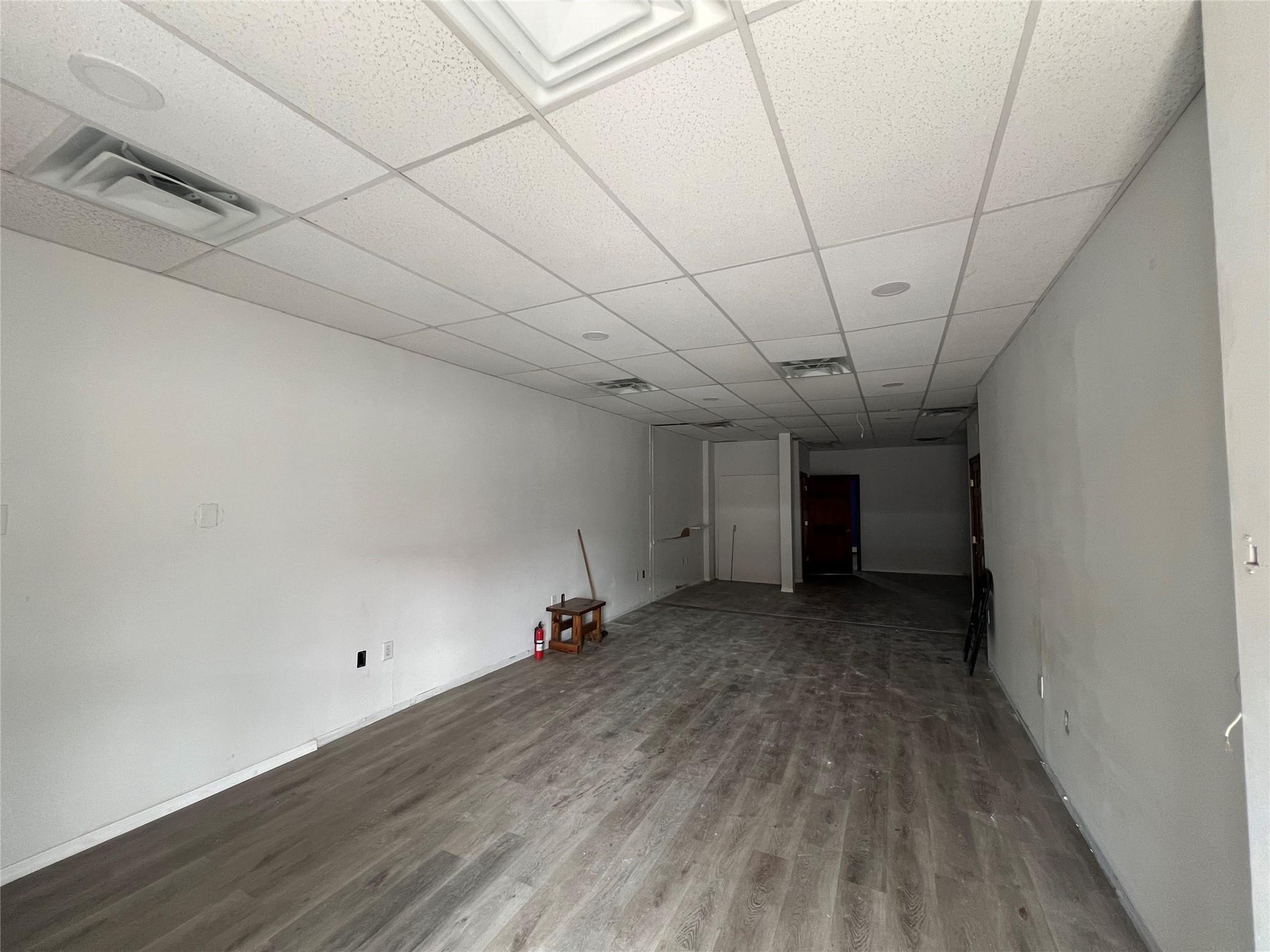 - Unfurnished room with wood finished floors and a paneled ceiling