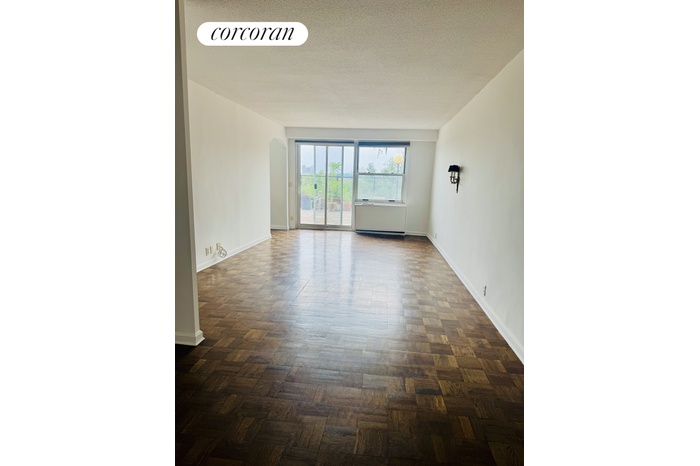 sunny L-shaped living room and dining area, large patio overlooking the Harlem and Hudson Rivers and Inwood Park, windowed kitchen, granite counter top, stainless steel appliances, parquet floors throughout, primary bedroom with in-suite large bathroom with a walk in shower, generous sized second bedroom with sunny east facing window, den/office with two windows, or can be used as a third bedroom, second windowed bathroom with a tub, laundry on every other floor, pet friendly, a three-level parking garage - the prices are $180, $185, or $200 depending on the location of the parking spot, pet friendly.