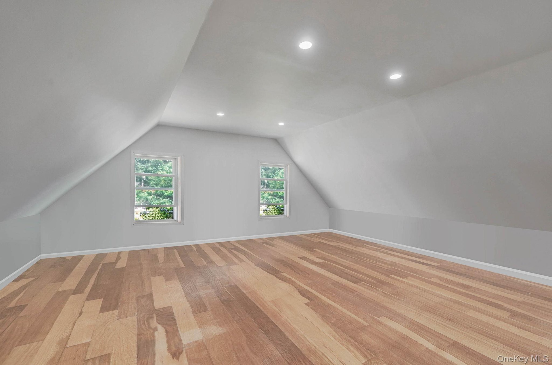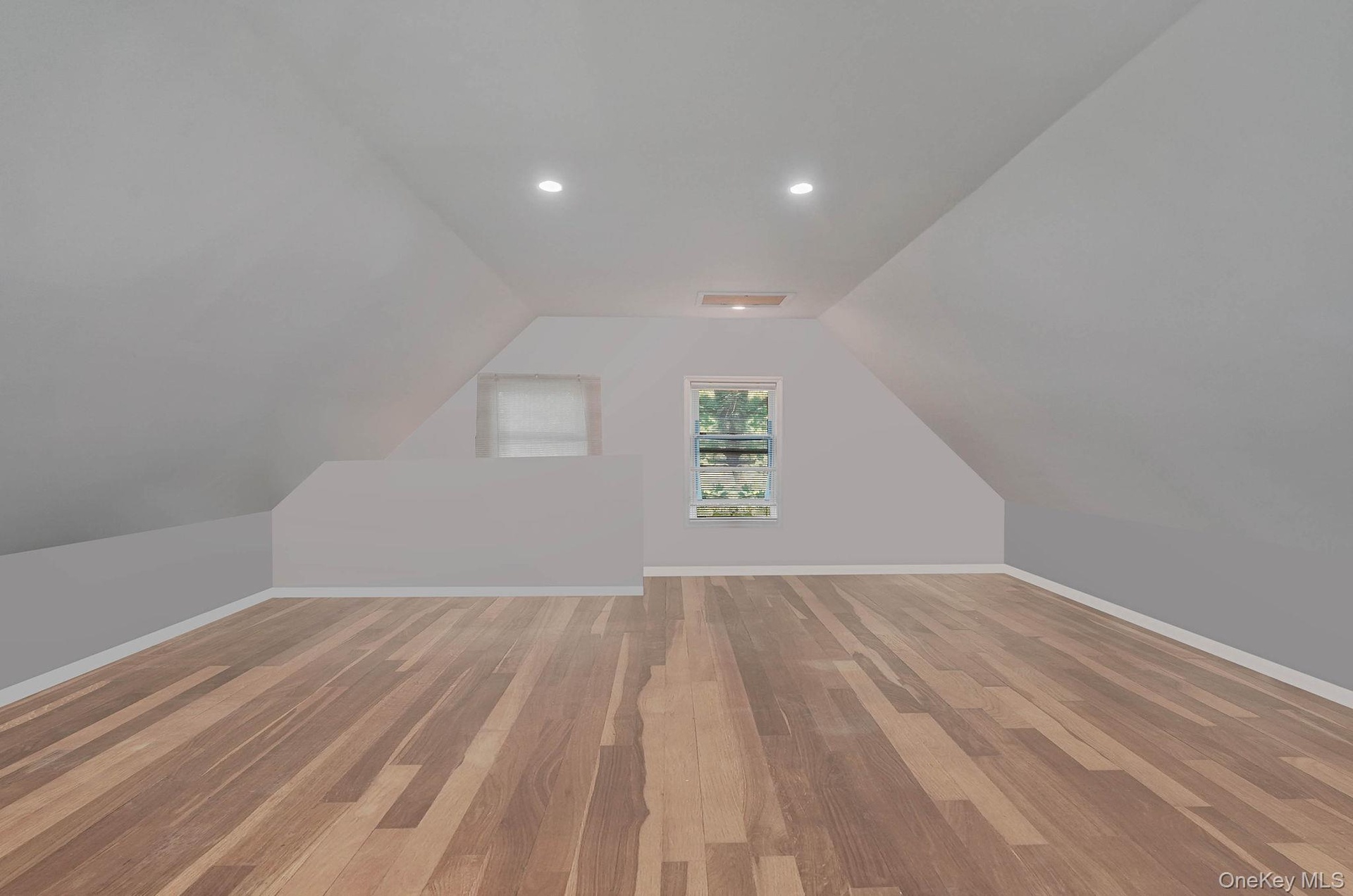 - Bonus room featuring hardwood / wood-style floors, vaulted ceiling, and recessed lighting