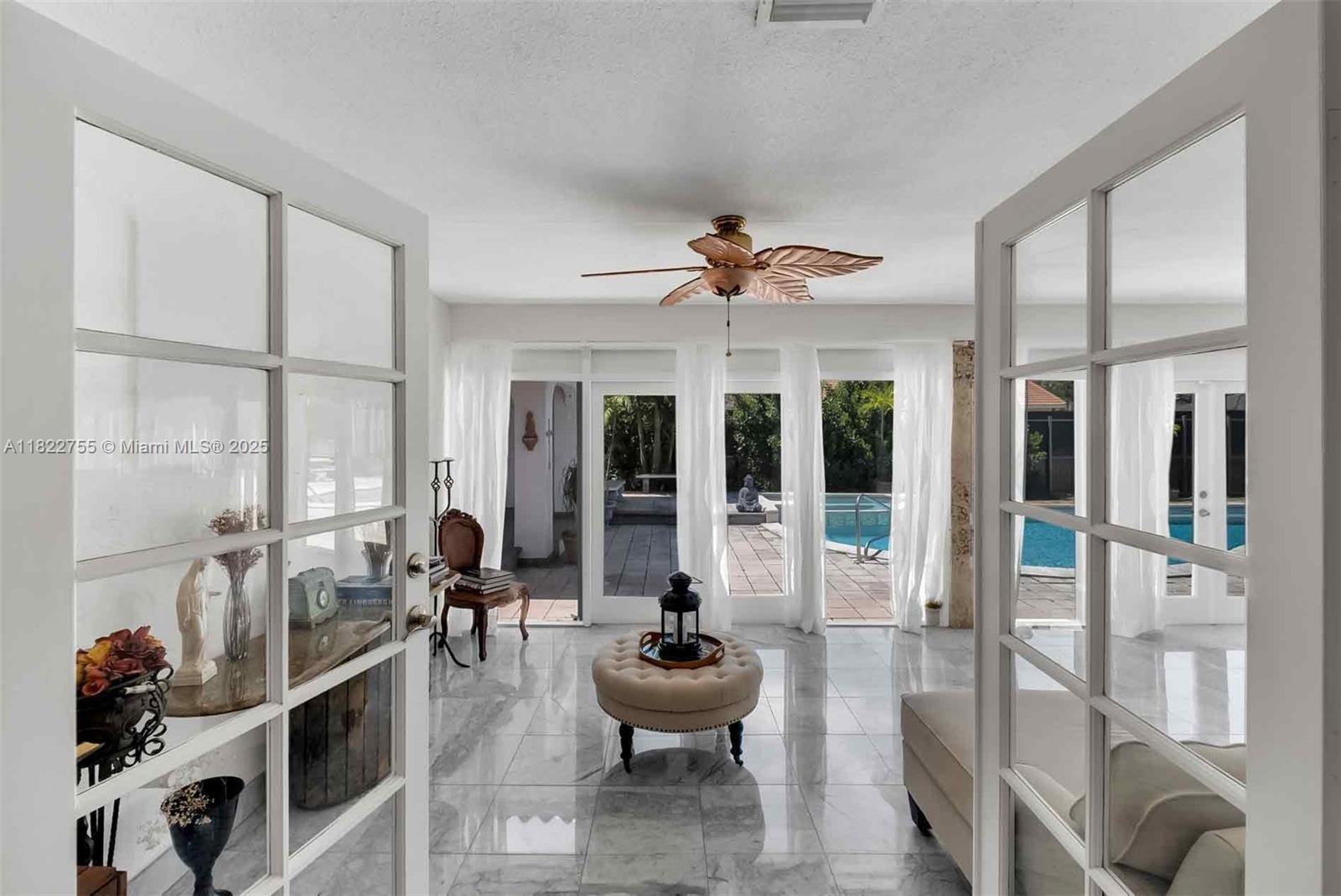 Discover this luminous and inviting home tucked away in a coveted Miami neighborhood, set on over 1⁄2 acre in an exclusive cul-de-sac of only four homes. From the moment you step inside, the open-concept layout draws your eyes to the magnificent pool and entertainment area—complete with a cabana bathroom, storage, and a relaxing lounge space.