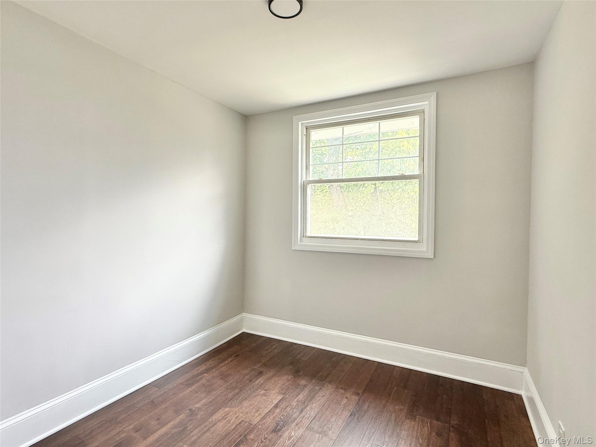 - Unfurnished room featuring baseboards and dark wood finished floors