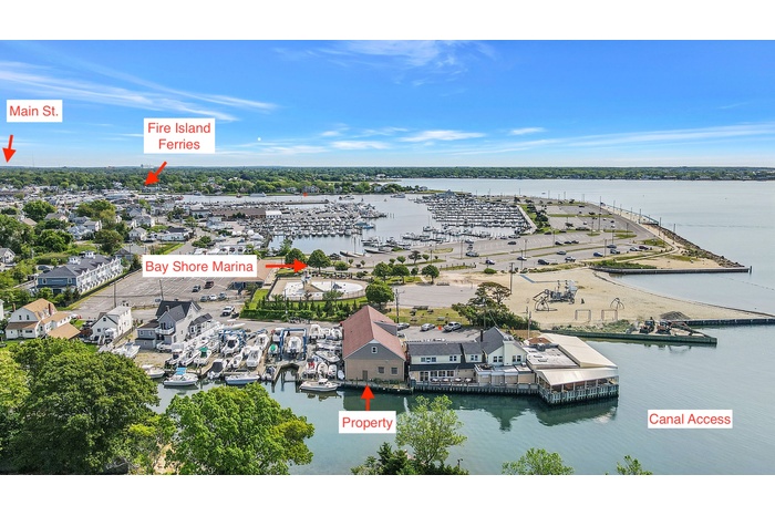 This Property Gives you Direct Water Access to Fire Island with waterfront bulkhead, dock spaces with travel lift slip for hauling and loading boats and supplies! The main facility features high ceilings, a grand showroom, large workshop with 220 power, private office with bath, newly renovated restrooms, radiant in-floor heat, and a new roof.