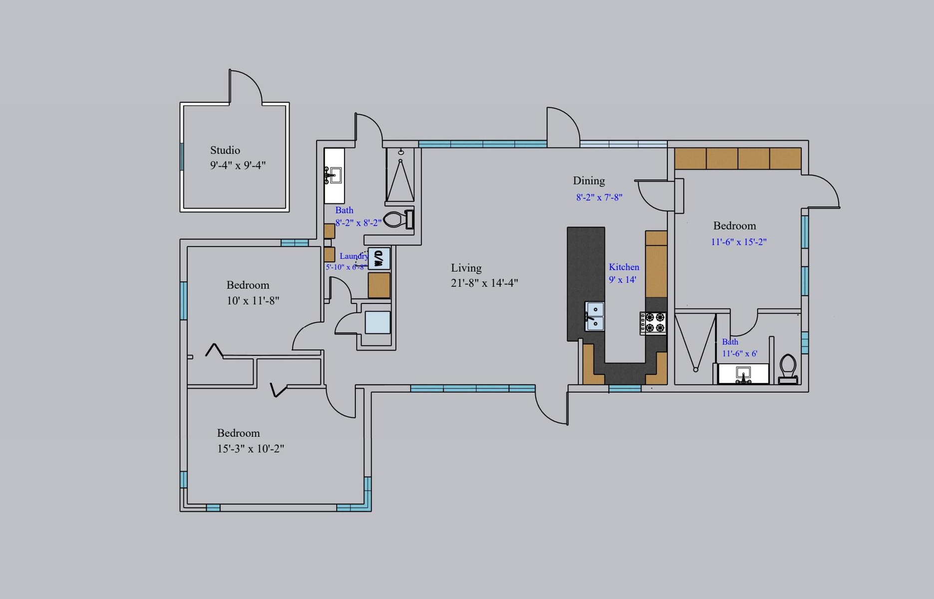 All dimensions are approximate. For exact dimensions, you must hire your own architect or engineer.