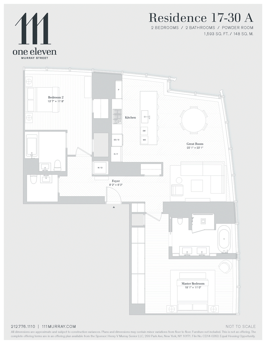 A world-class condominium tower located in Tribeca and developed by a partnership of Fisher Brothers, Witkoff, and New Valley, 111 Murray Street soars some 800 feet, offering 157 residences ranging from one-bedrooms to full-floor penthouses. 111 Murray Street is a collaboration between some of the best and brightest minds in architecture and design, with architecture by Kohn Pedersen Fox, residence interiors by David Mann, amenities and public spaces by David Rockwell, and landscape architecture by Edmund Hollander. With a gently curved crystalline facade, the building's sculptural silhouette softly flares to a peaked crown at its pinnacle, creating a bold new shape on the city skyline. Occupied by a privileged location in Tribeca, 111 Murray Street is steps to the best dining, arts and entertainment and lifestyle amenities Downtown. Over 20,000 square feet of private indoor and outdoor spaces span two levels, comprising state-of-the-art amenities that include two pools; a 3,000 square foot fitness center with separate movement studio; residents" lounge, patisserie; private dining room with demonstration kitchen; wellness suite with heated stone hammam, steam room, sauna, treatment rooms, and hair salon; children's playroom, arcade room; media room; as well as stunning landscaped gardens that seamlessly integrate the interiors and the outdoors.