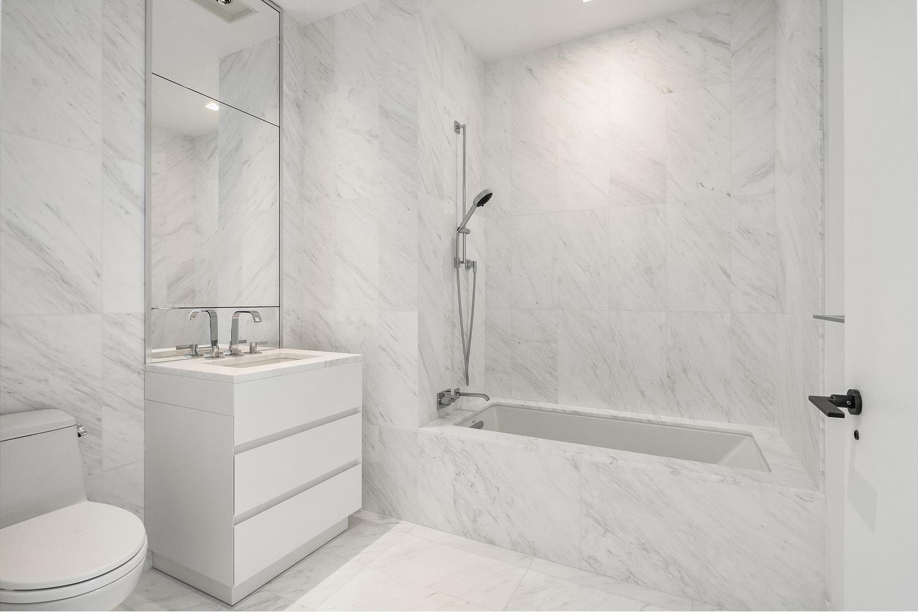 The only of its kind, this 30th floor split 2-bedroom, 2.5-bathroom is the highest of the coveted A line featuring 12-foot ceilings and captures brilliant north and east views of the Manhattan skyline. This spacious 1,593 square foot residence has a formal entry foyer that leads to a breathtaking corner great room and open kitchen ideal for seamless entertaining and intimate daily living alike. Floor-to-ceiling glass wraps this sprawling 22'1 22'1 space for exceptional natural light and spectacular north and east-facing vistas. Meticulously designed by AD100 designer David Mann, the custom Molteni kitchen offers cerused White Oak cabinetry trimmed in custom soft black metal, Calacatta Borghini marble island with book-matched waterfall, countertop, and backsplash, Dornbracht fixtures in a custom soft black matte finish, and top-of-the-line appliances by Wolf, Miele, and Sub-Zero including a 36-in. refrigerator and freezer, 36-in. 5-burner gas cooktop with built-in fully vented hood, integrated dishwasher, wall oven, speed oven, and wine refrigerator.