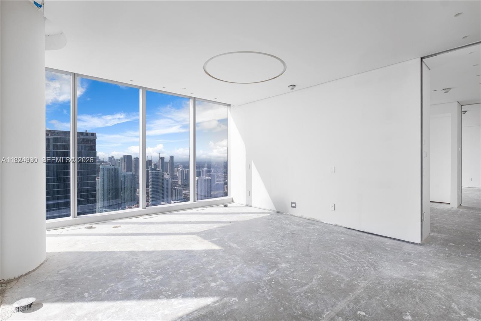 Spanning ~7,000 SF across the 56th & 57th floors, this flow-through residence offers soaring 13.5–14 ft ceilings, an internal staircase, and a ~3,000 SF wraparound terrace with sweeping bay and skyline views. Delivered white-boxed with plans largely complete, allowing a buyer to fast-track completion.