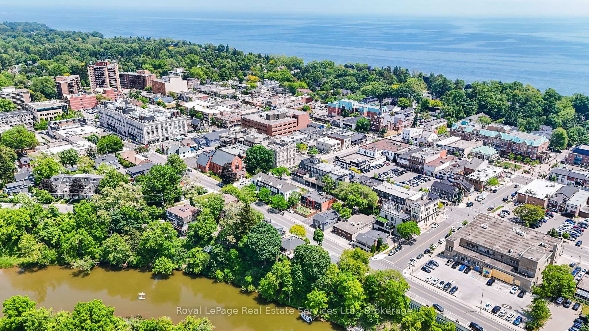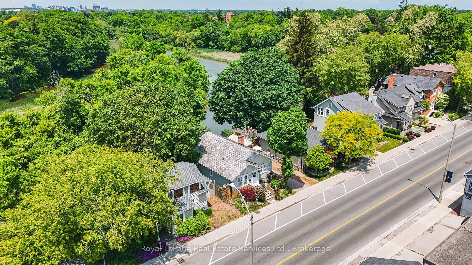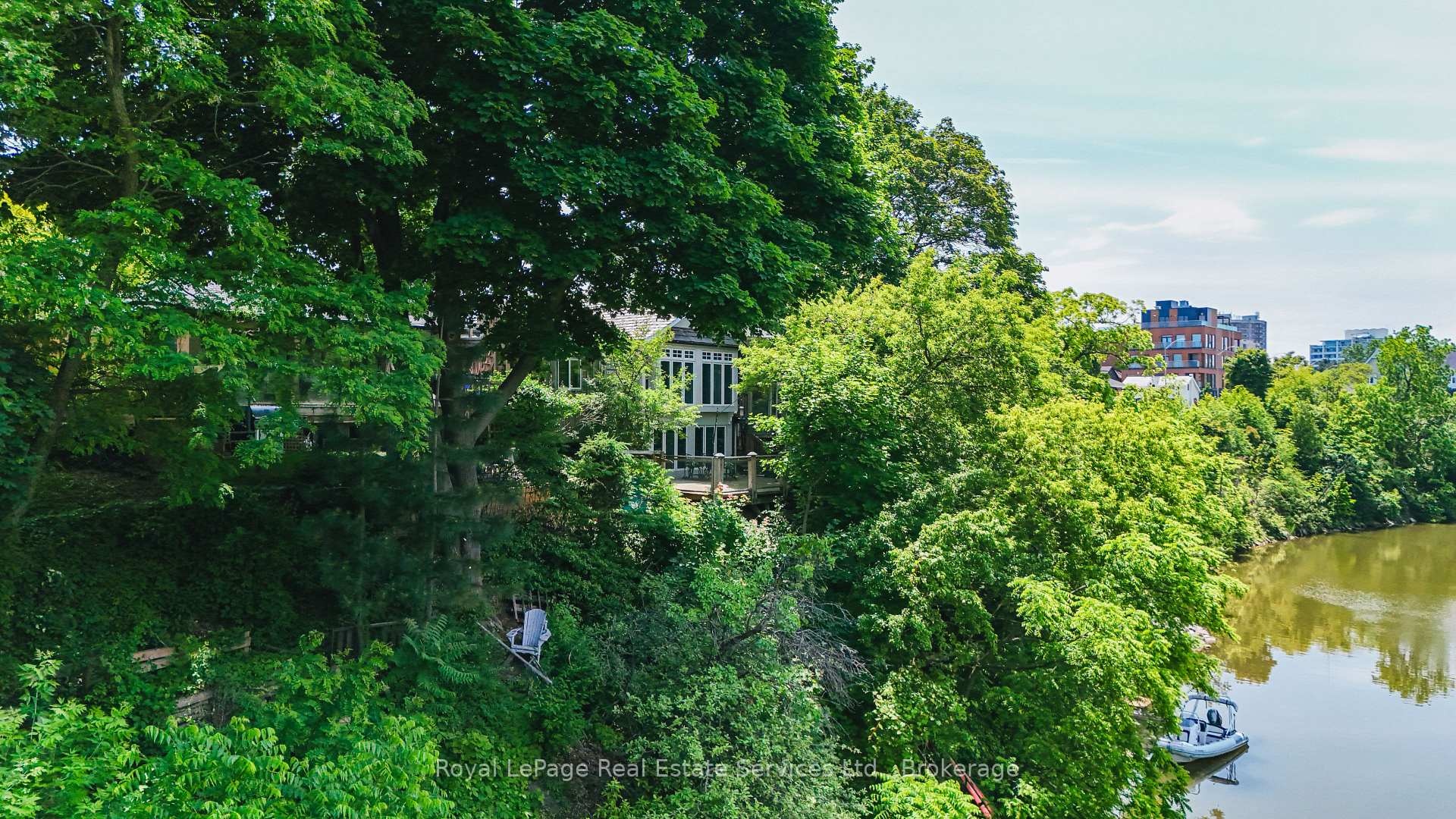 Incredible waterfront bungalow with walk-out lower level and spectacular views over the 16 Mile Creek located steps to the heart of Downtown Oakville. The perfect alternative to a condo or townhome with the bonus of priceless views! This charming heritage home with 1900SF total living area was re-engineered, gut renovated and extended in 1999. Open concept floor plan with soaring vaulted ceilings and hardwood flooring. Galley kitchen open to informal dining area. Spacious living room with extensive built-ins, gas fireplace, beautiful boxed windows overlooking the river and walk-out to balcony. Main floor bedroom and 3-piece washroom. The lower level is fully above-grade at the rear and features hydronic radiant heated floors and a walk-out to large patio. This floor features a primary suite overlooking the river with 4-piece ensuite bathroom, large recreation room / 3rd bedroom and a finished laundry room. Bonus finished loft space with additional 427 SF - perfect for the grandkids. New Cedar roof (2019); Cedar exterior detailing railings, deck & shed. Outside find parking for 2 cars and a handy storage shed. Enjoy access the river for kayaking, canoeing, winter walks, skating, cross-country skiing or simply take-in the panorama and activity on the river year round. Just steps to Towne Square, Lake Ontario and all that Downtown Oakville has to offer. Walk-score 97! A truly unique opportunity to enjoy country life in the city.